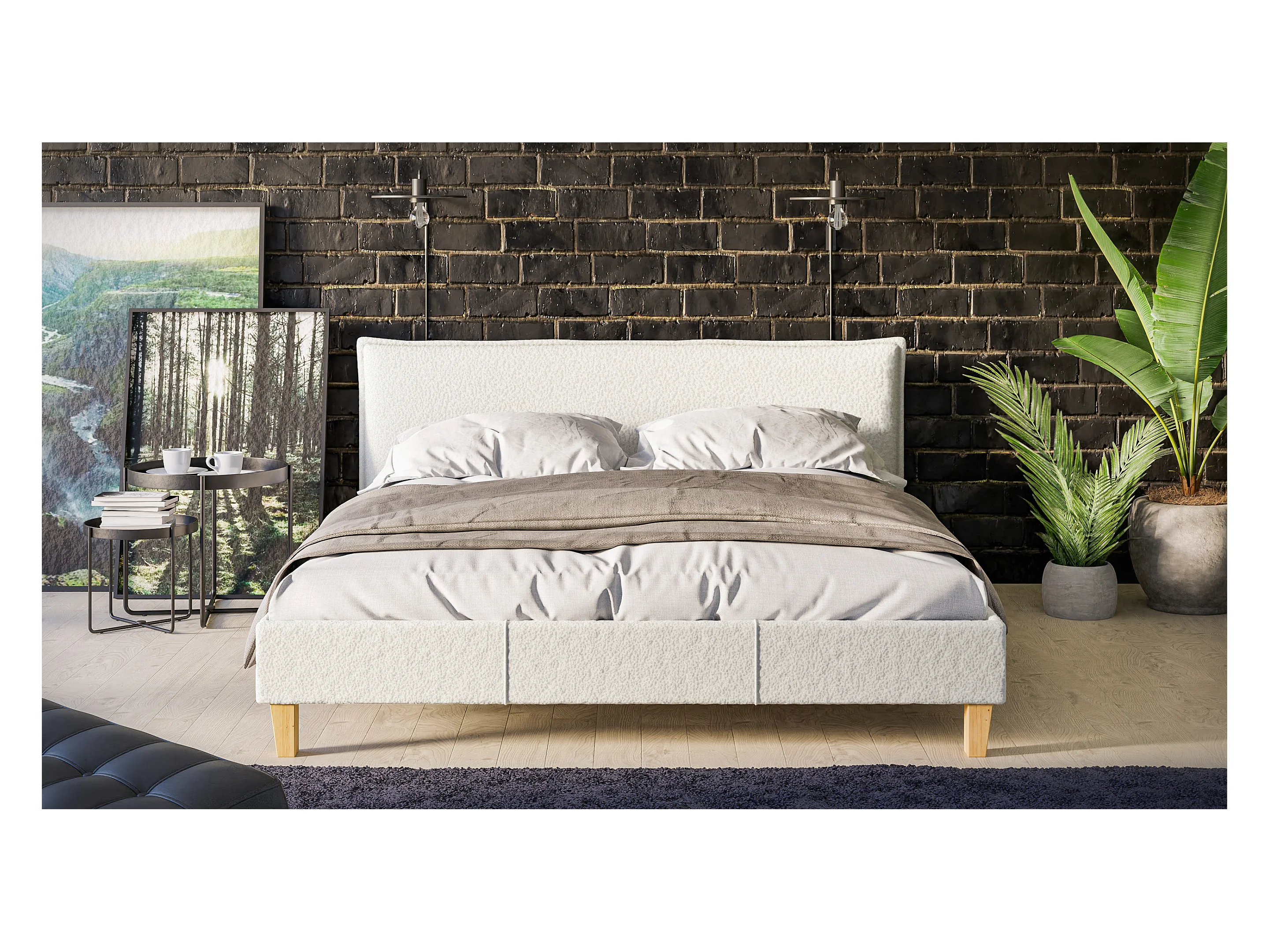 Polsterbett Uriah Boucle Stoff Füße aus Massivholz