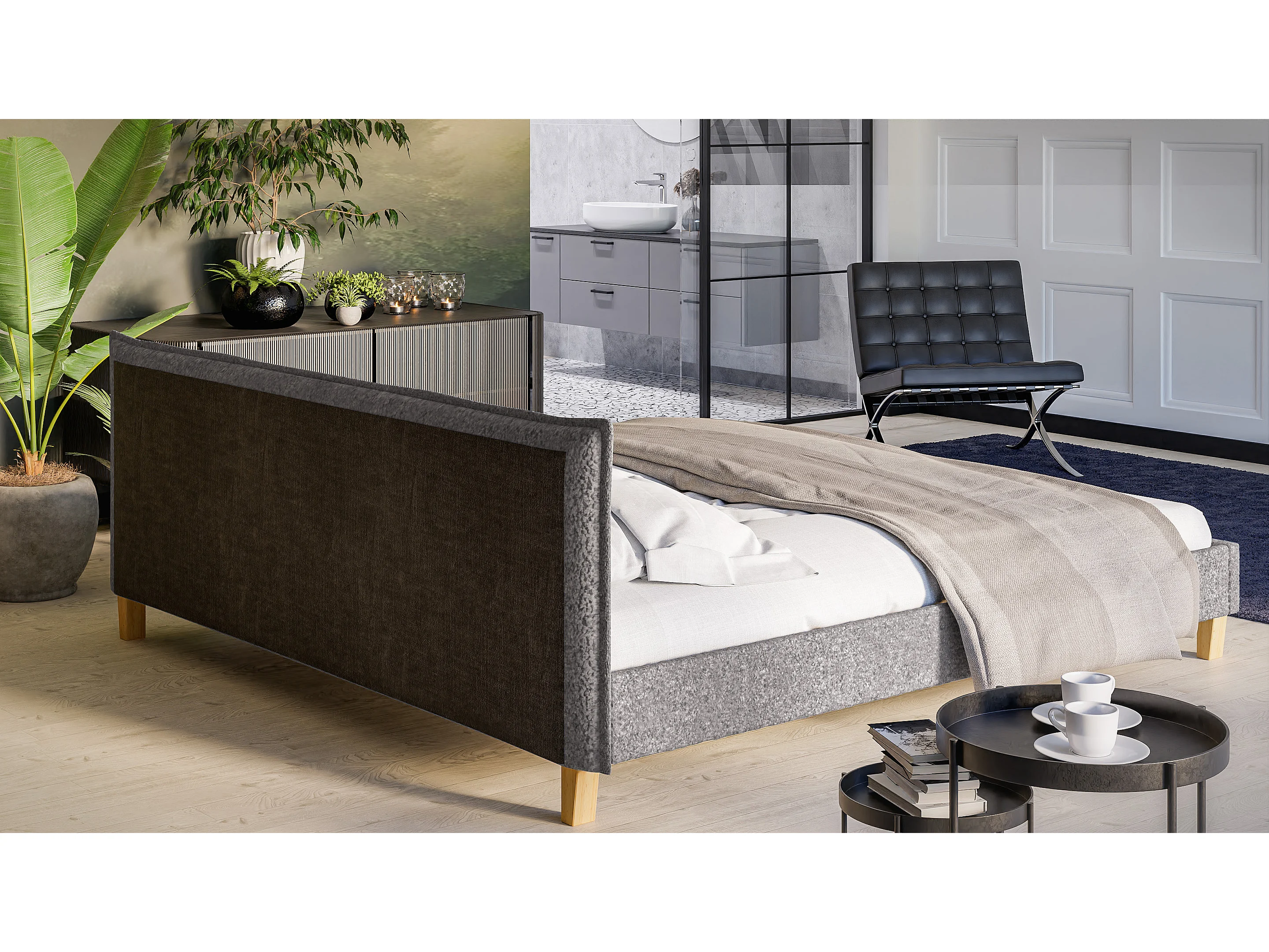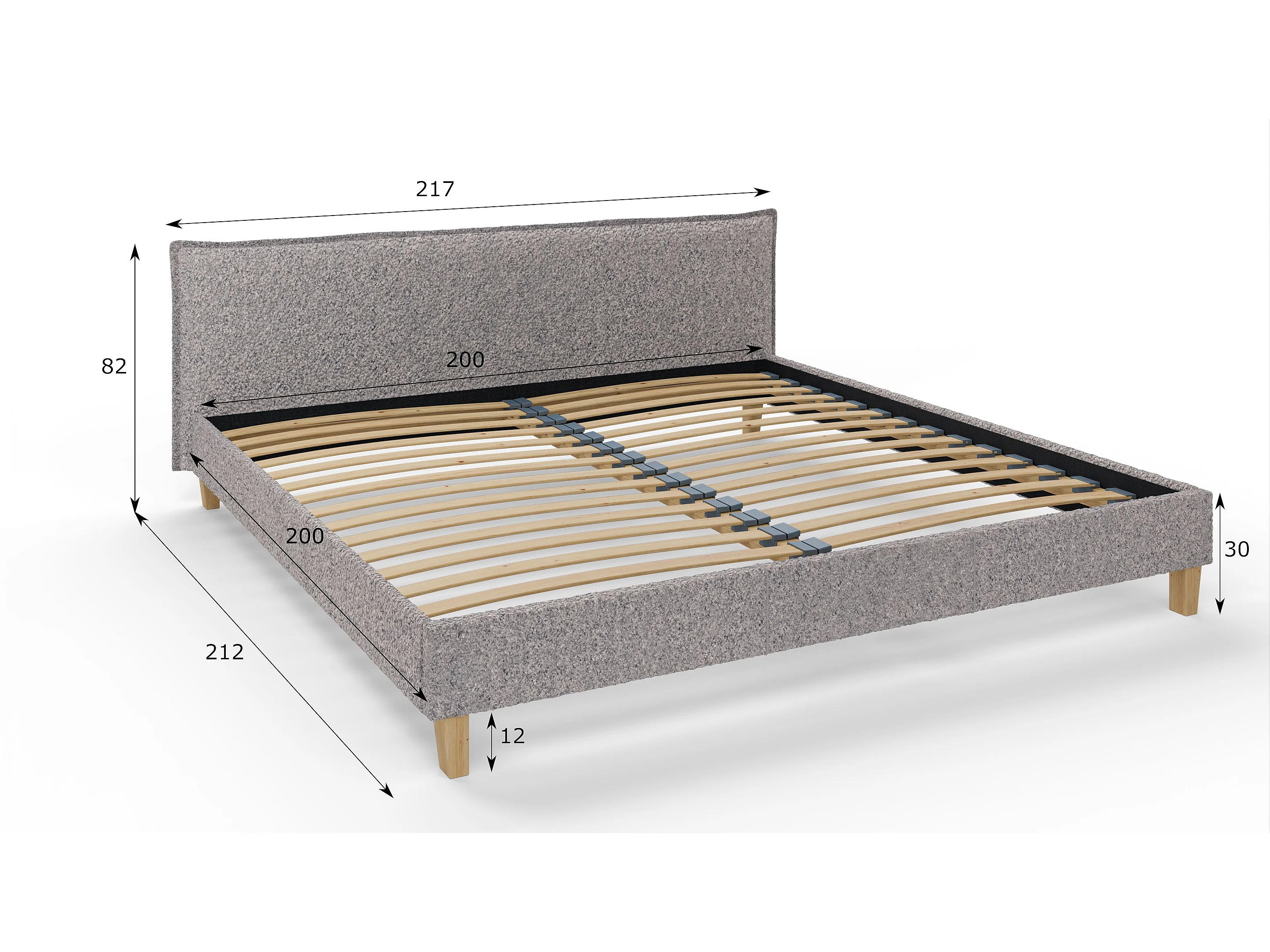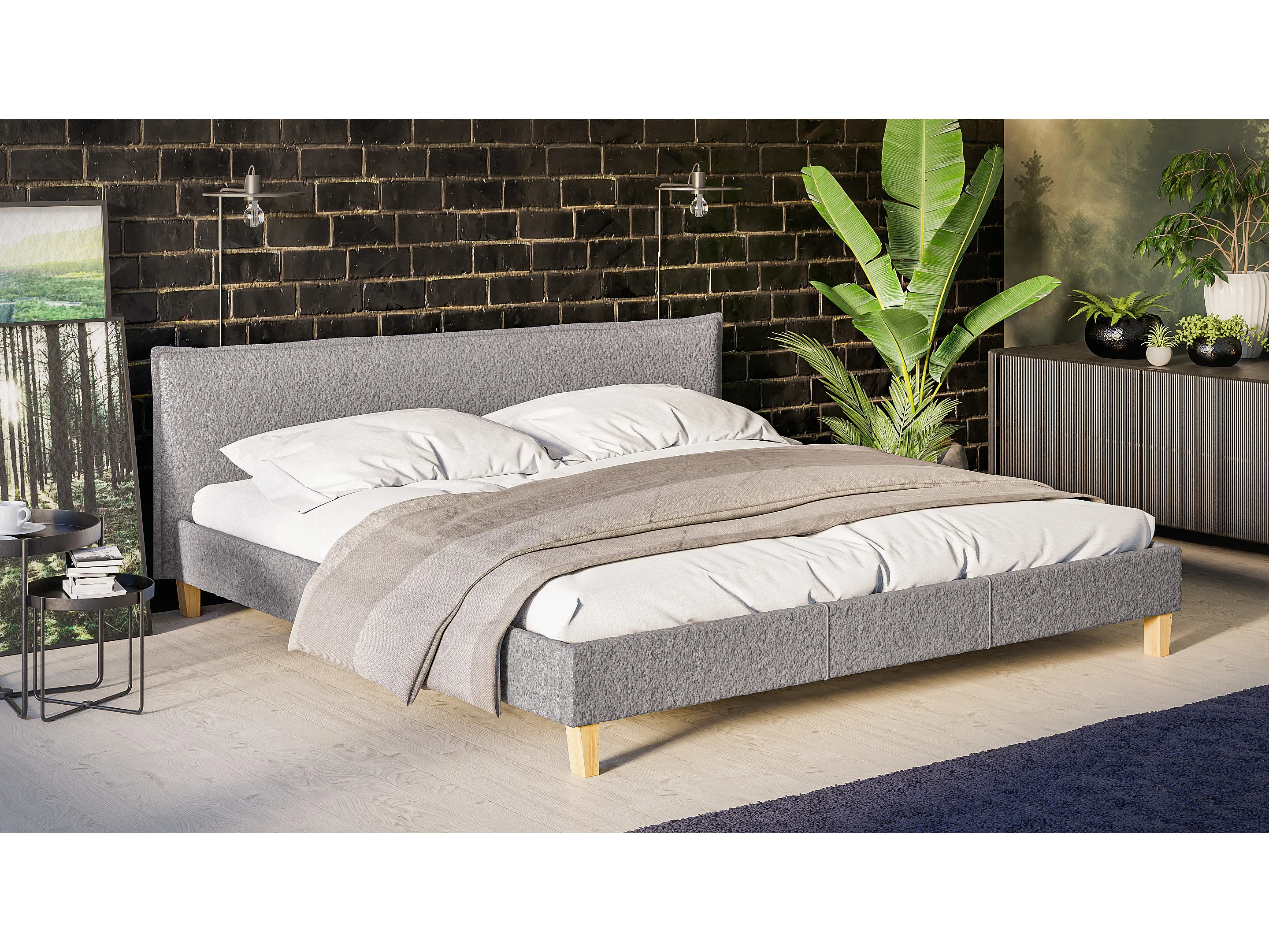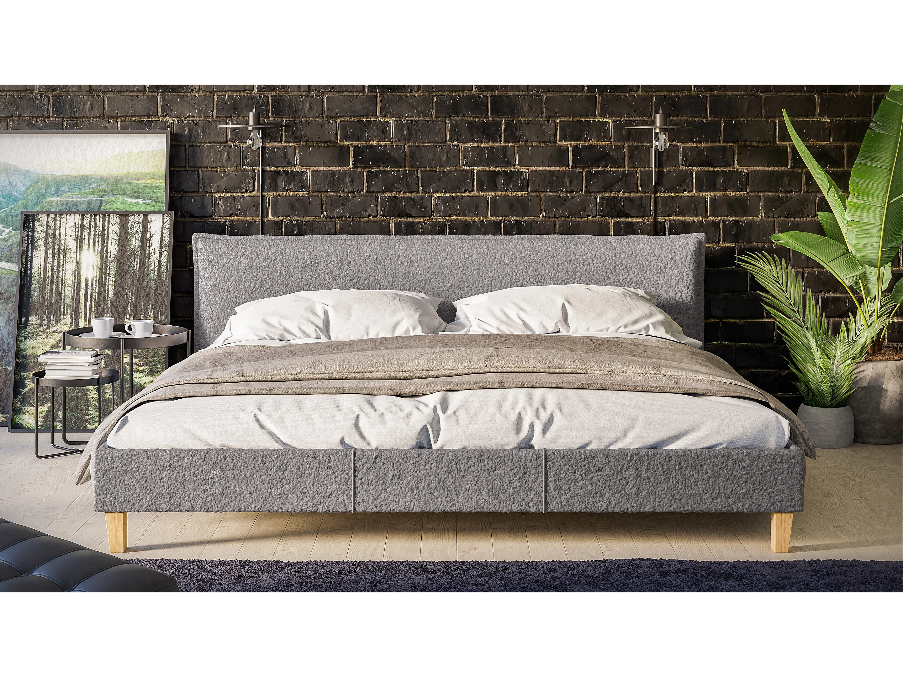 Polsterbett Uriah Boucle Stoff Füße aus Massivholz