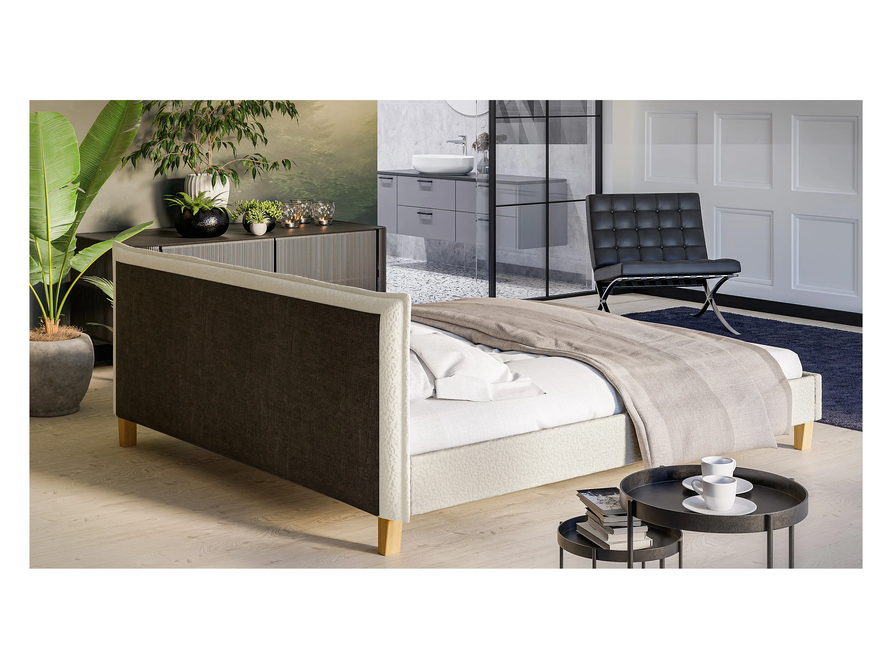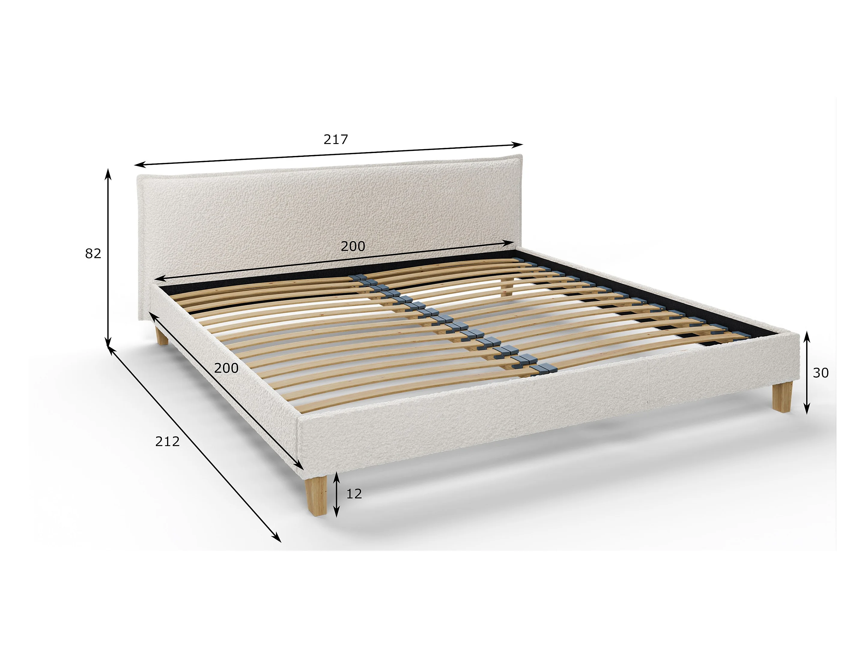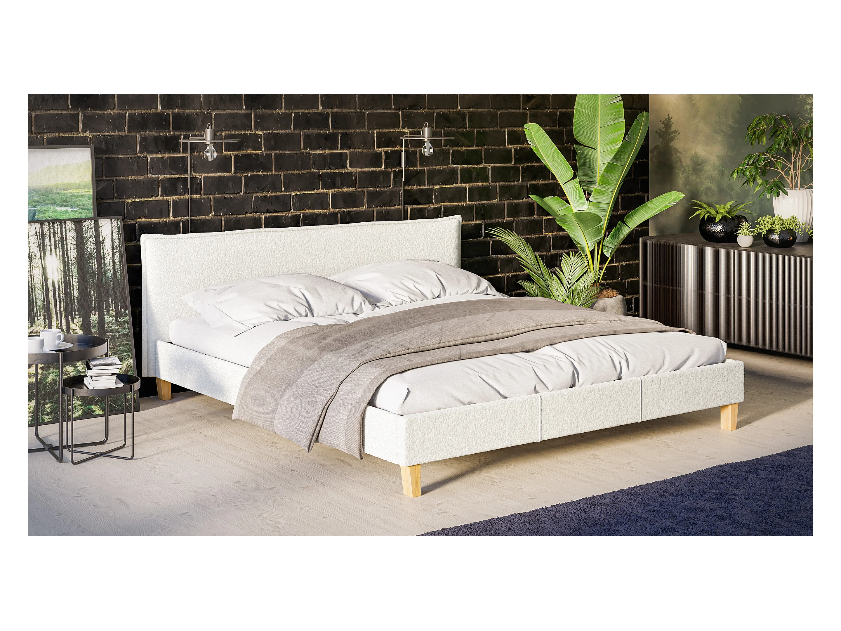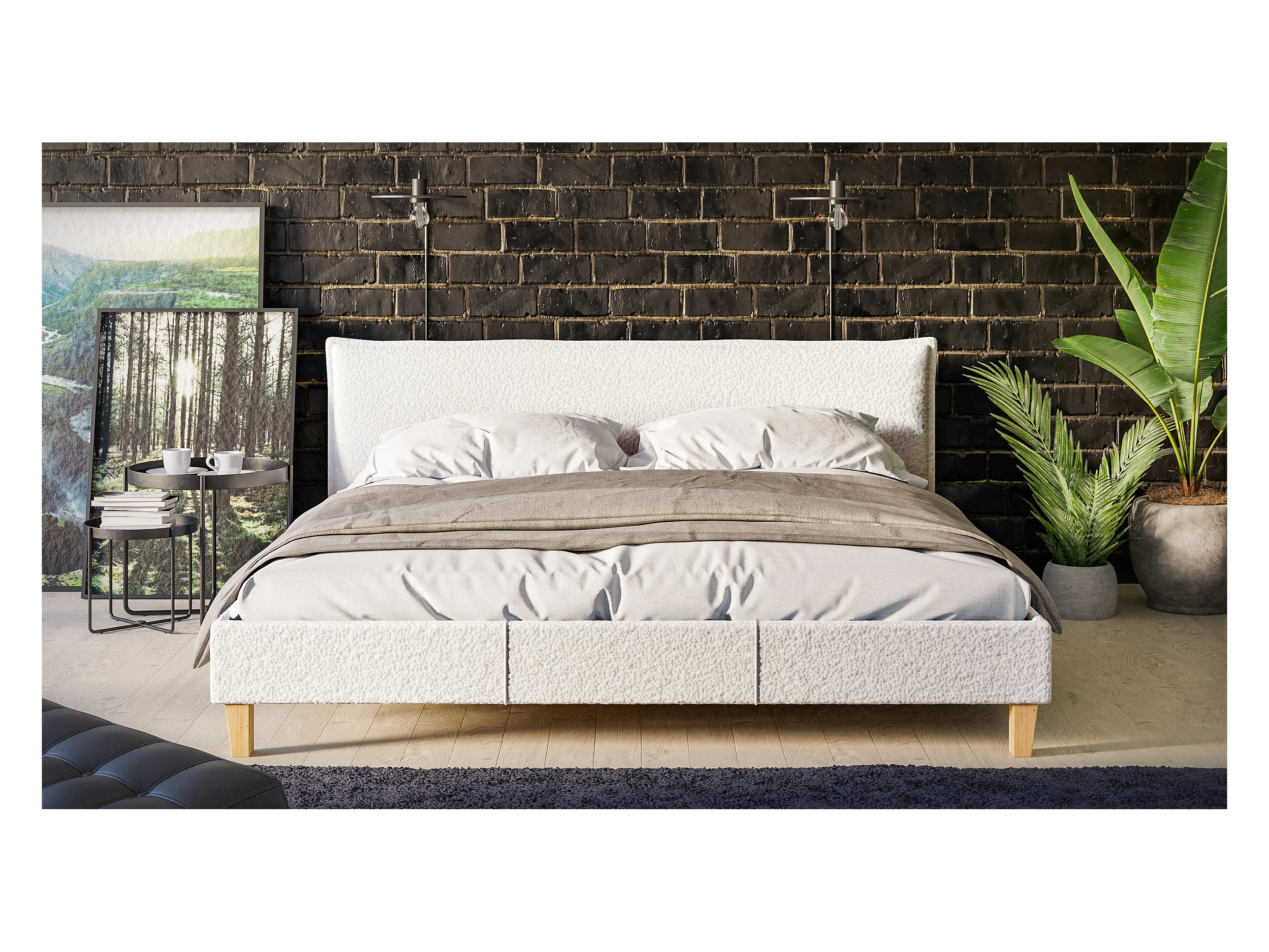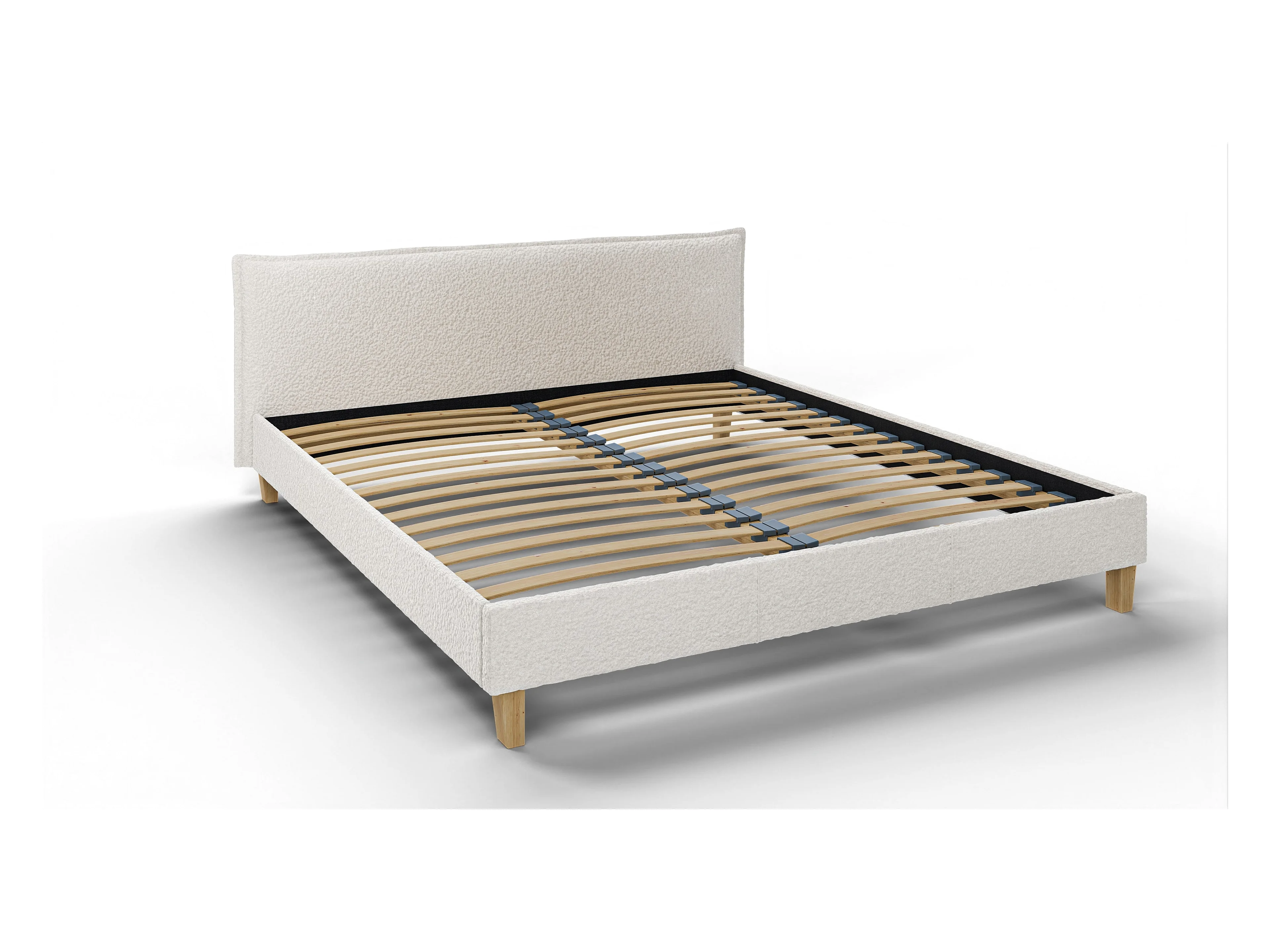 Polsterbett Uriah Boucle Stoff Füße aus Massivholz