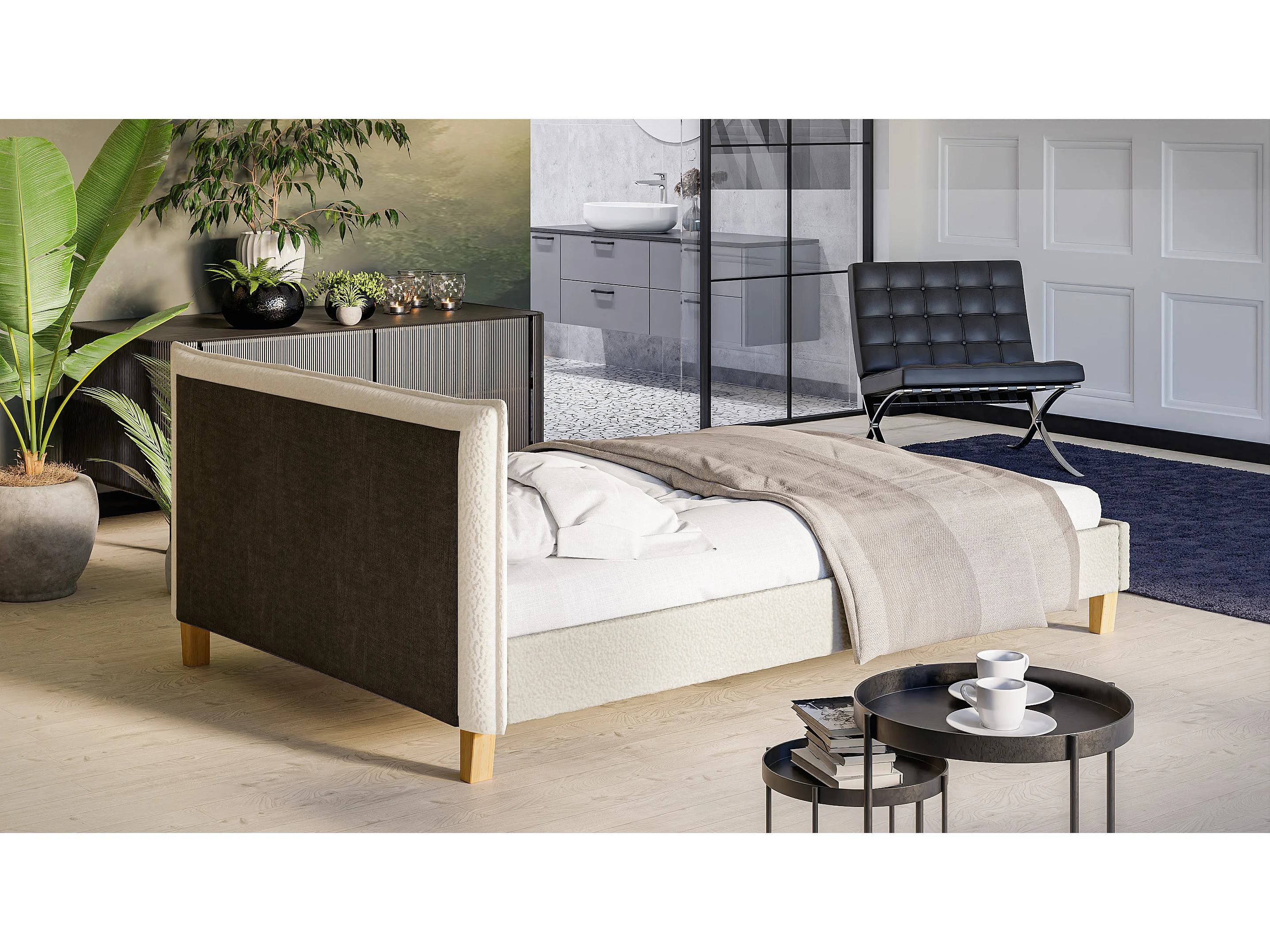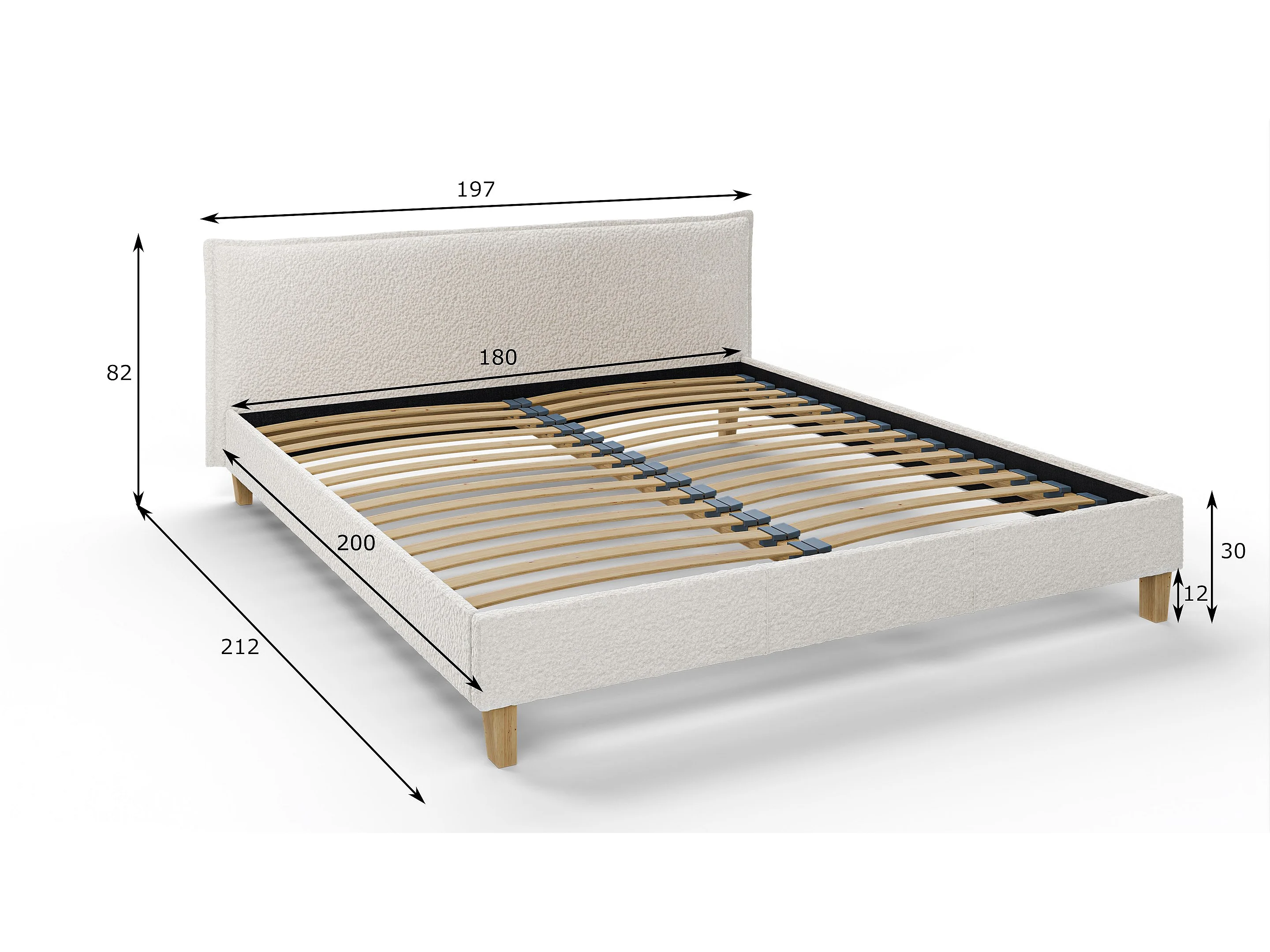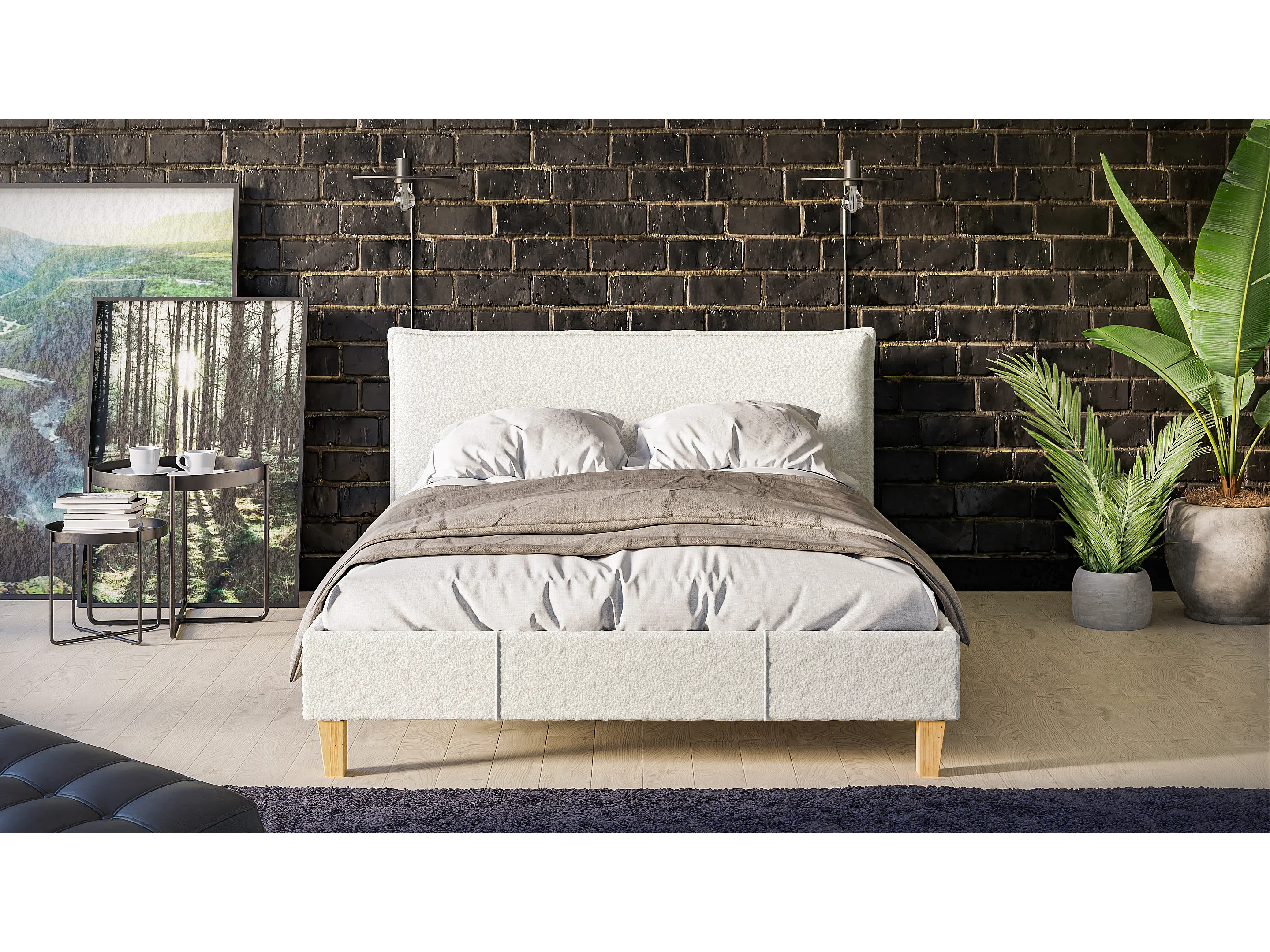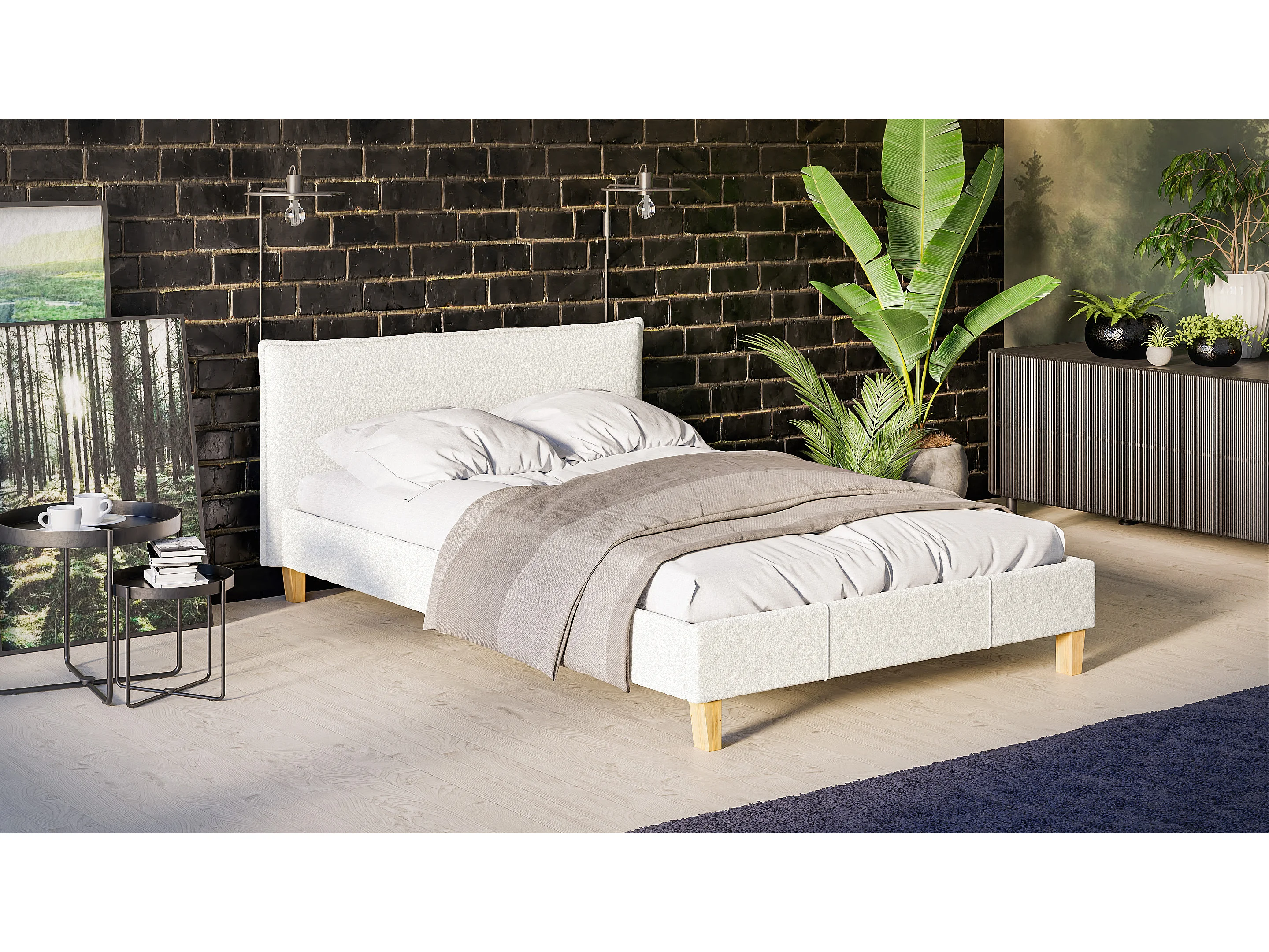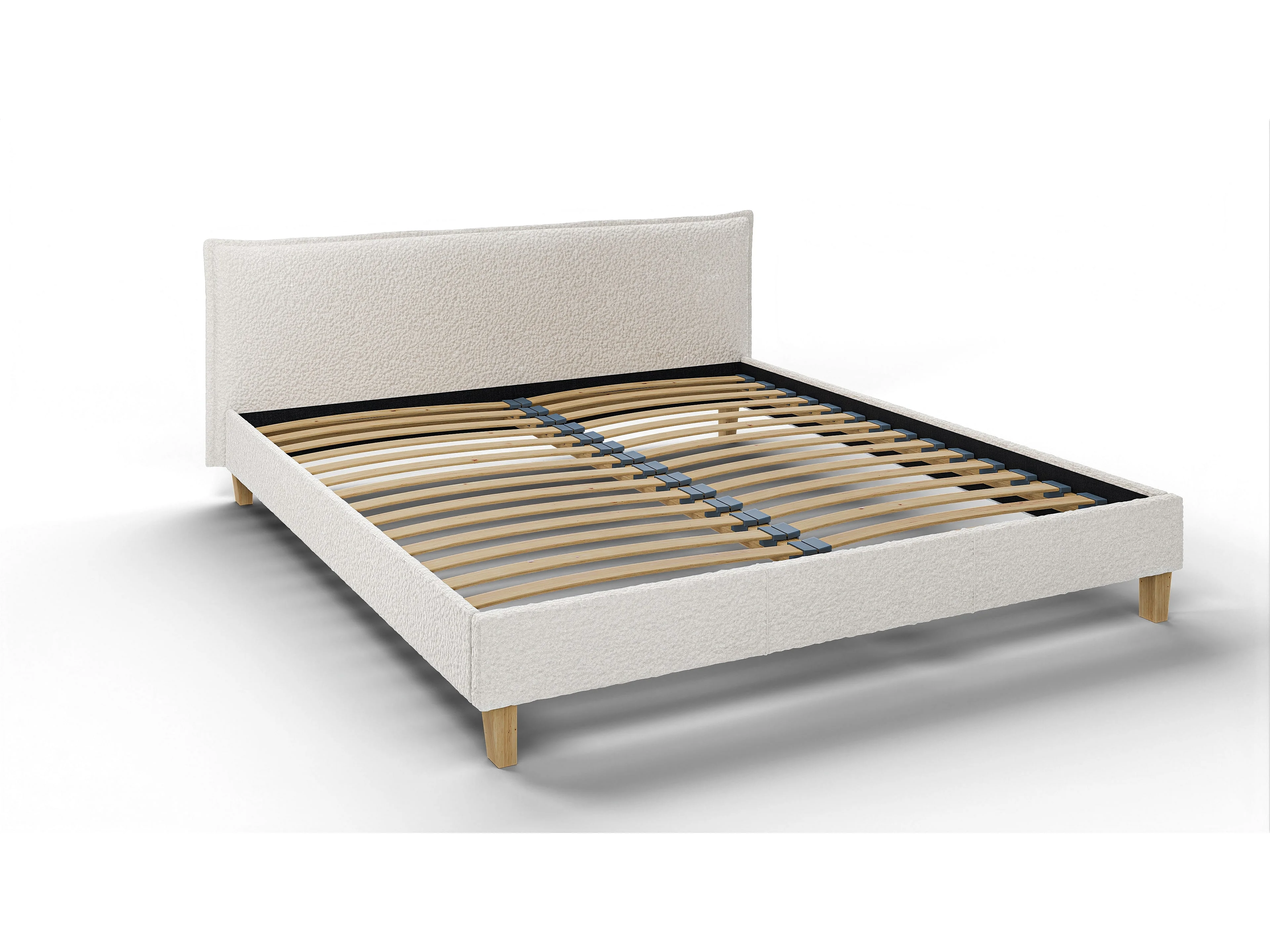Polsterbett Uriah Boucle Stoff Füße aus Massivholz