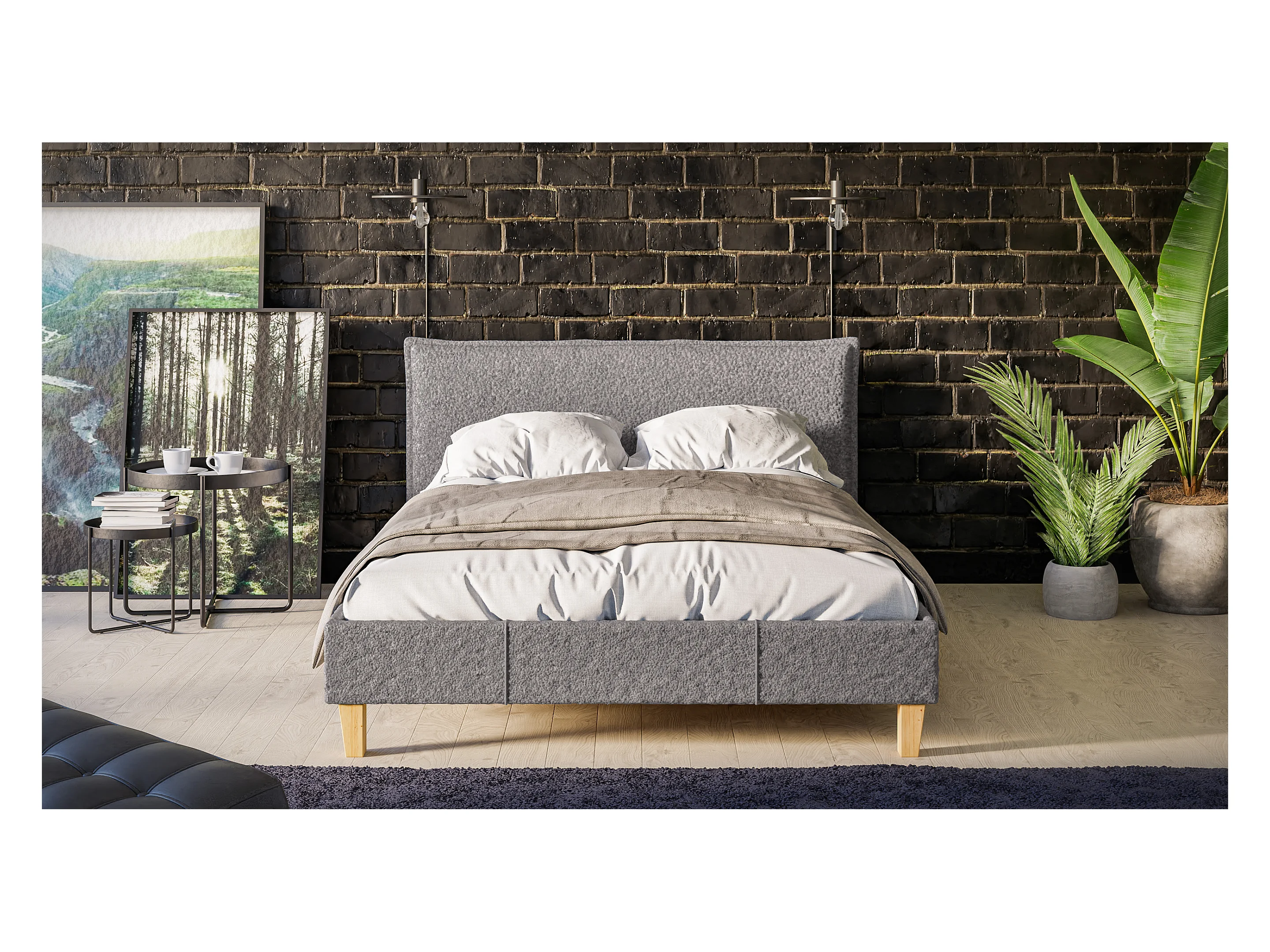 Polsterbett Uriah Boucle Stoff Füße aus Massivholz