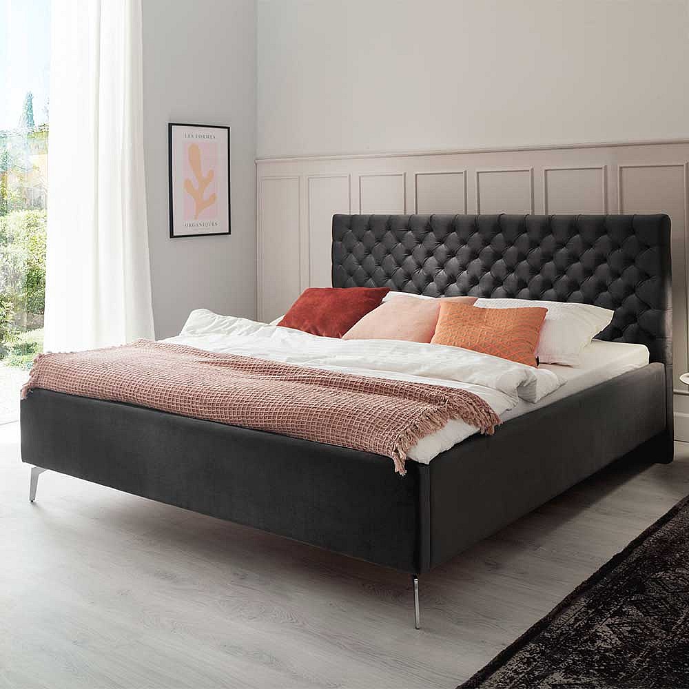 Polsterbetten mit Lattenrosten in Anthrazit Chromfarben