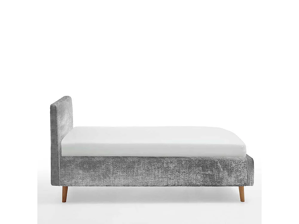 Polsterbettgestell grau mit hochklappbaren Lattenrosten 105 cm hoch