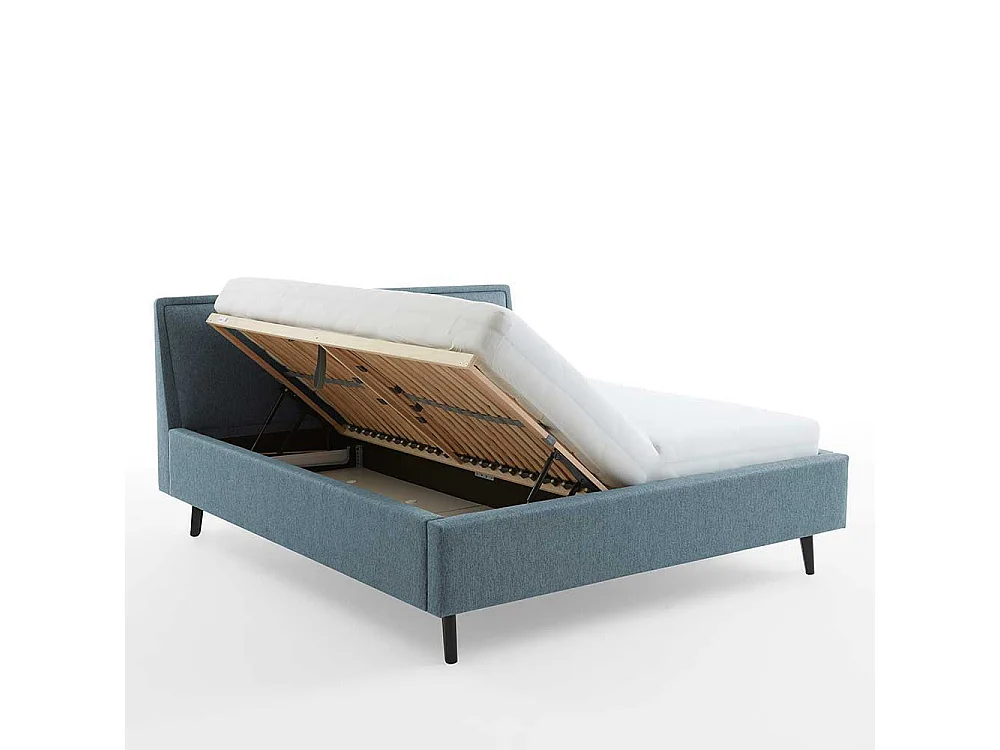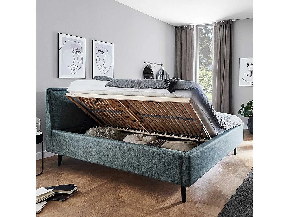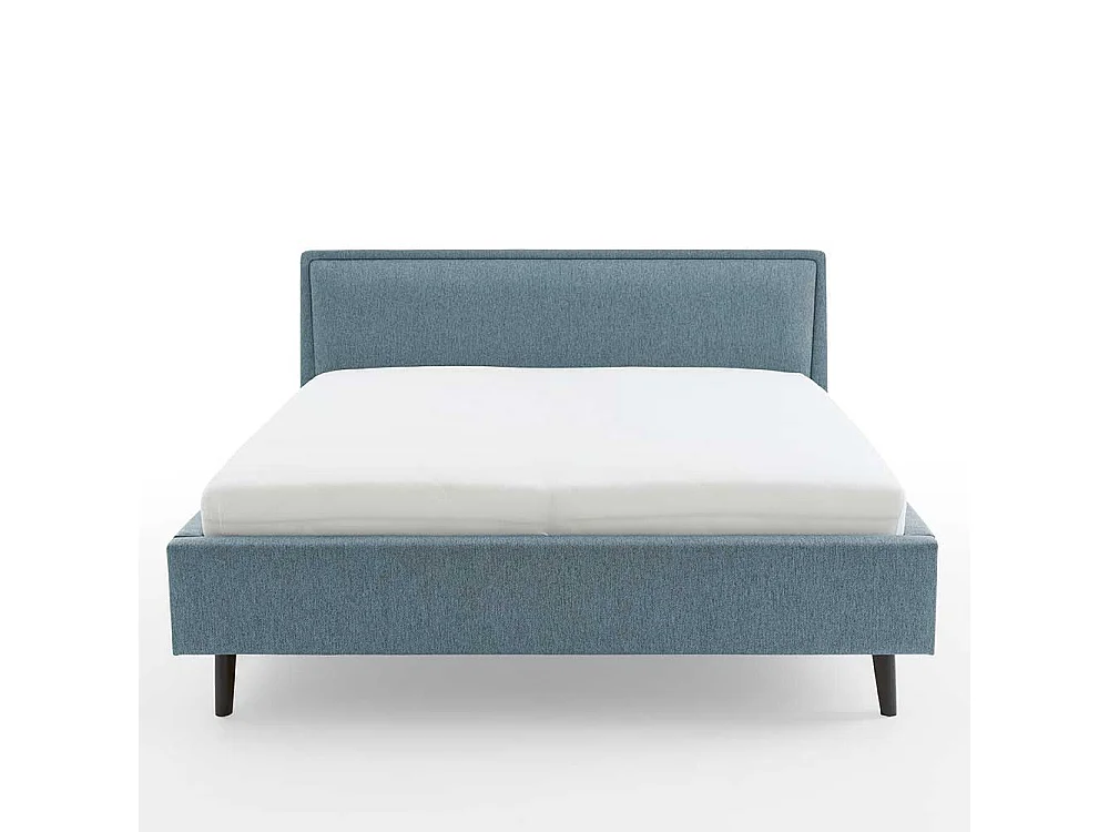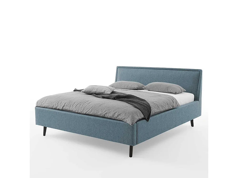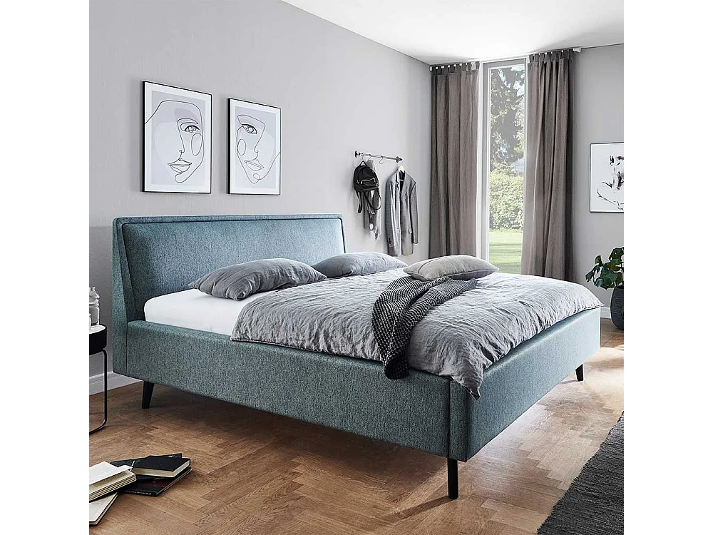Polsterbettgestell in Blaugrau Vierfußgestell aus Holz