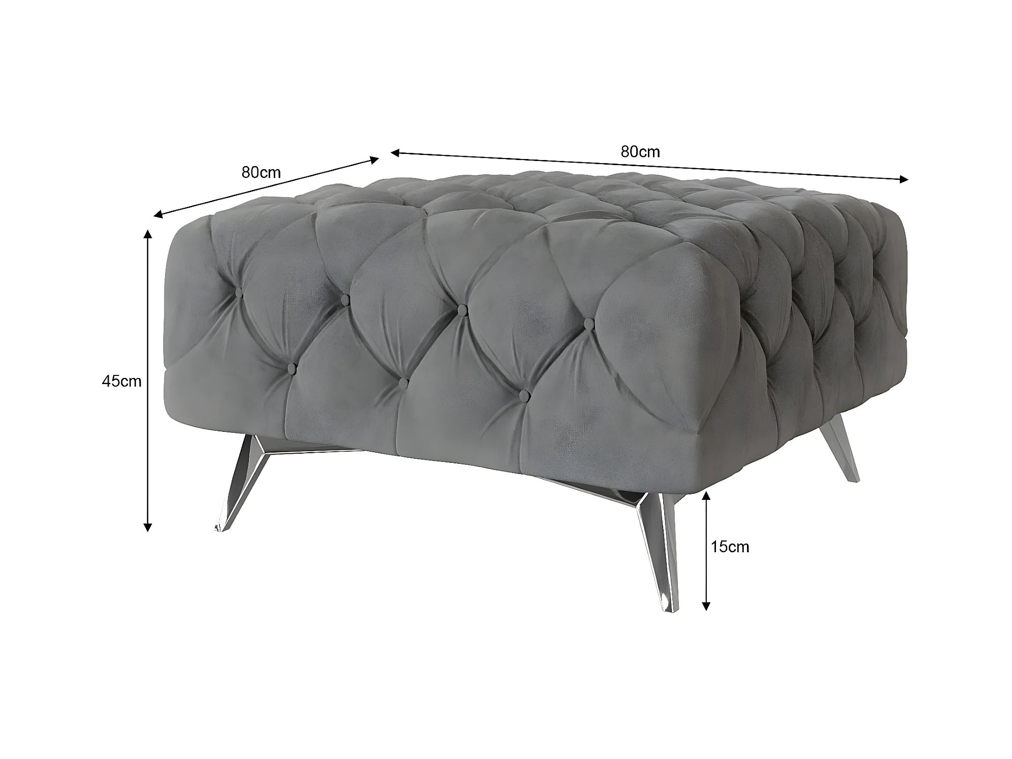 Polsterhocker Celeste mit klassischer Chesterfield-Knopfheftung und Silber Metall Füßen