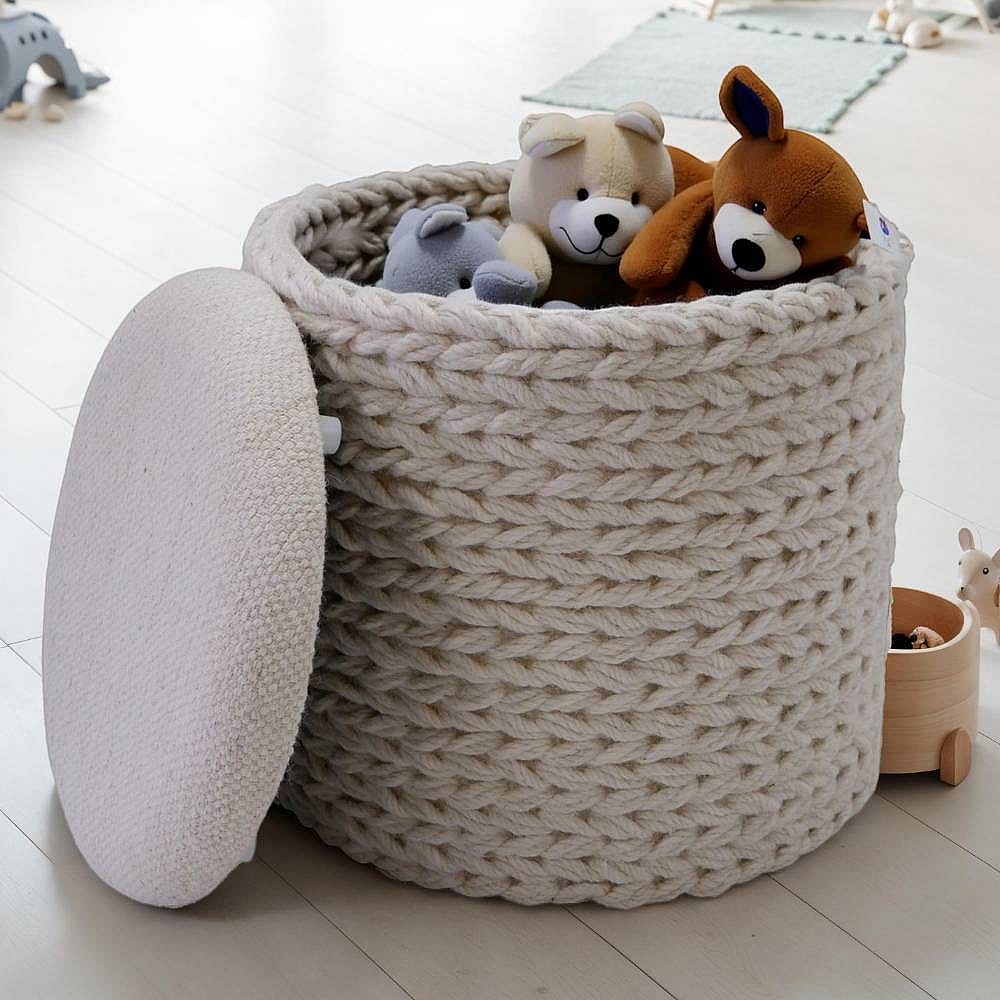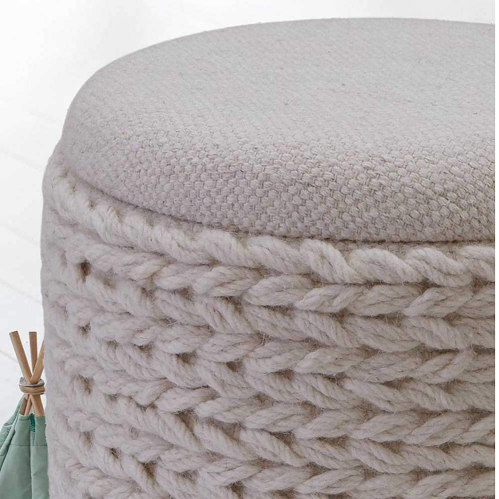 Polsterhocker Pouf in Cremewei� im Skandi Design