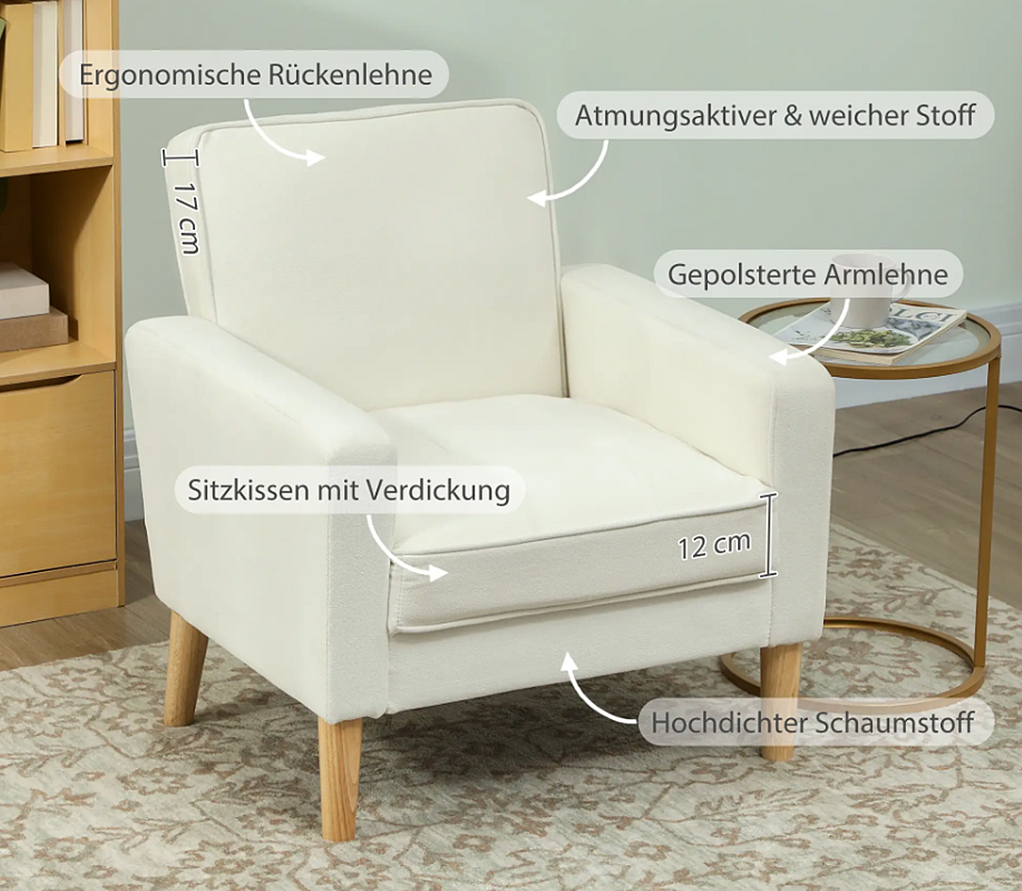 Polstersessel mit Armlehnen, neigbare Rückenlehne, Einzelsessel,76B x 79T x 82H cm