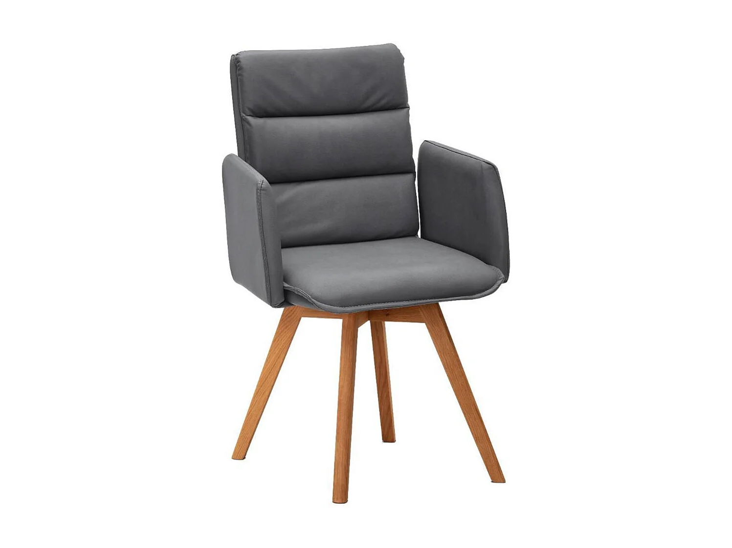 Polsterstuhl Armlehner in Dunkelgrau mit Gestell aus Massivholz