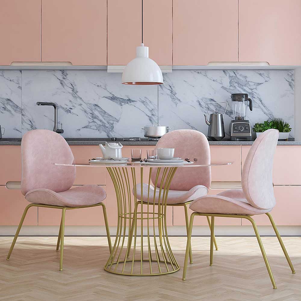 Polsterstuhl Esszimmer Rosa aus Samt Gestell aus Metall