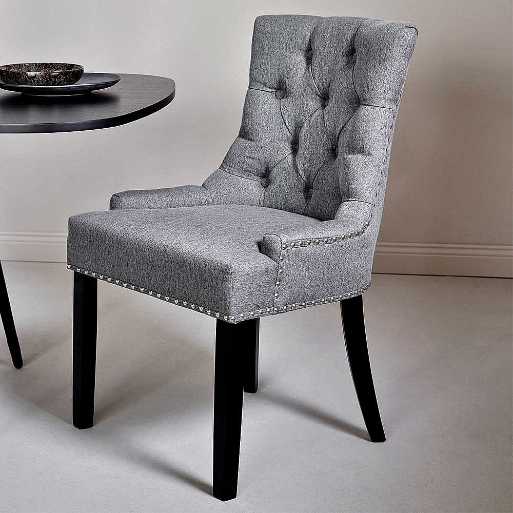 Polsterstuhl Esszimmer Stuhl im Chesterfield Look in Grau
