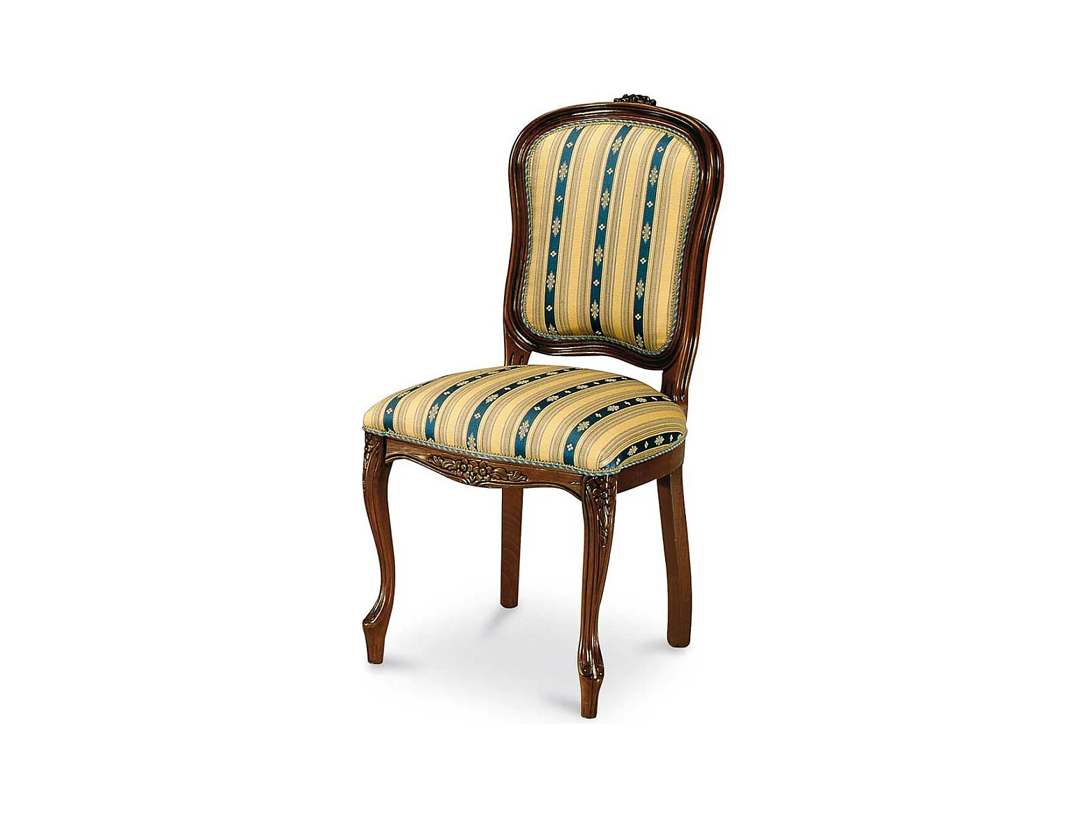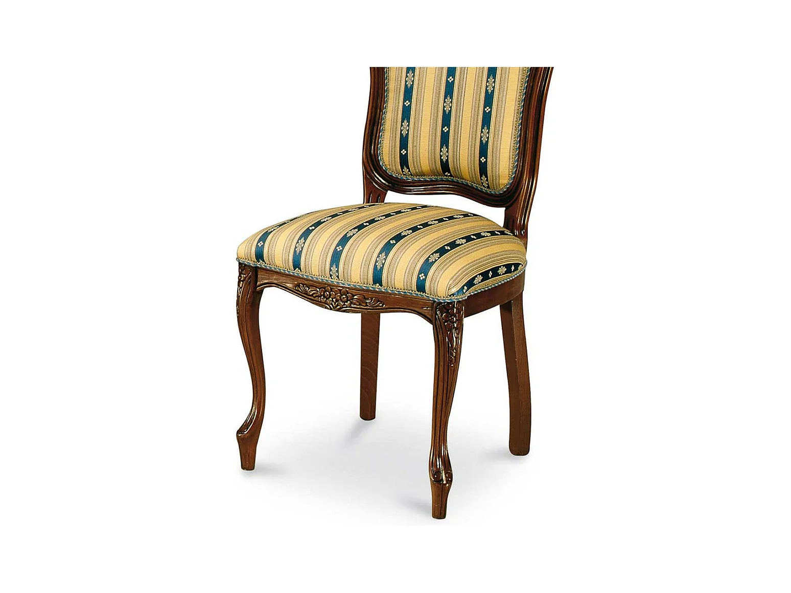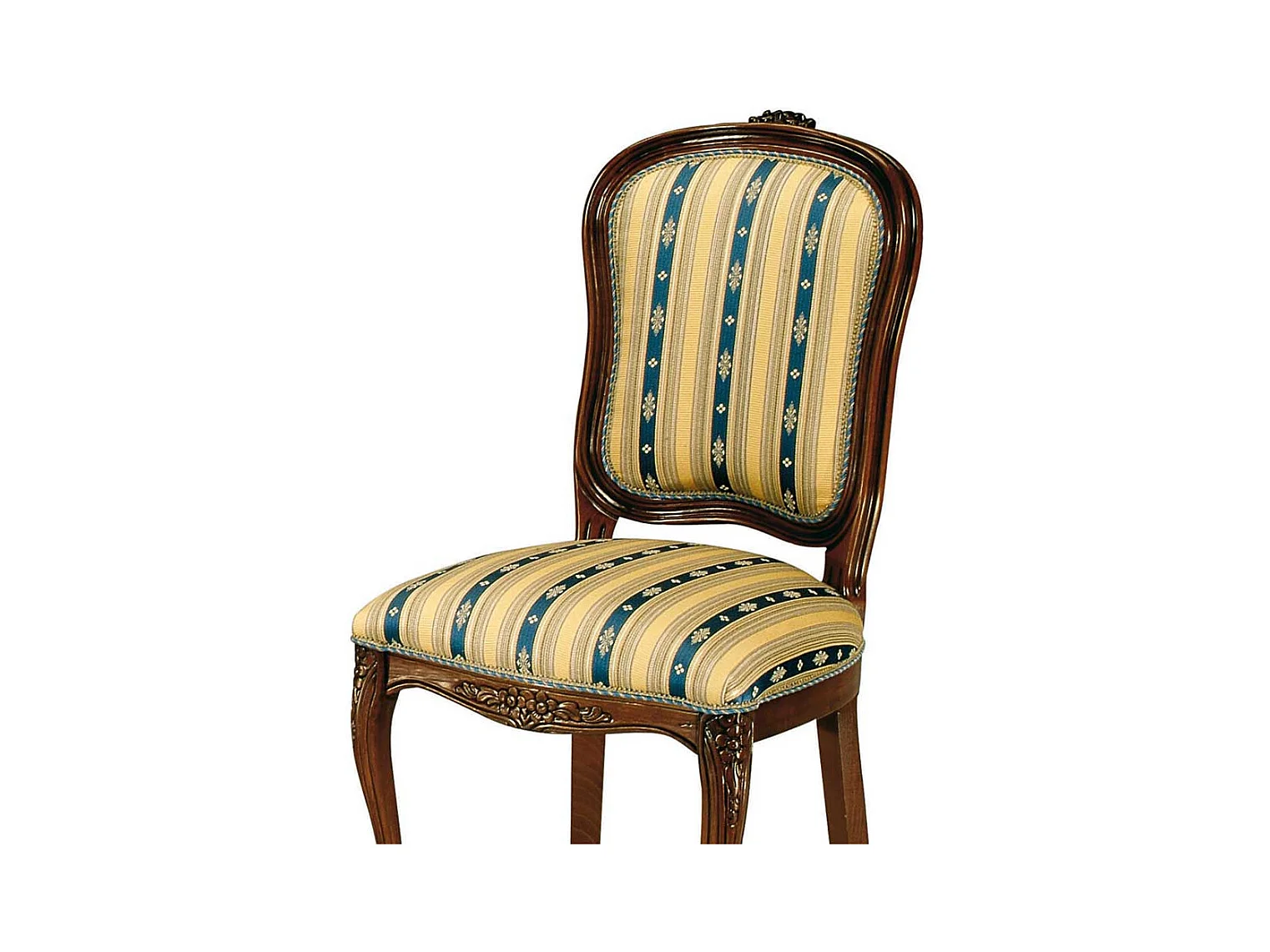 Polsterstuhl in Gelb Blau gestreift Nussbaumfarben