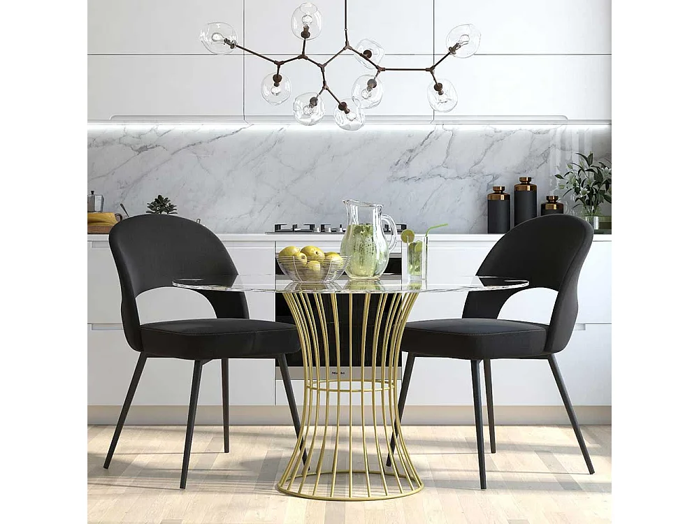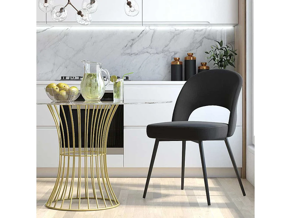 Polsterstuhl mit Ausschnitt in Schwarz Samt und Metall