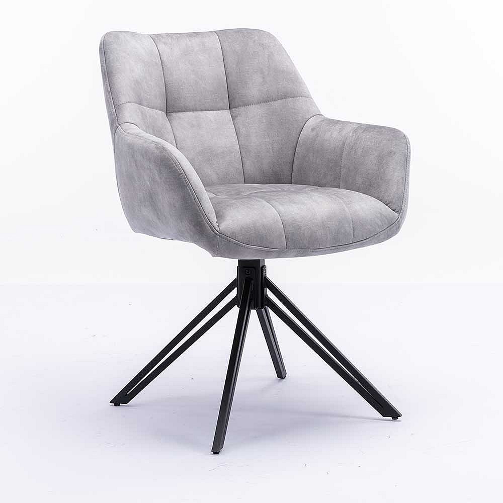 Polsterstuhl Set modern in Grau und Schwarz drehbarem Gestell aus Metall (2er Set)
