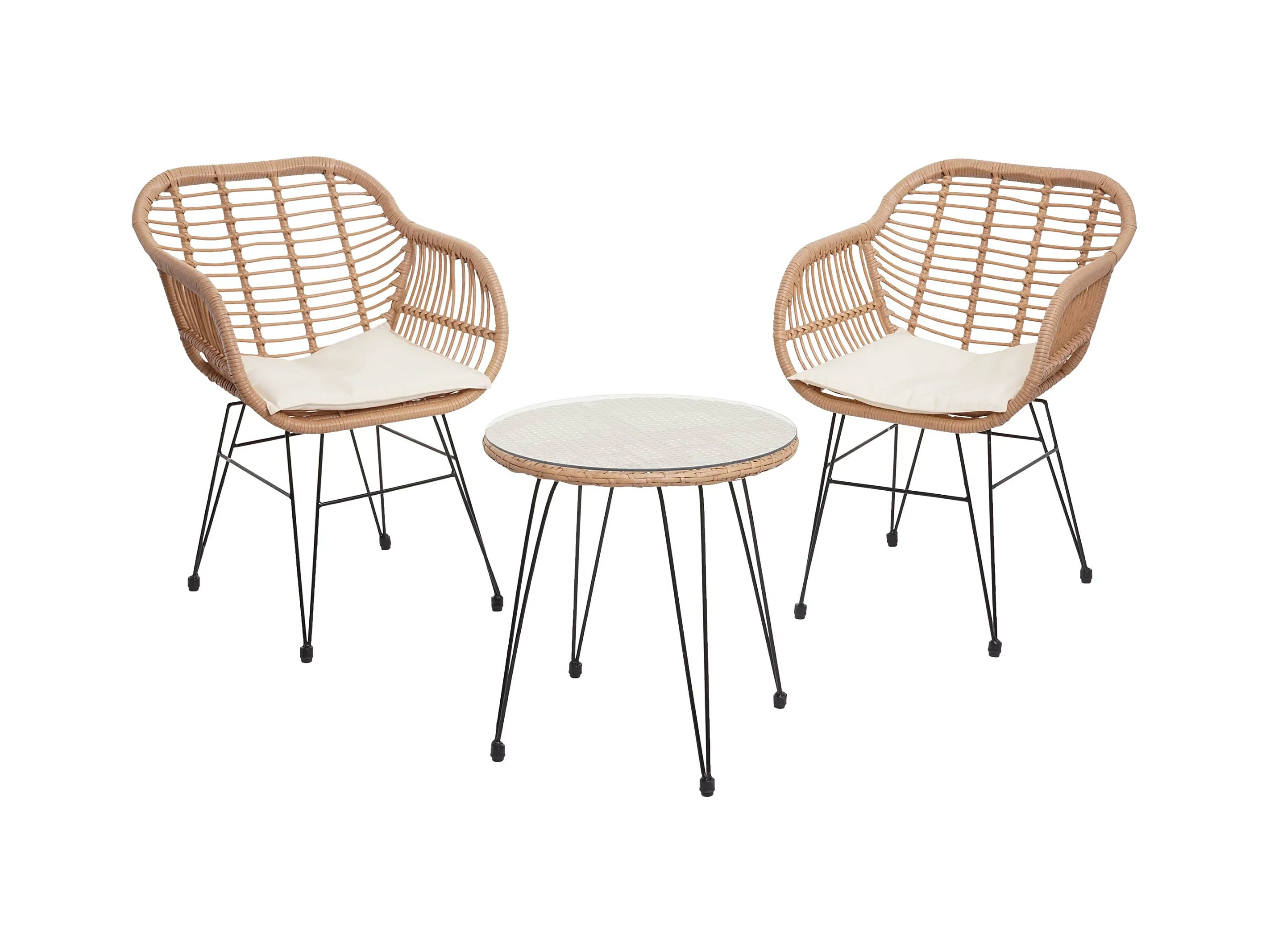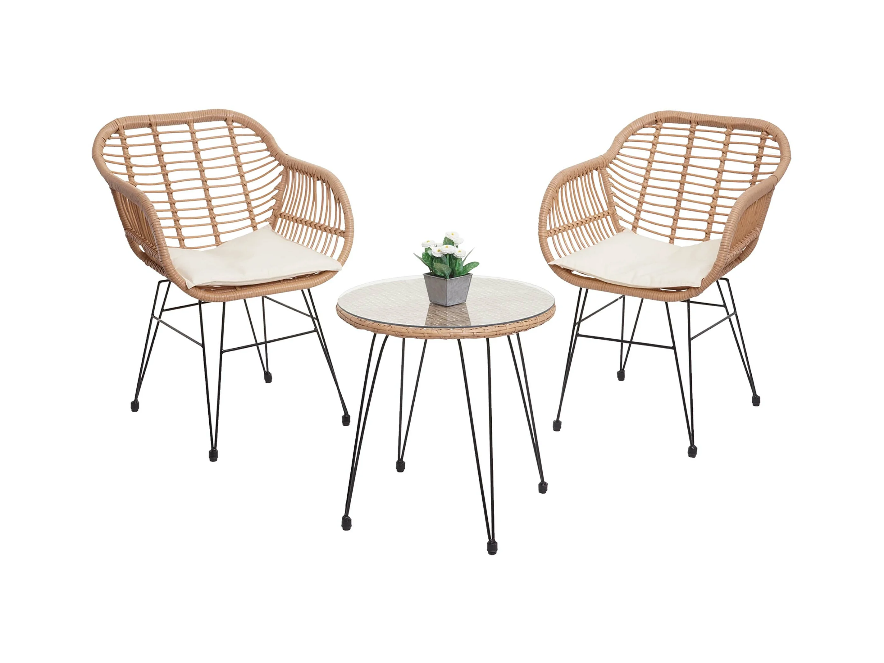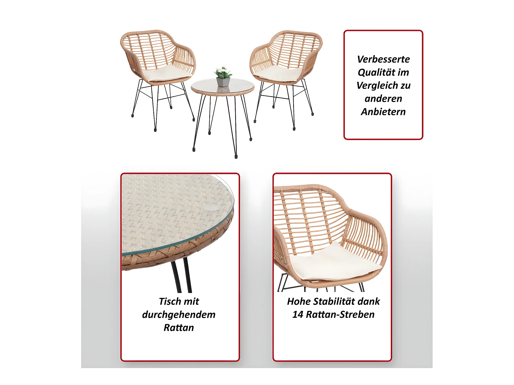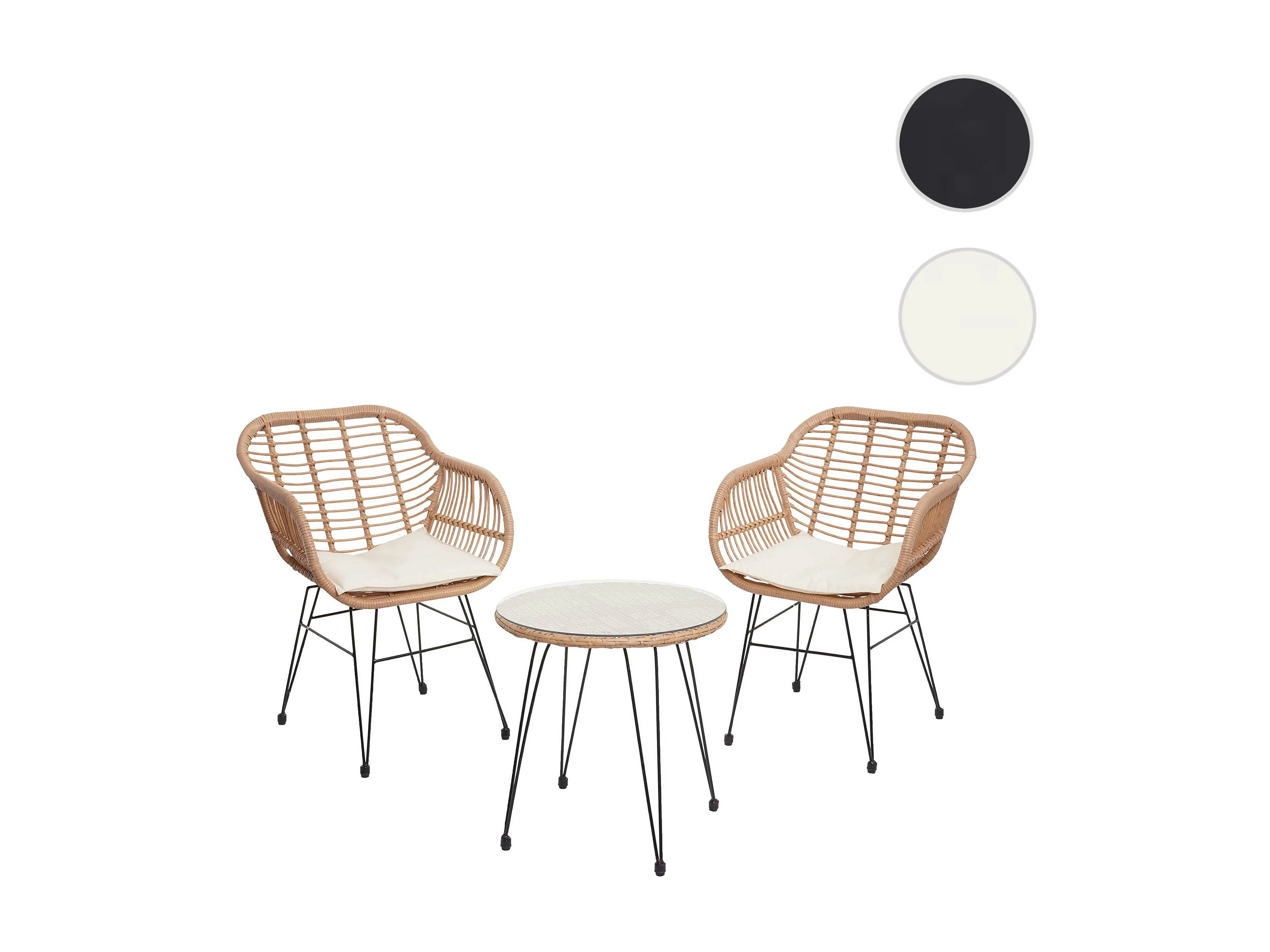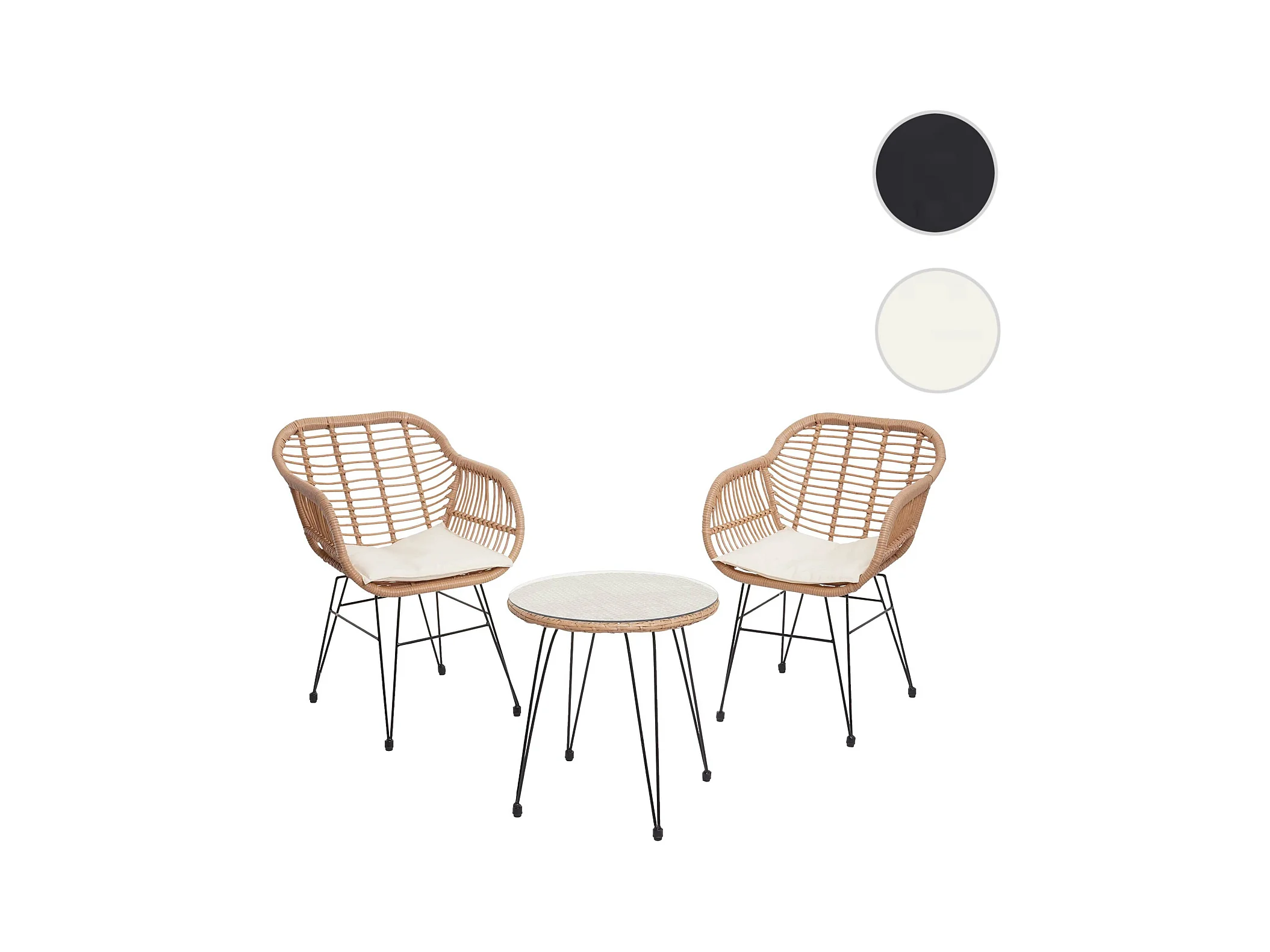 Poly-Rattan Garnitur MCW-G17 (3-teilig), Naturfarben, Kissen creme