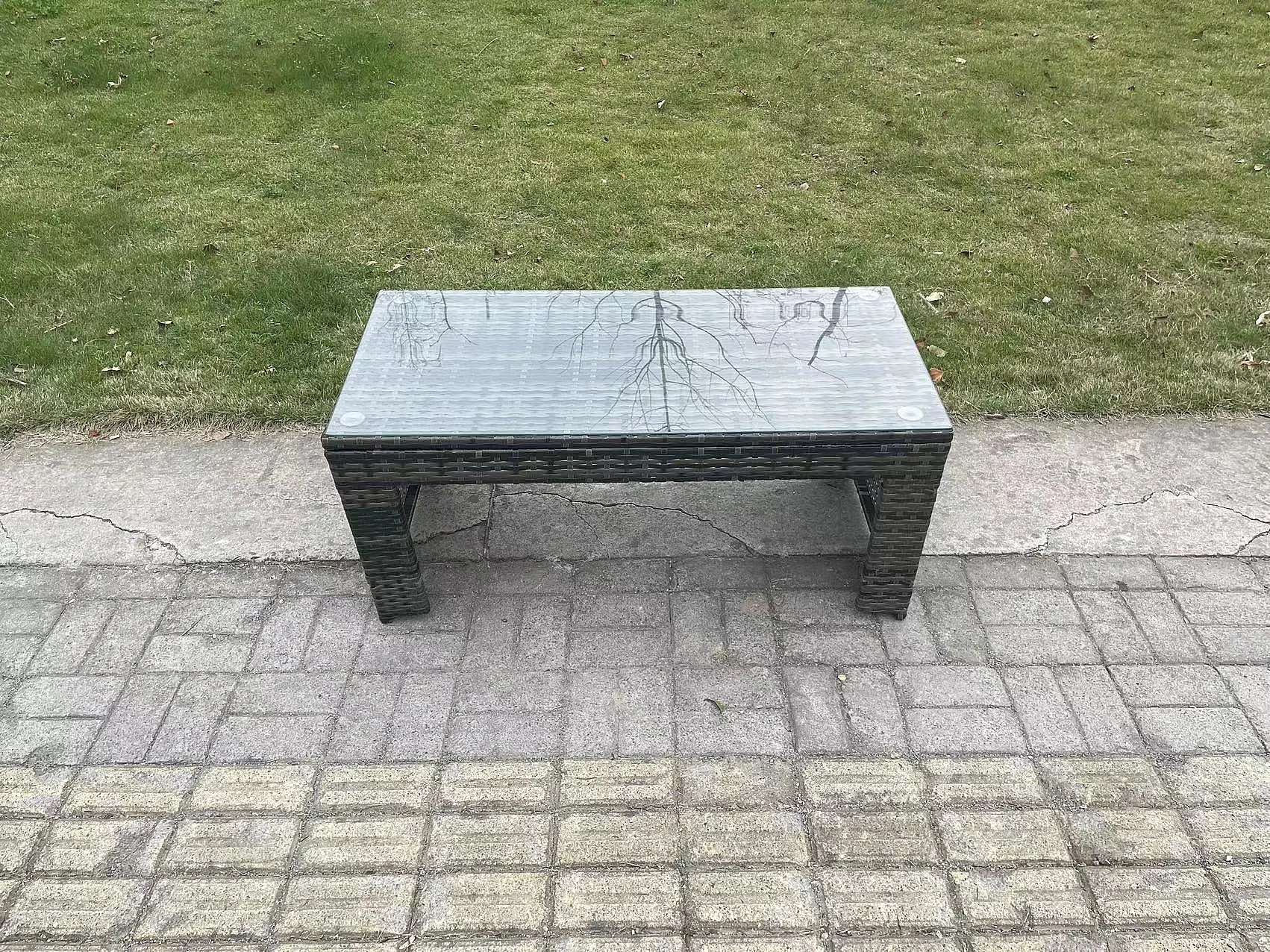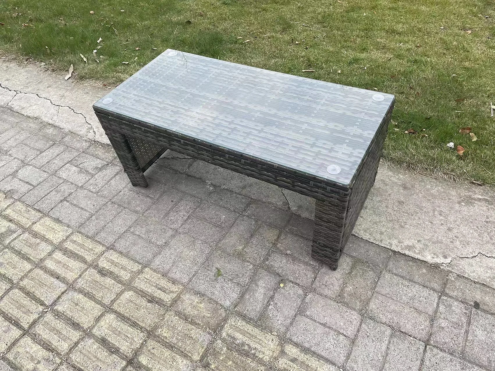 Polyrattan Couchtisch Gartenmöbel im Freien Quadrat Teetisch Dunkelgrau