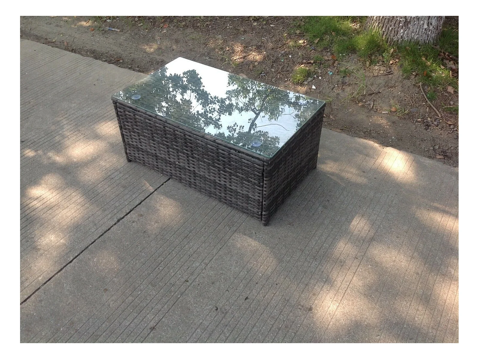 Polyrattan Couchtisch Gartentisch Balkontisch Loungetisch Gartenmöbel im Freien Dunkelgrau gemischt