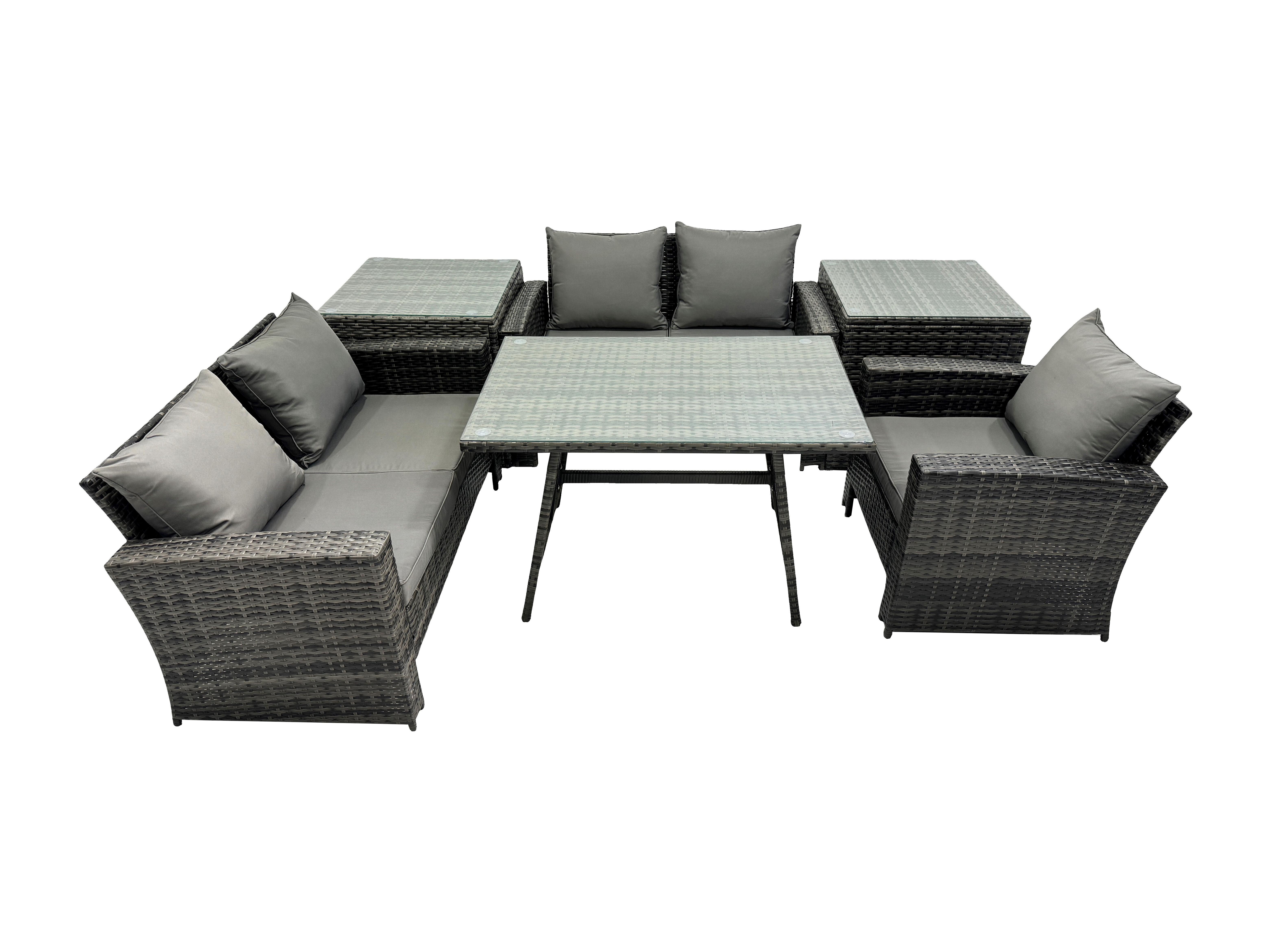 Polyrattan Garten Esstisch Set Gartenmöbel Sofa mit Rechteckiger Esstisch Loveseat Sofa 2 Beistelltischen Dunkelgrau Gemischt