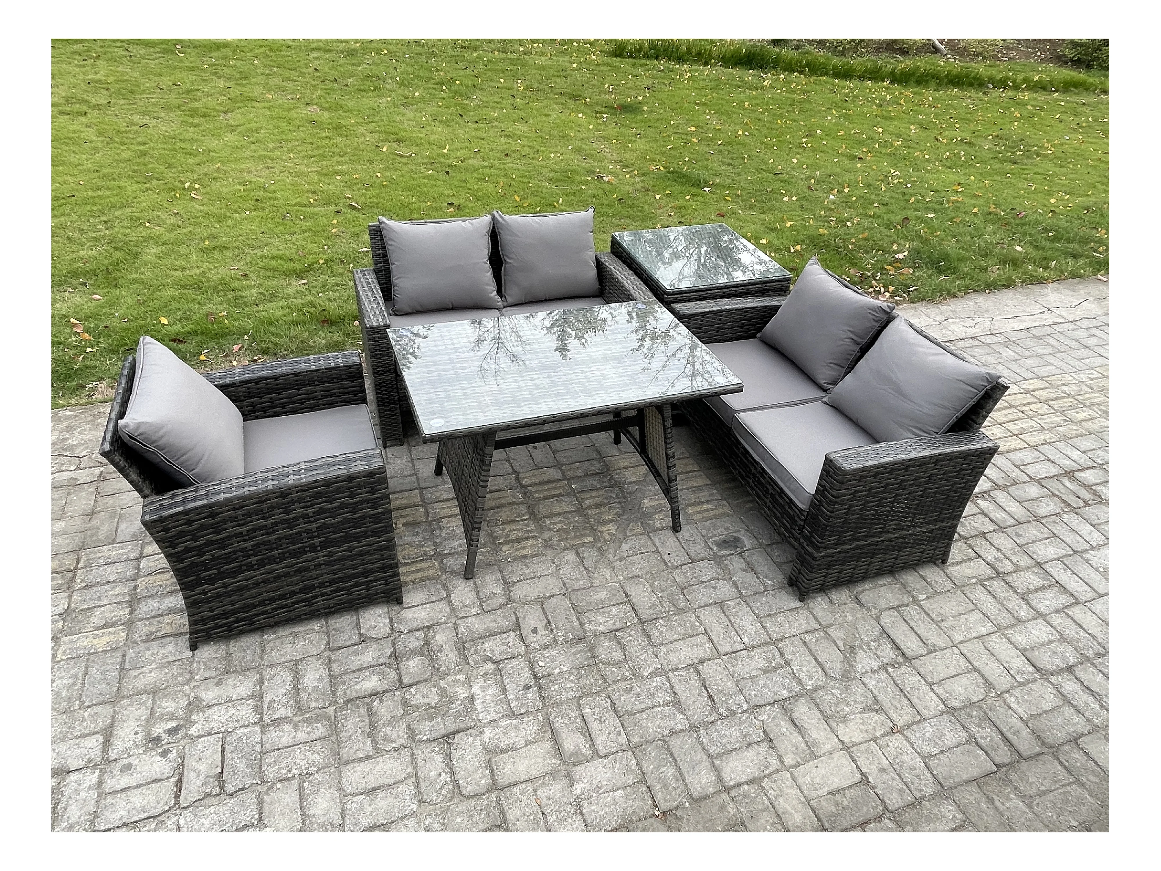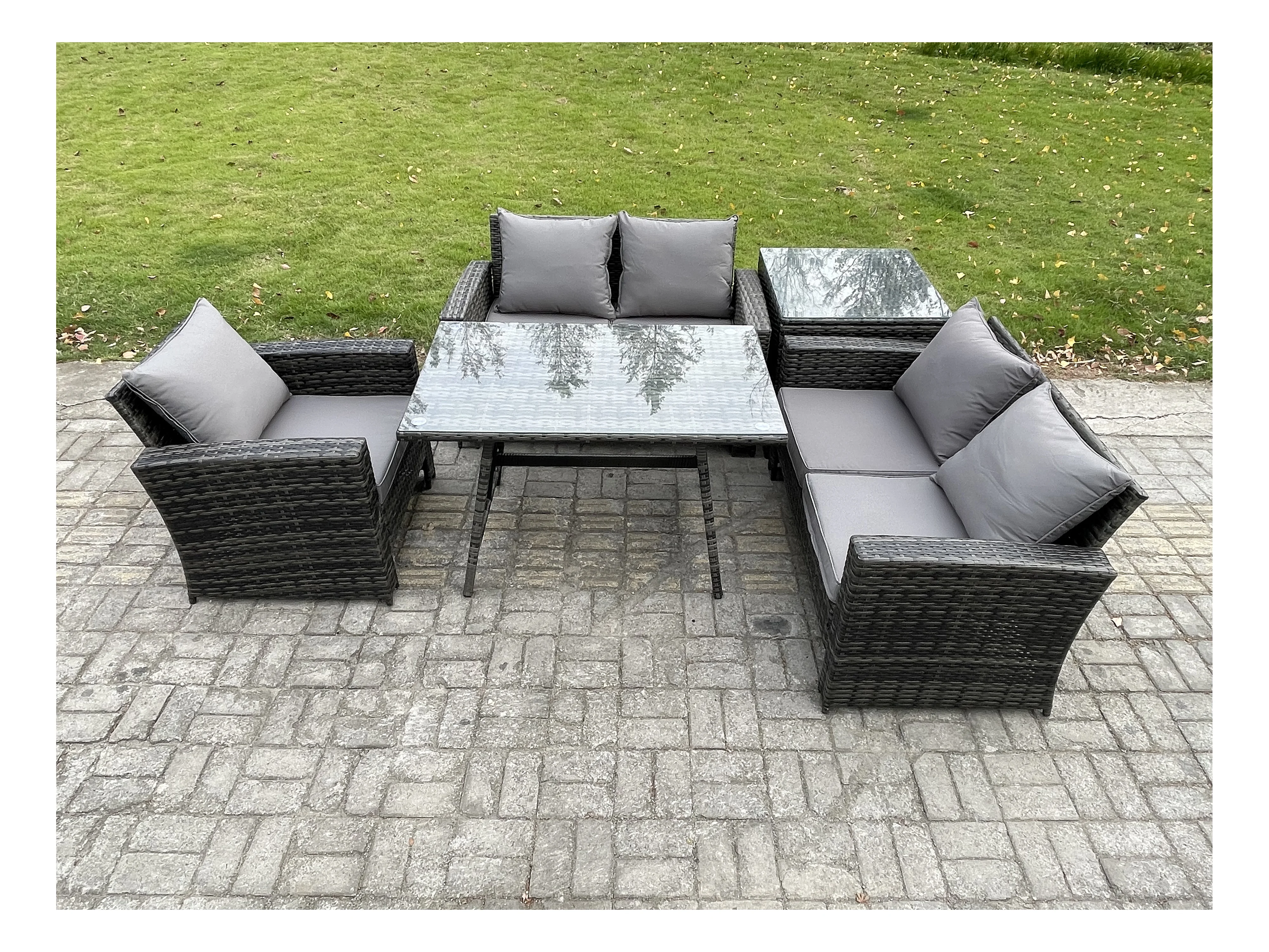 Polyrattan Garten Esstisch Set Gartenmöbel Sofa mit Rechteckiger Esstisch Loveseat Sofa Beistelltisch Dunkelgrau Gemischt