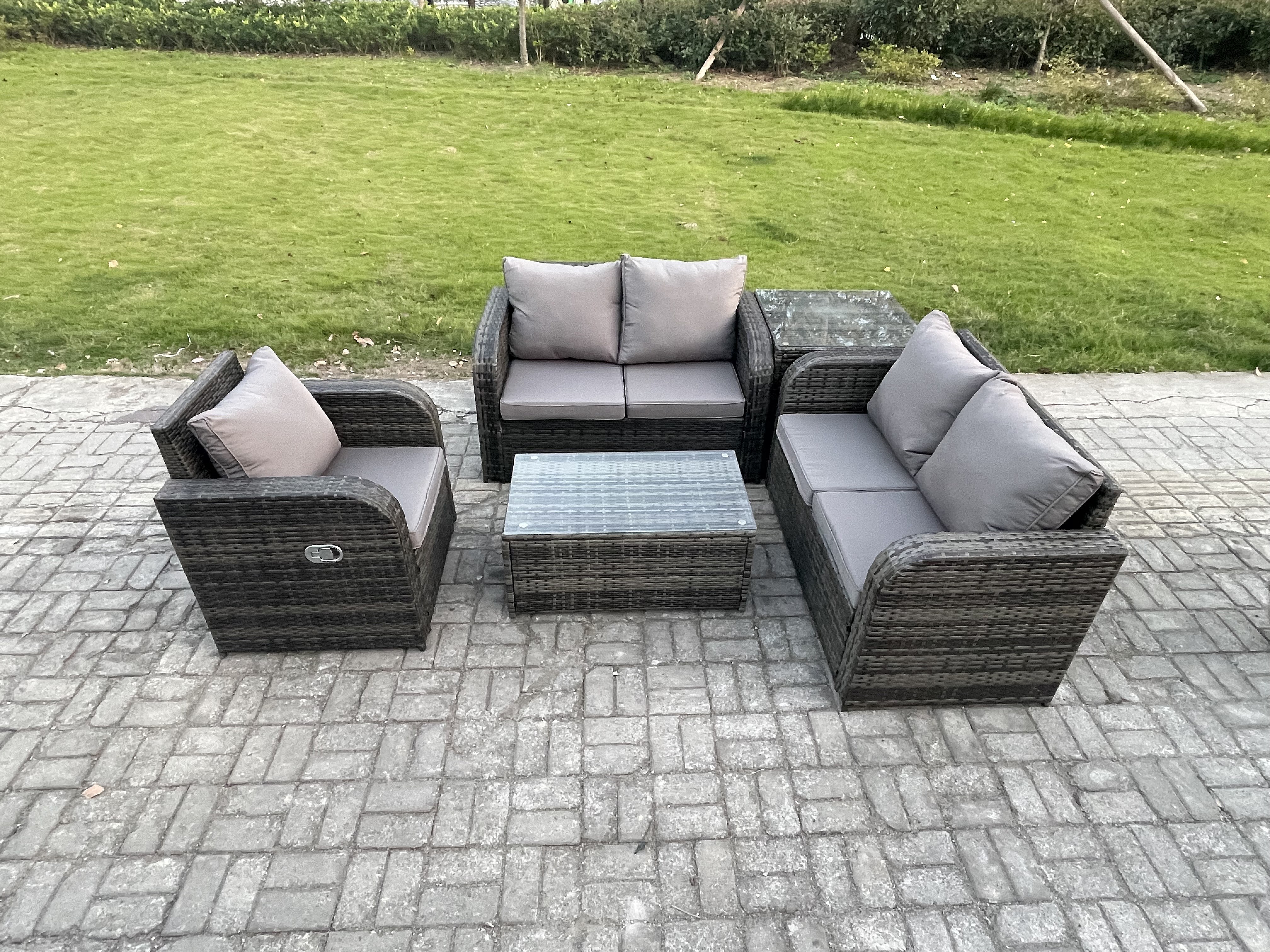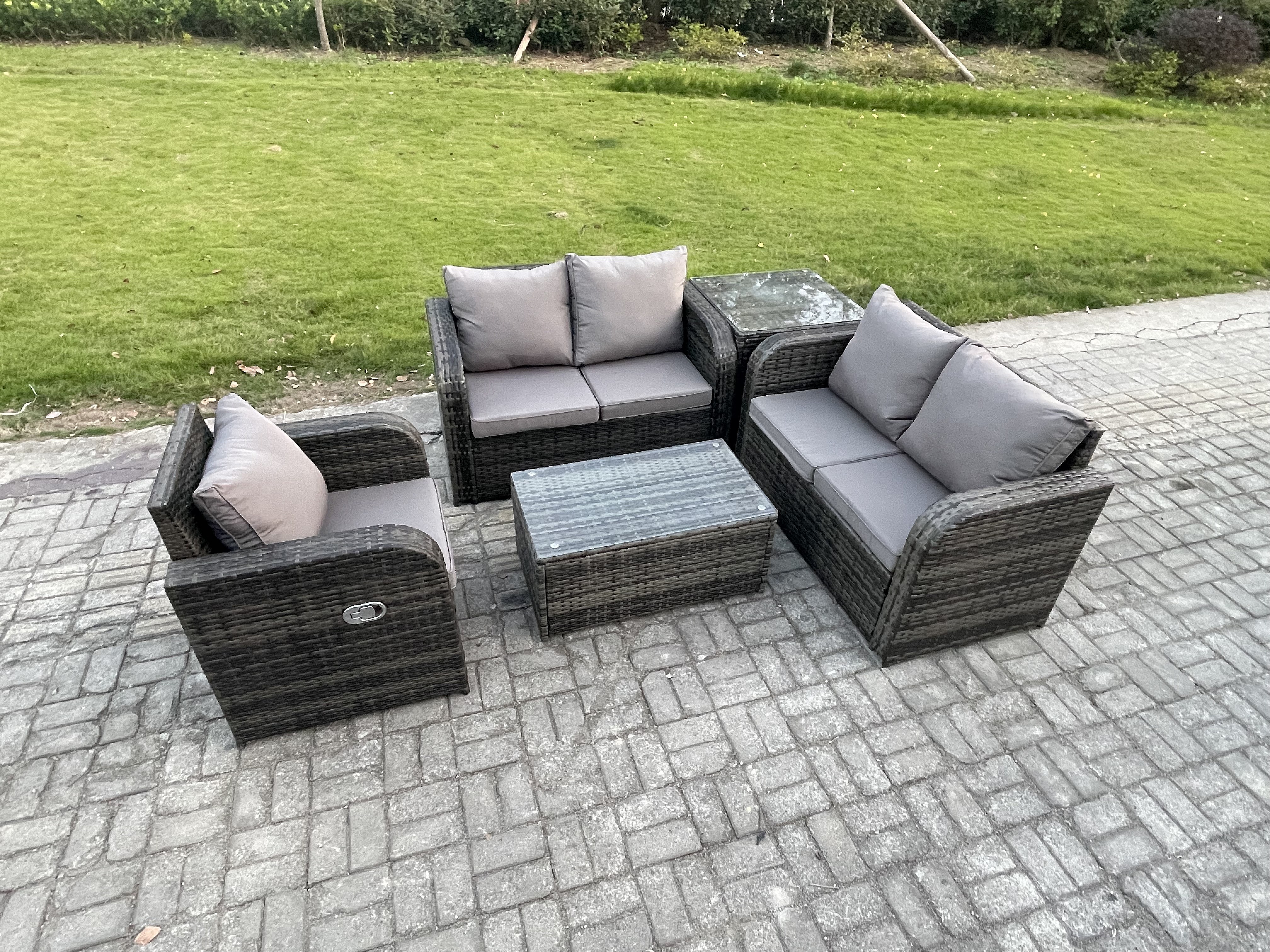 Polyrattan Gartenmöbel 5er-Set Sitzgruppe Terrasse Dunkelgrau