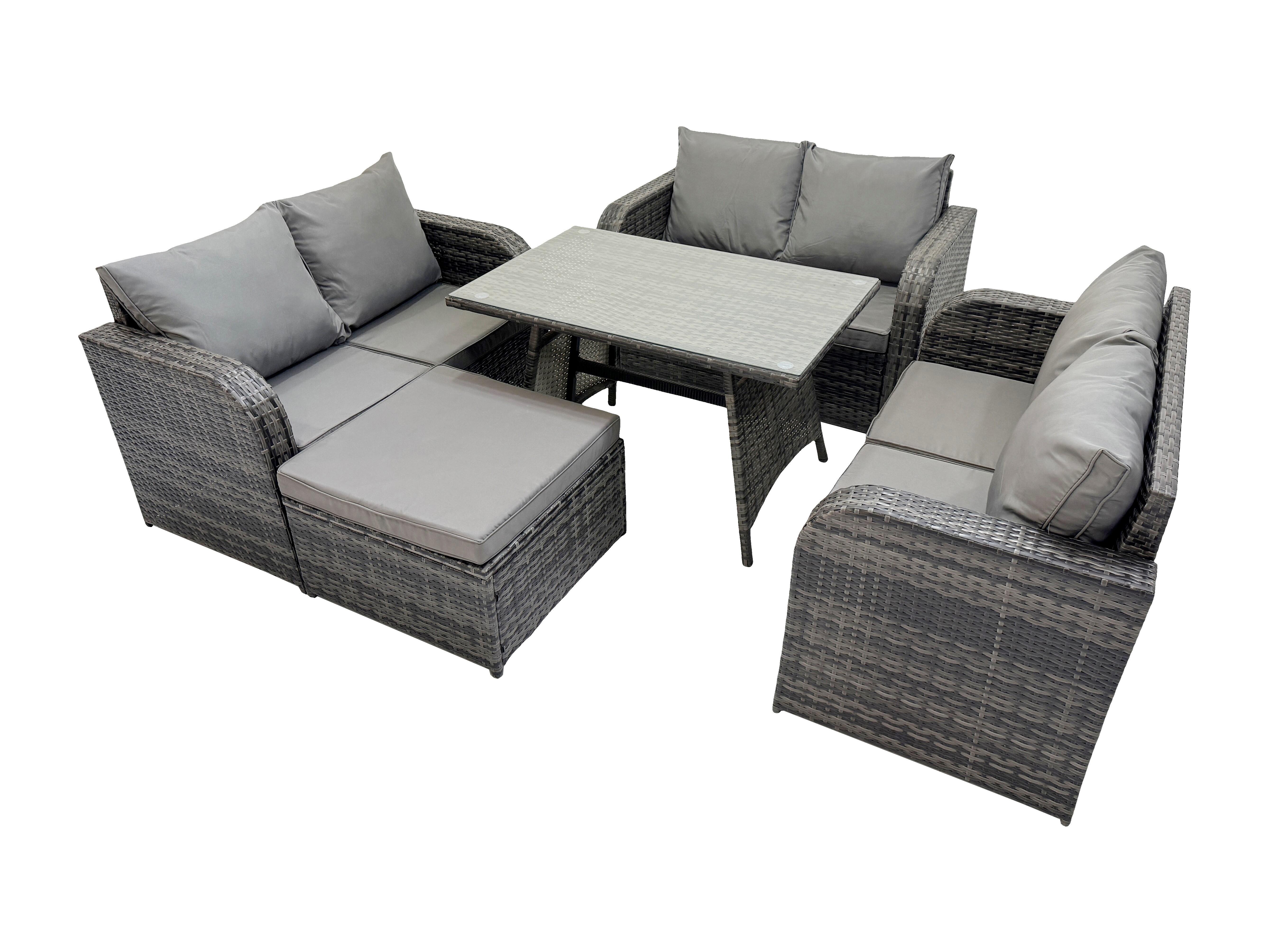 Polyrattan Gartenmöbel Set 7-Sitzer Gartensofa Set mit Rechteckiger Esstisch 2 Großer Hockern Dunkelgrau Gemischt