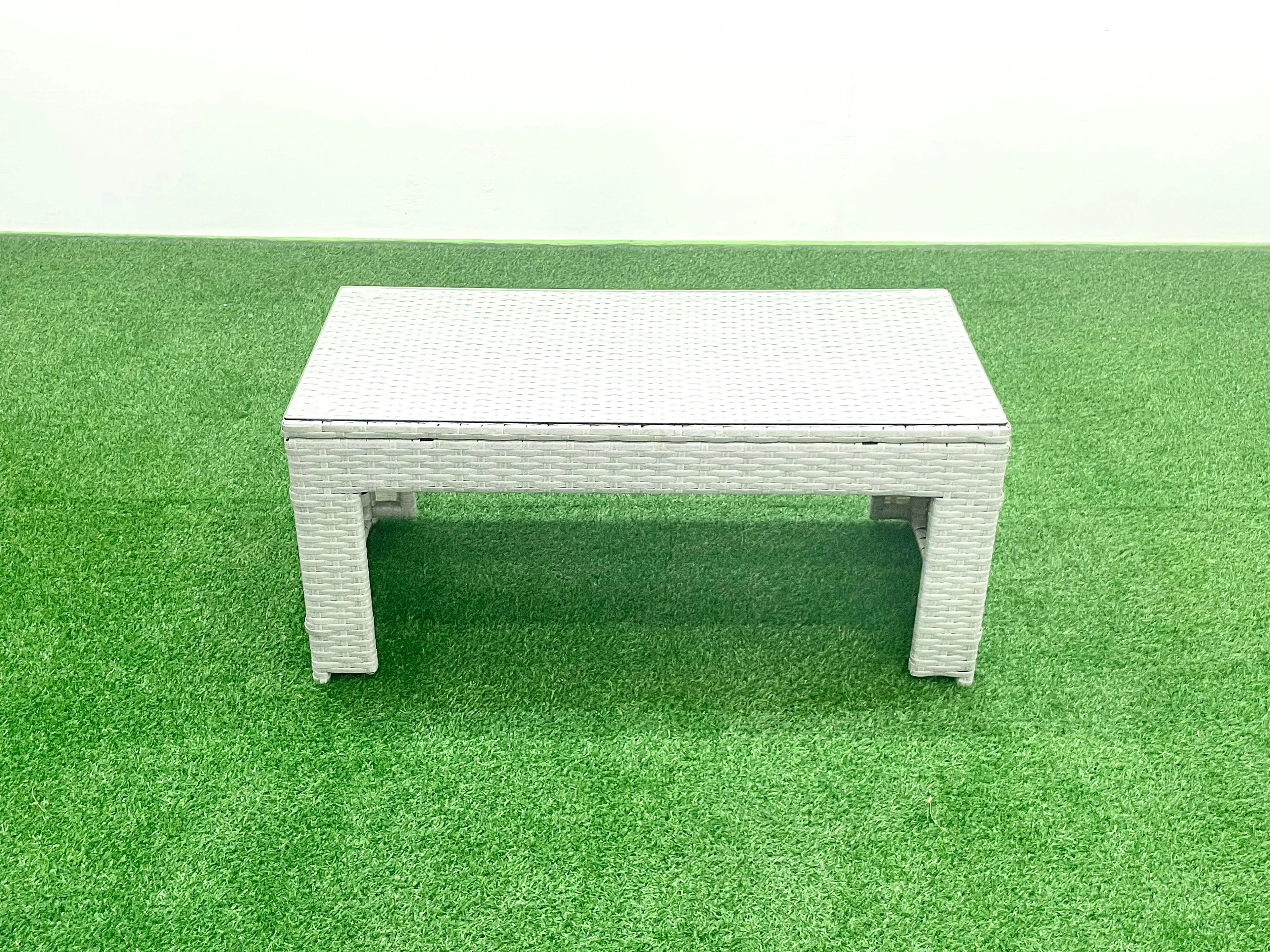 Polyrattan Gartenmöbel Set 7-Sitzer Outdoor Garten Sofa Rechteckiger Couchtisch Set mit 2 Sesseln 2 Hockern Beistelltisch Hellgrau gemischt