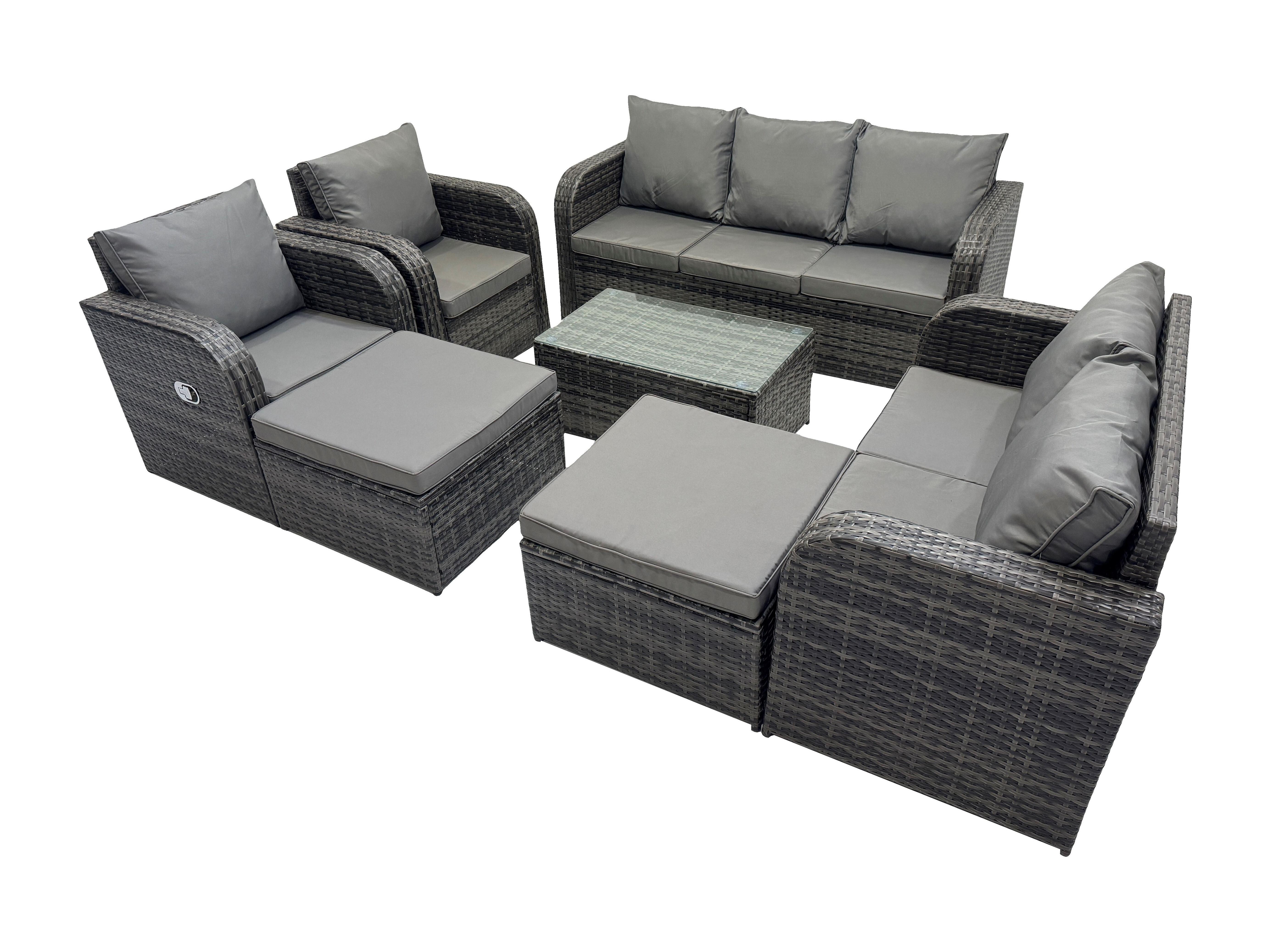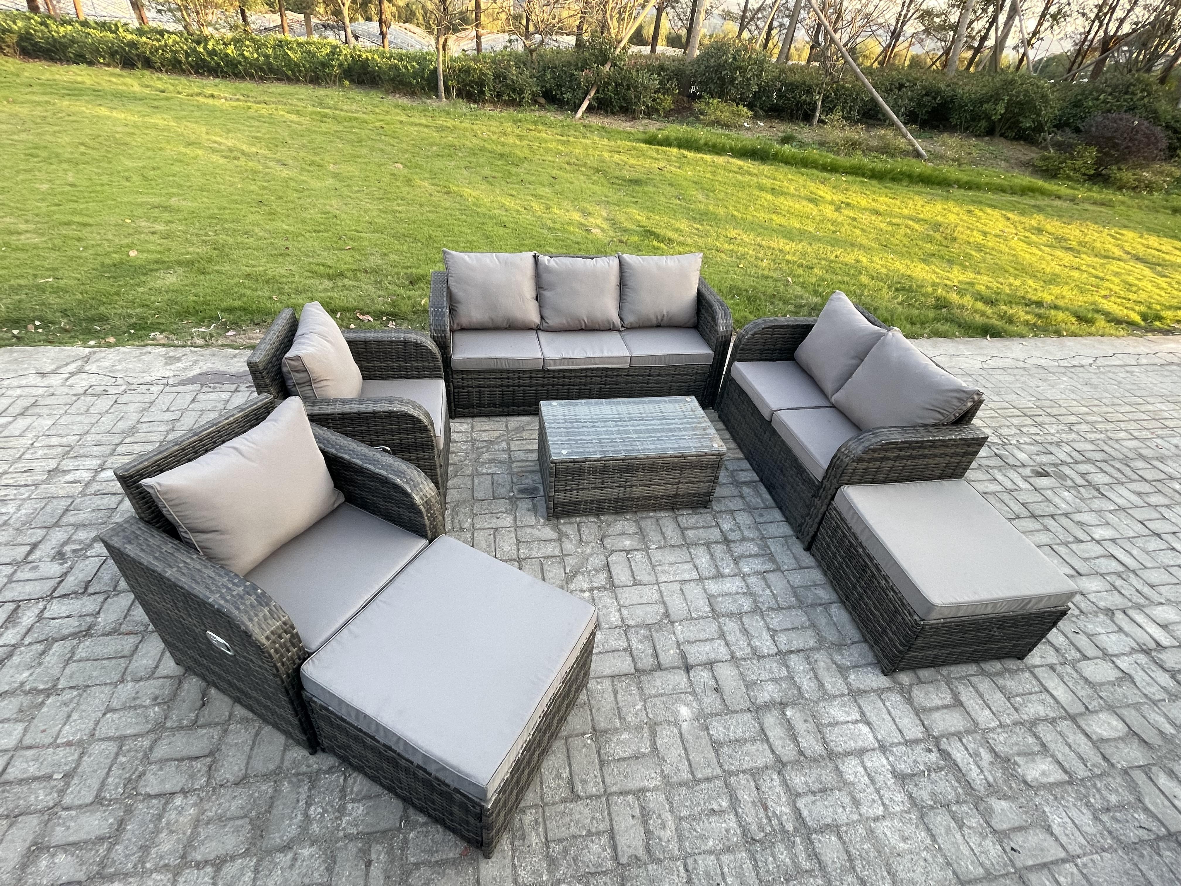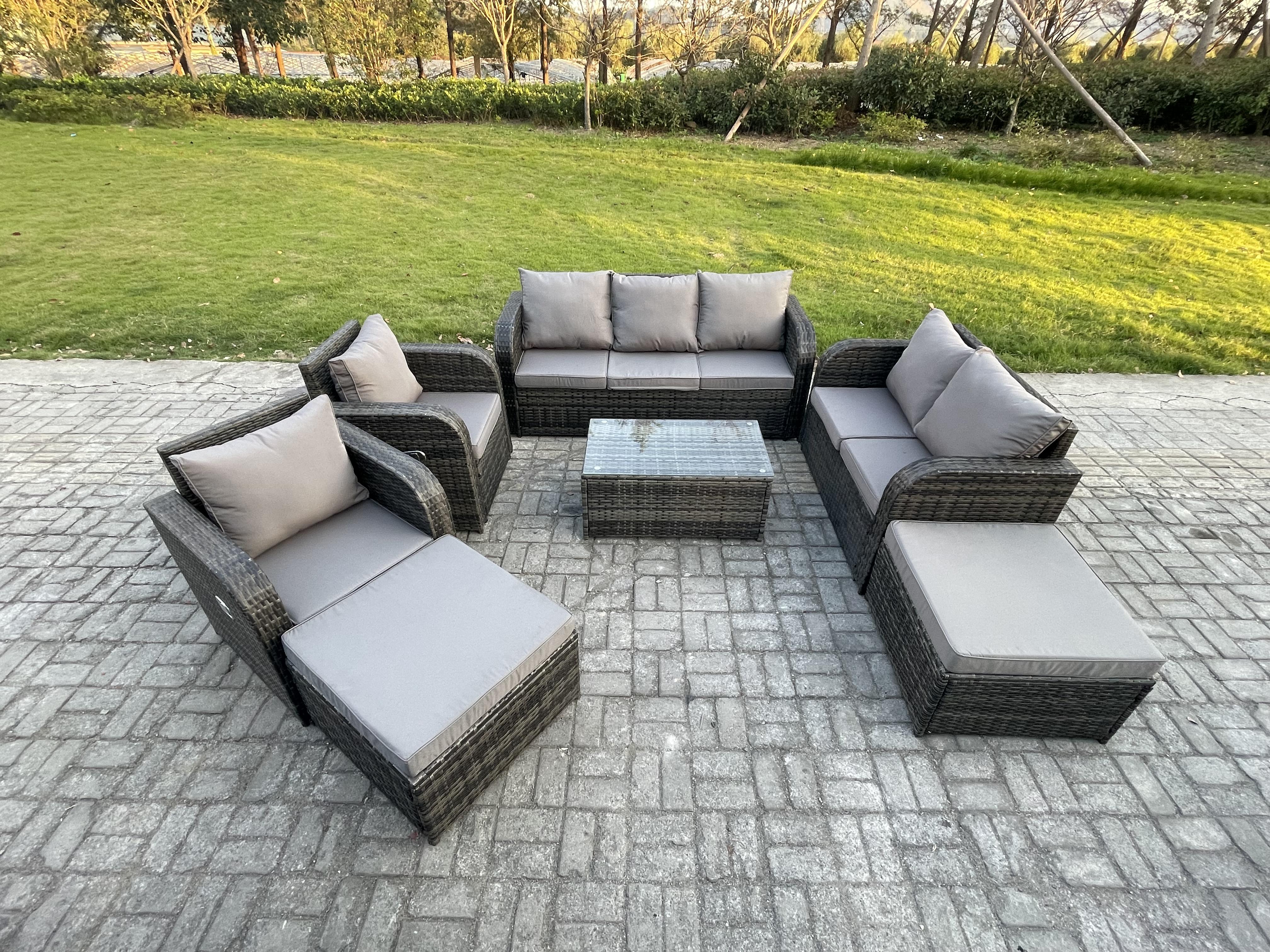 Polyrattan Gartenmöbel Set 9-Sitzer Garten Sofa im Freien Set mit Love Sofa Couchtisch 2 hohen Hockern Dunkelgrau Gemischt