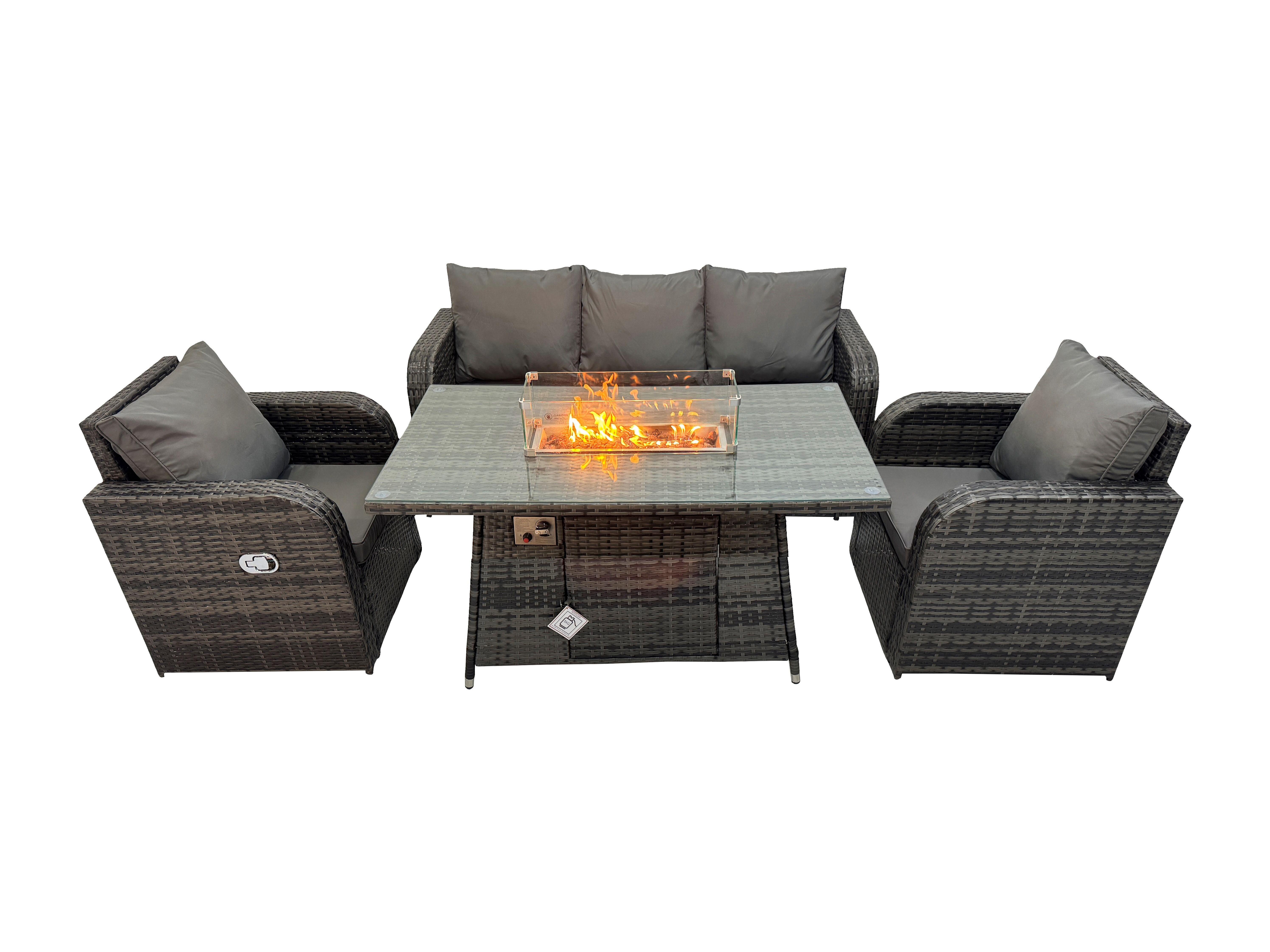 Polyrattan Gartenmöbel Set Garten Sofa im Freien Gasfeuerstelle Esstisch Set mit 3-Sitzer Sofa Dunkelgrau Gemischt