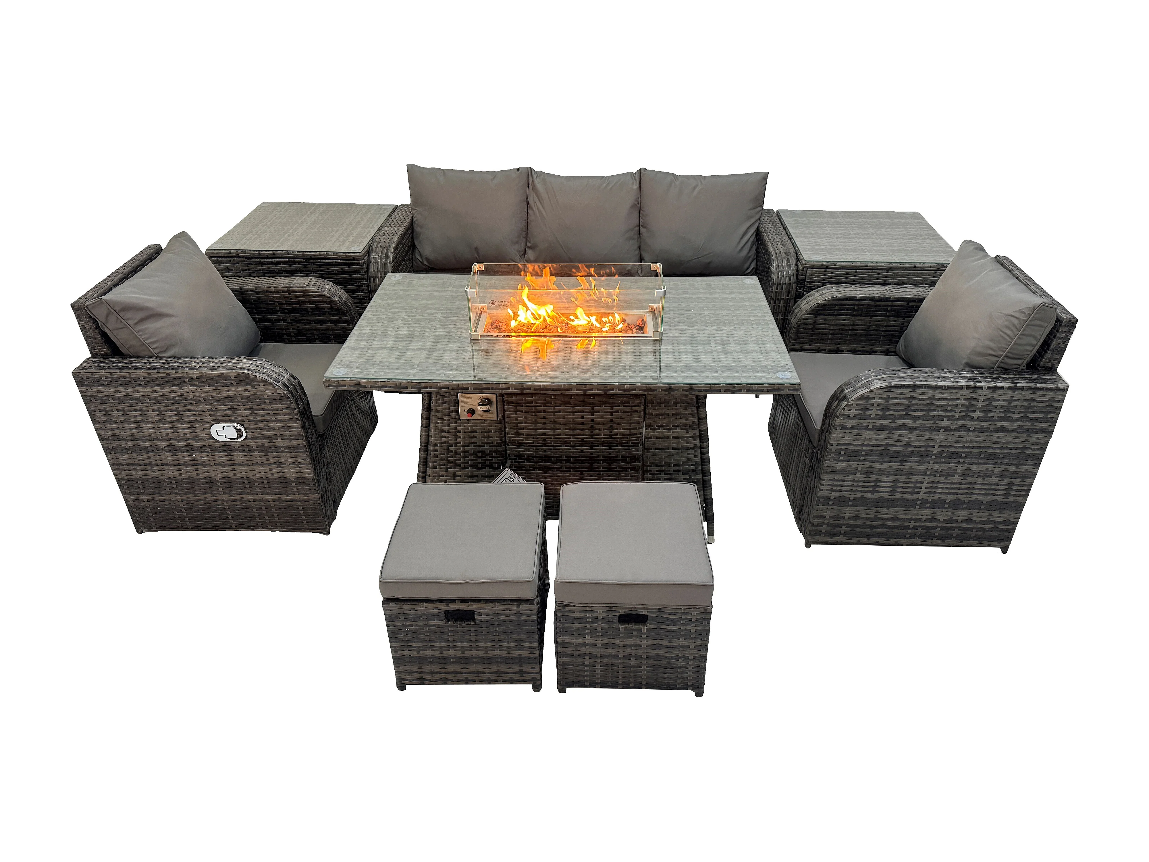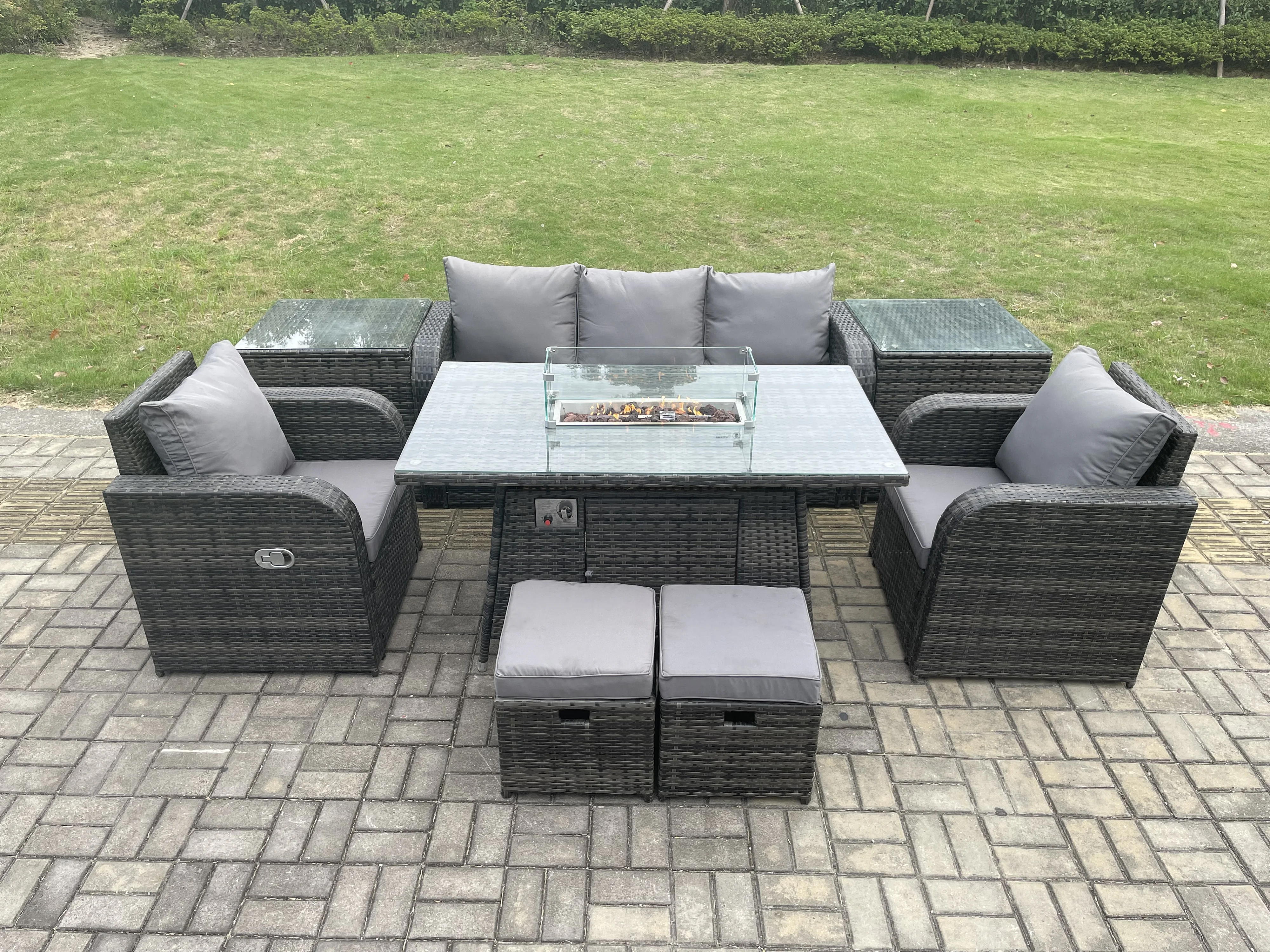 Polyrattan Gartenmöbel set Gas Feuerstelle Esstisch mit 2 Beistelltisch Sessel Fußhocker