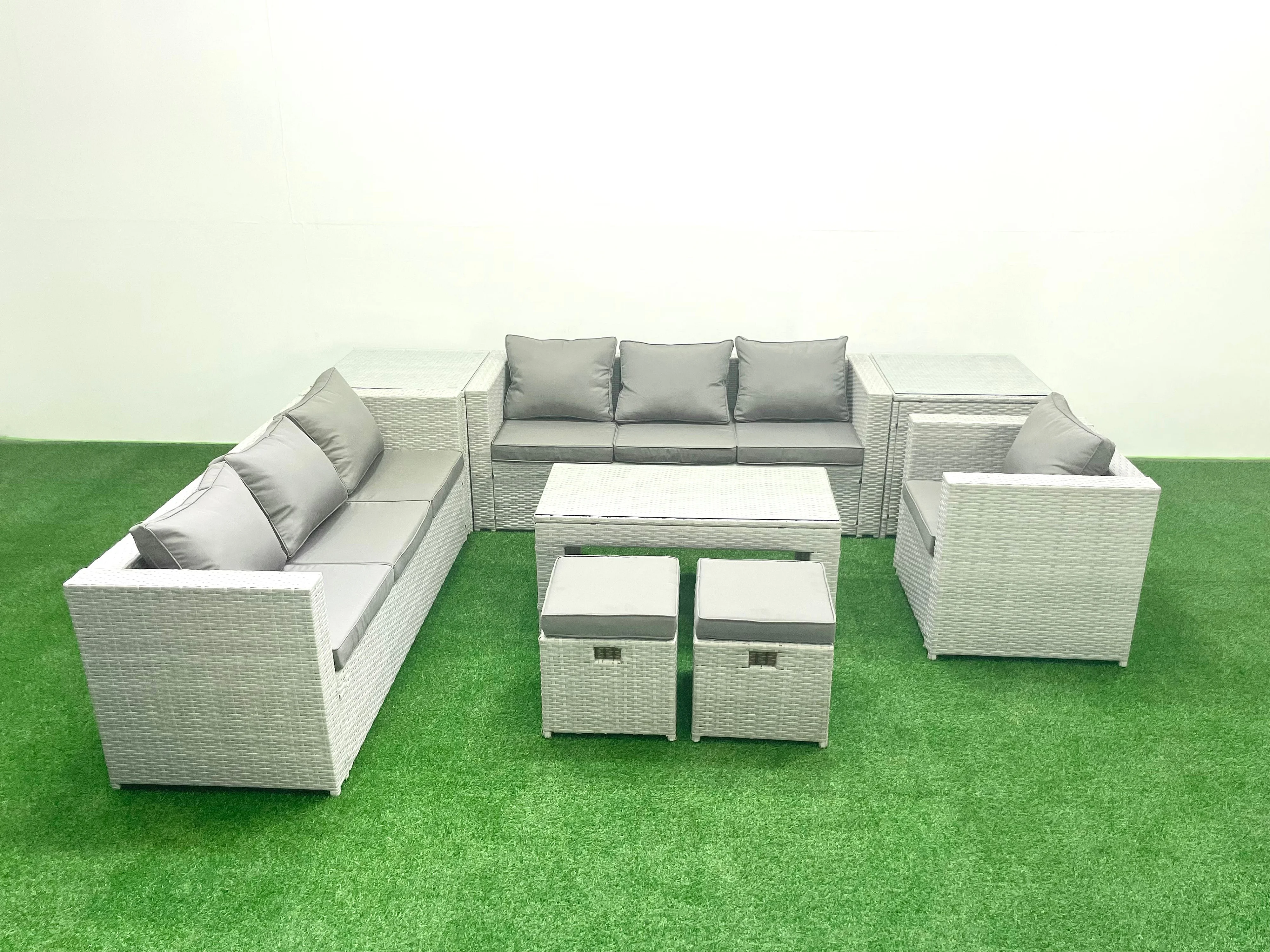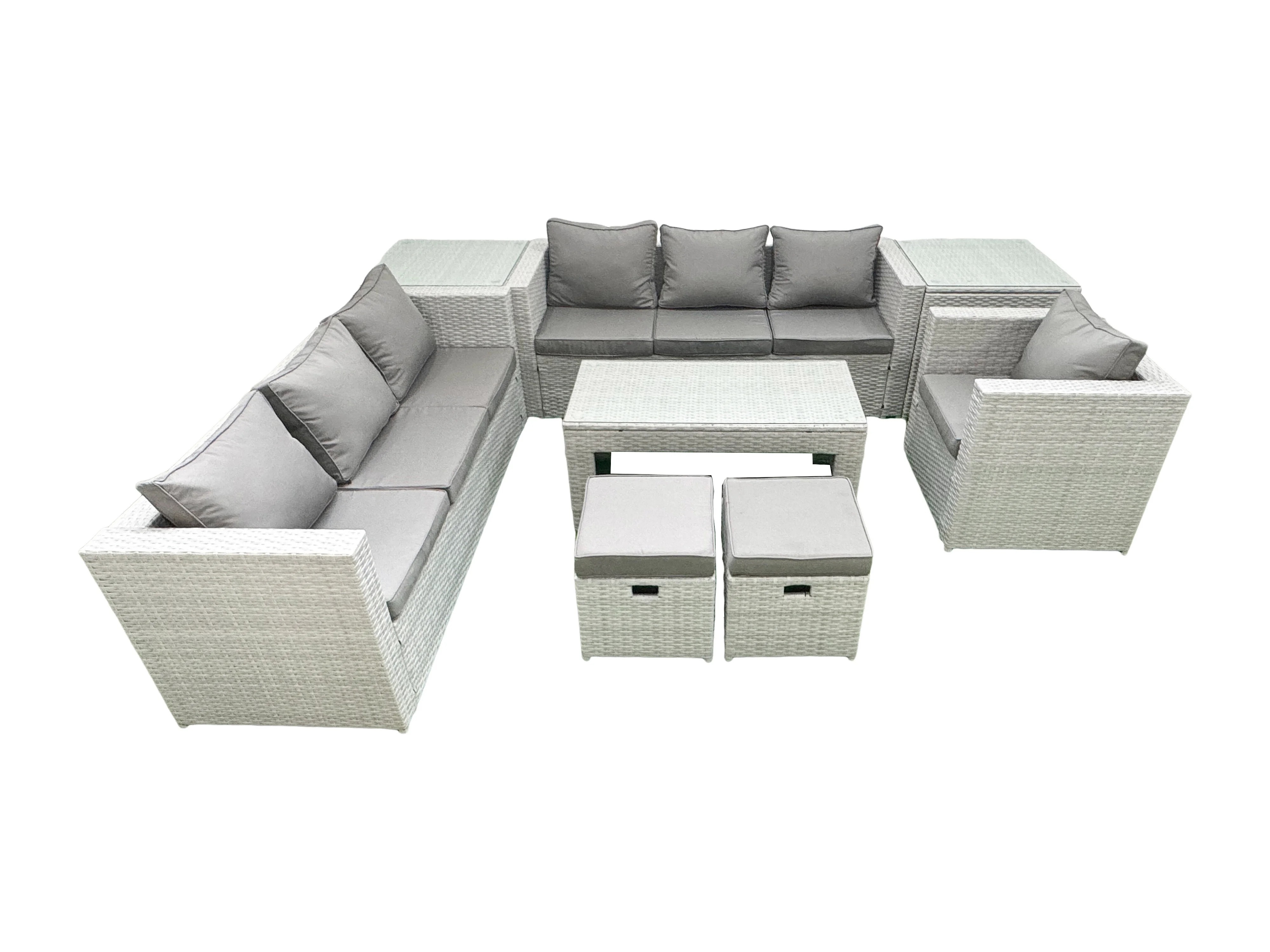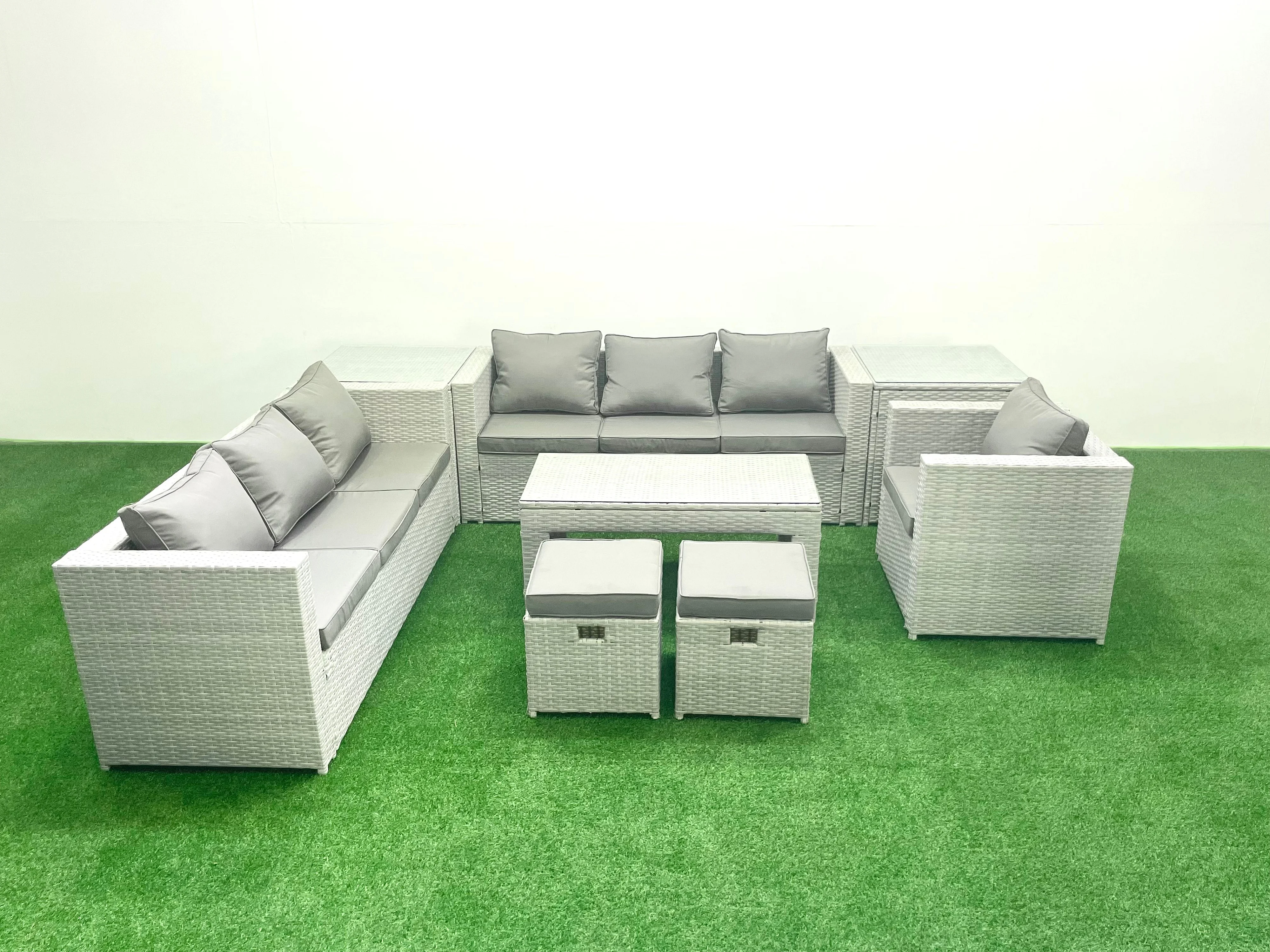 Polyrattan Gartenmöbel-Set im Freien mit Rechteckiger Couchtisch Sessel 2 kleine Fußhockern 2 Beistelltischen Hellgrau gemischt