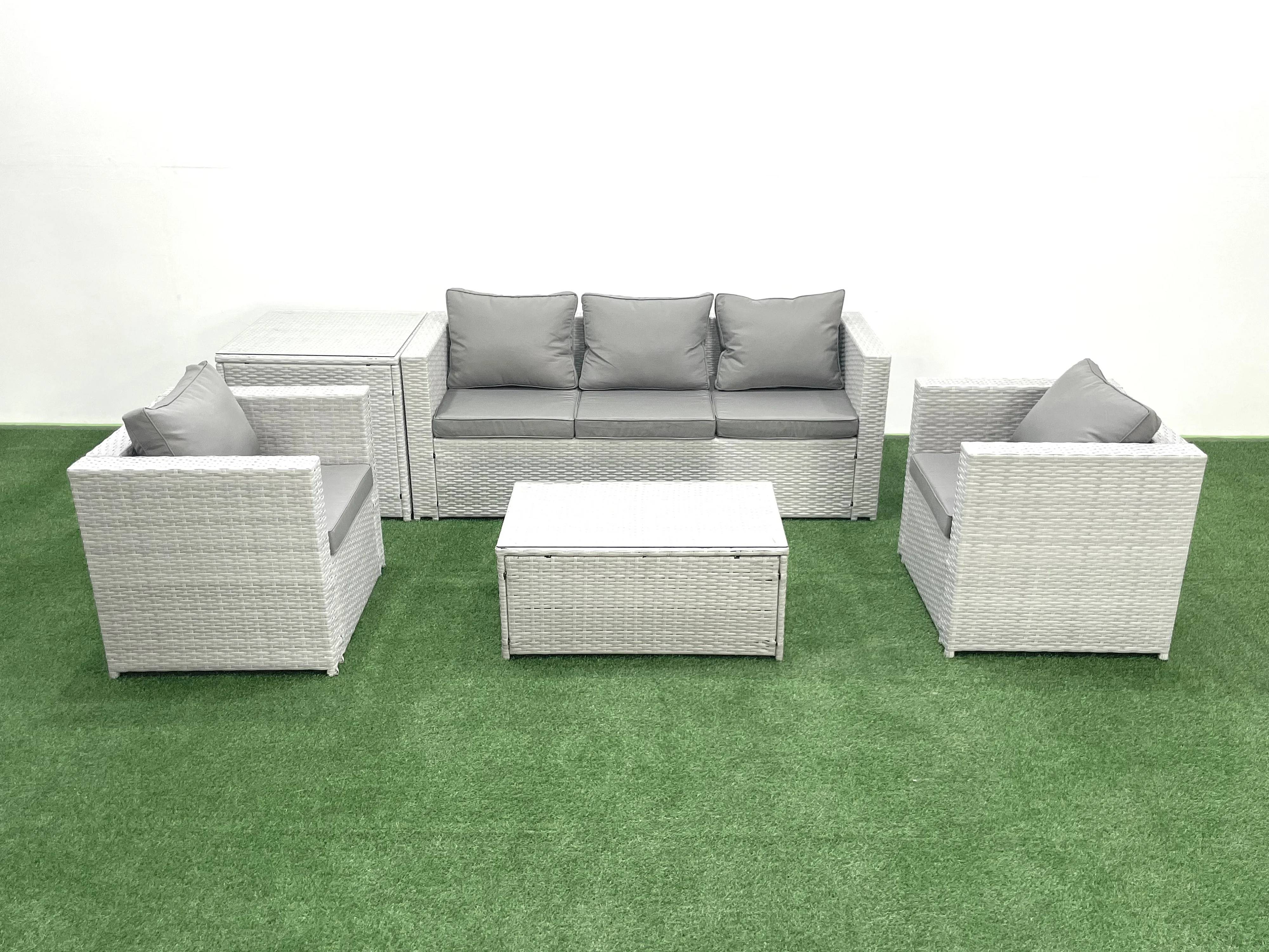 Polyrattan Gartenmöbel Set mit 3-Sitzer Sofa 2 Sesseln Rechteckiger Couchtisch Beistelltisch Hellgrau gemischt 5-Sitzer
