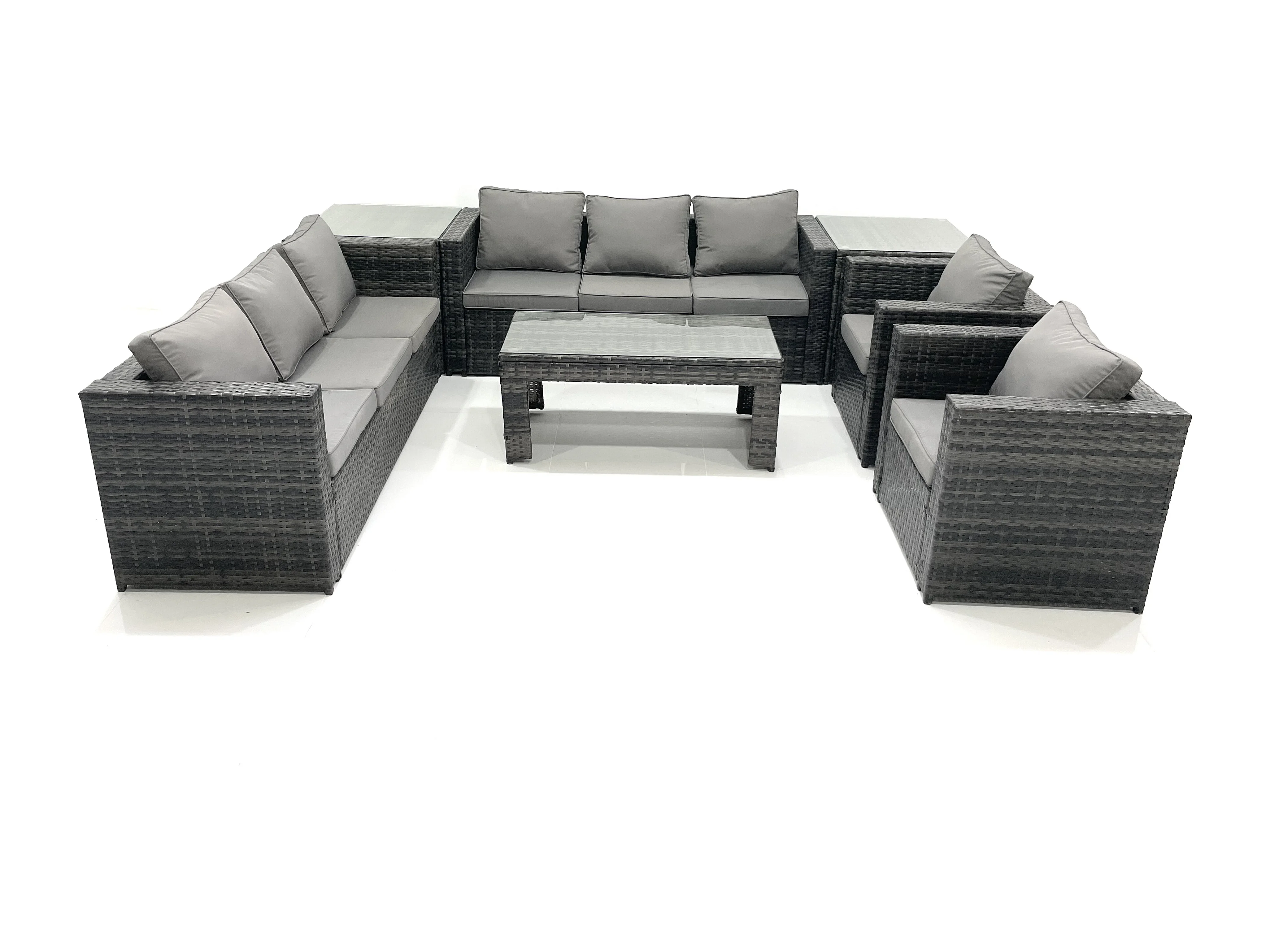 Polyrattan Gartenmöbel set mit Couchtisch Sessel 2 Beistelltischen Dunkelgrau Gemischt