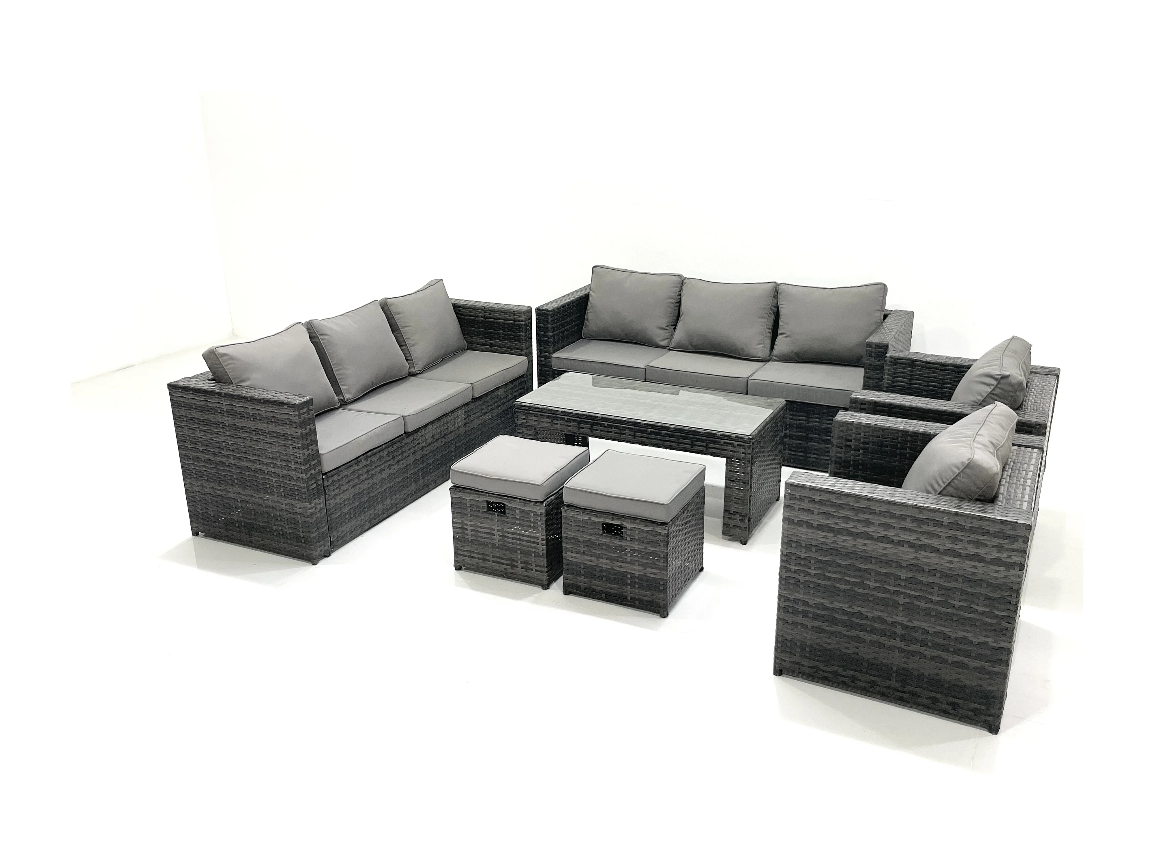 Polyrattan Gartenmöbel set mit Couchtisch Sessel 2 kleine Fußhockern Dunkelgrau Gemischt
