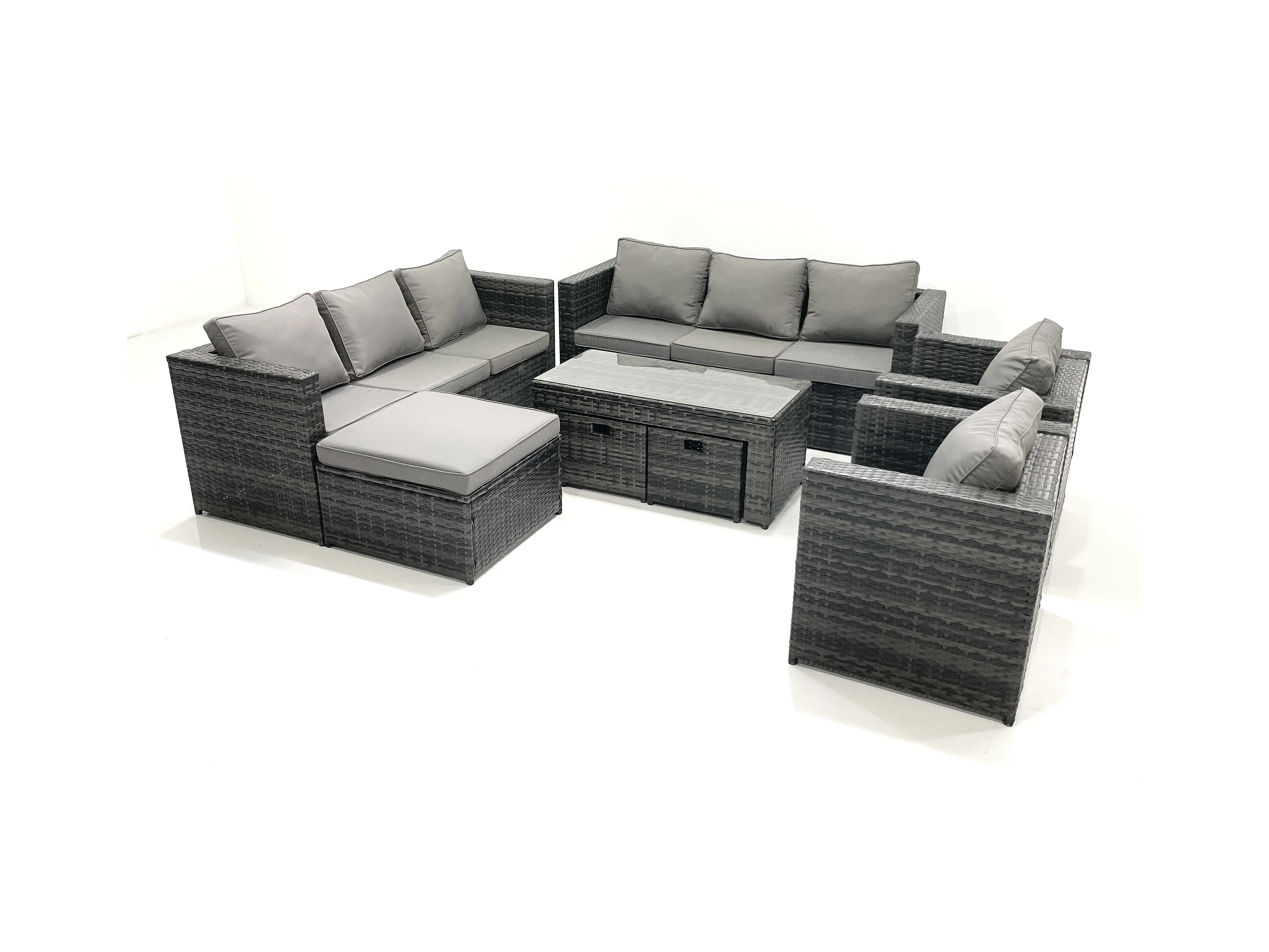 Polyrattan Gartenmöbel set mit Couchtisch Sessel 3 Hockern Dunkelgrau Gemischt