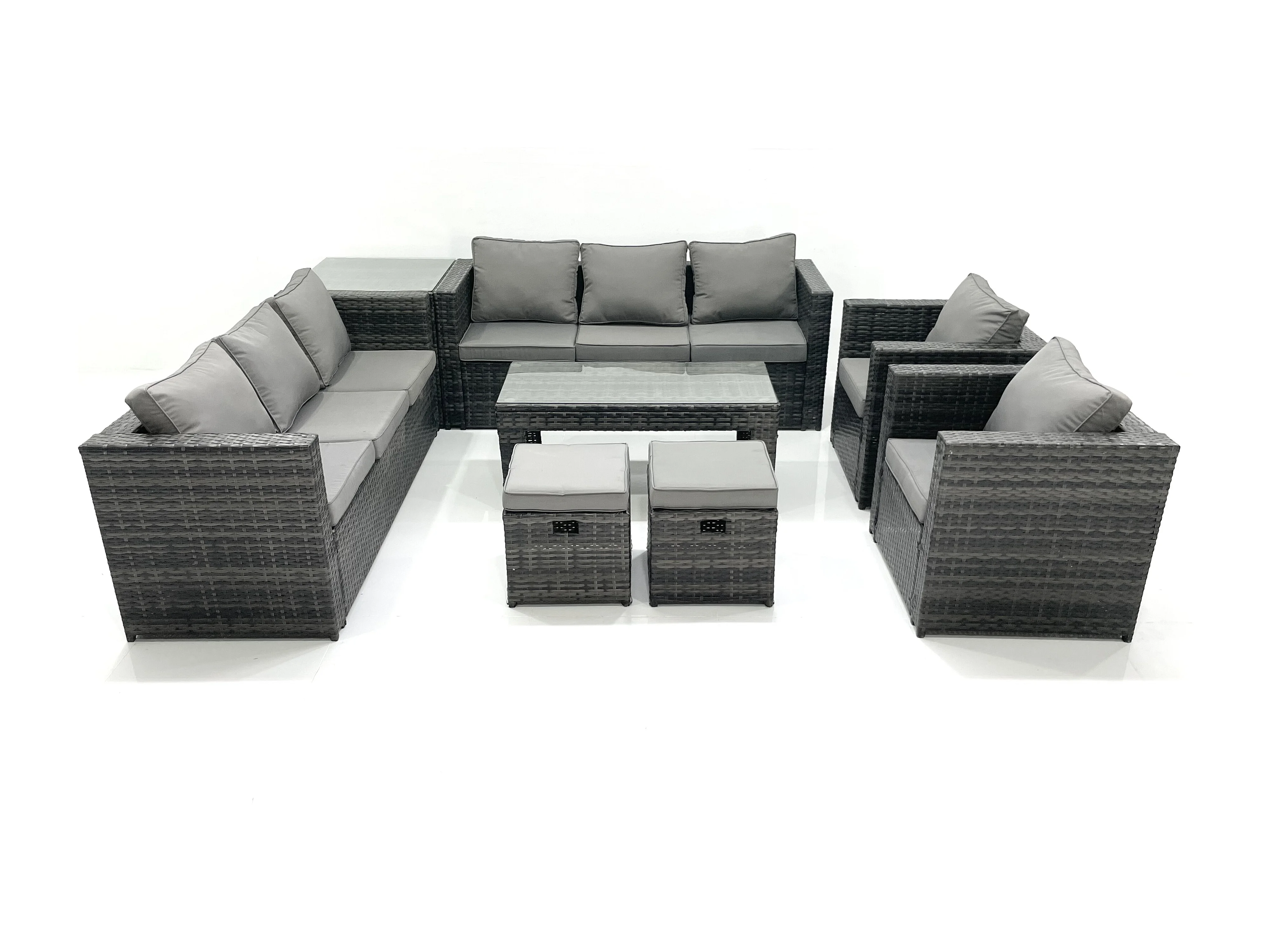 Polyrattan Gartenmöbel set mit Couchtisch Sessel Beistelltisch 2 kleine Fußhockern Dunkelgrau Gemischt