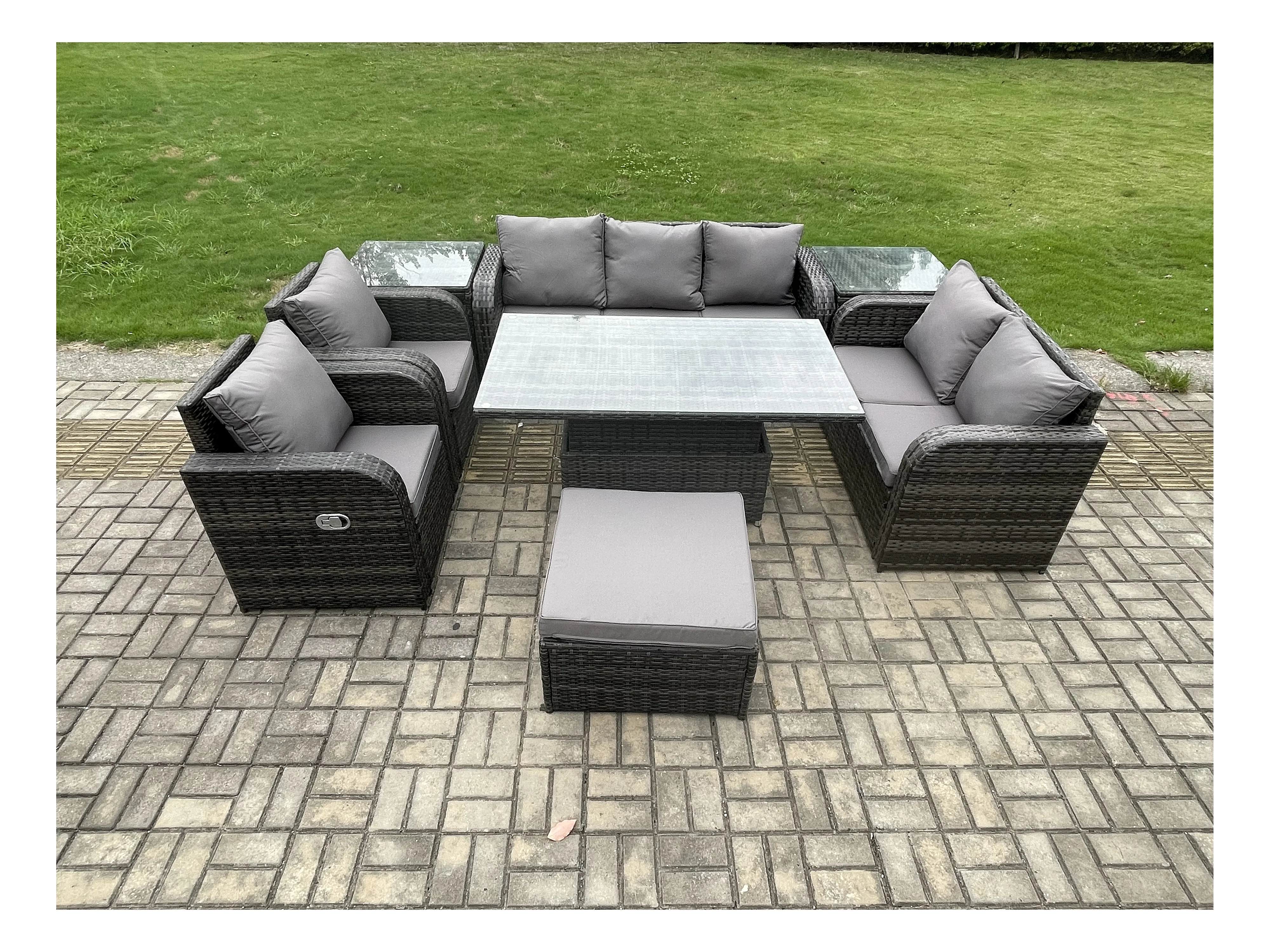 Polyrattan Gartenmöbel Set mit Einstellbare Höhe Esstisch 2 Liegestuhl Liebes-Sofa Hocker Beistelltisch
