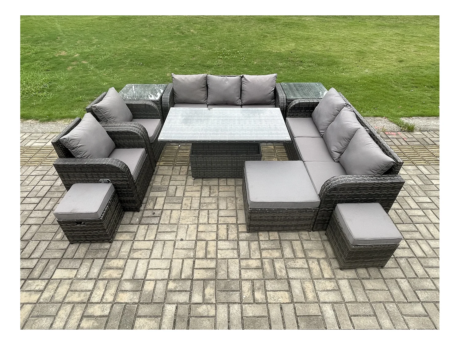 Polyrattan Gartenmöbel Set mit Einstellbare Höhe Esstisch 2 Liegestuhl sofa 3 Hocker 2 Beistelltisch