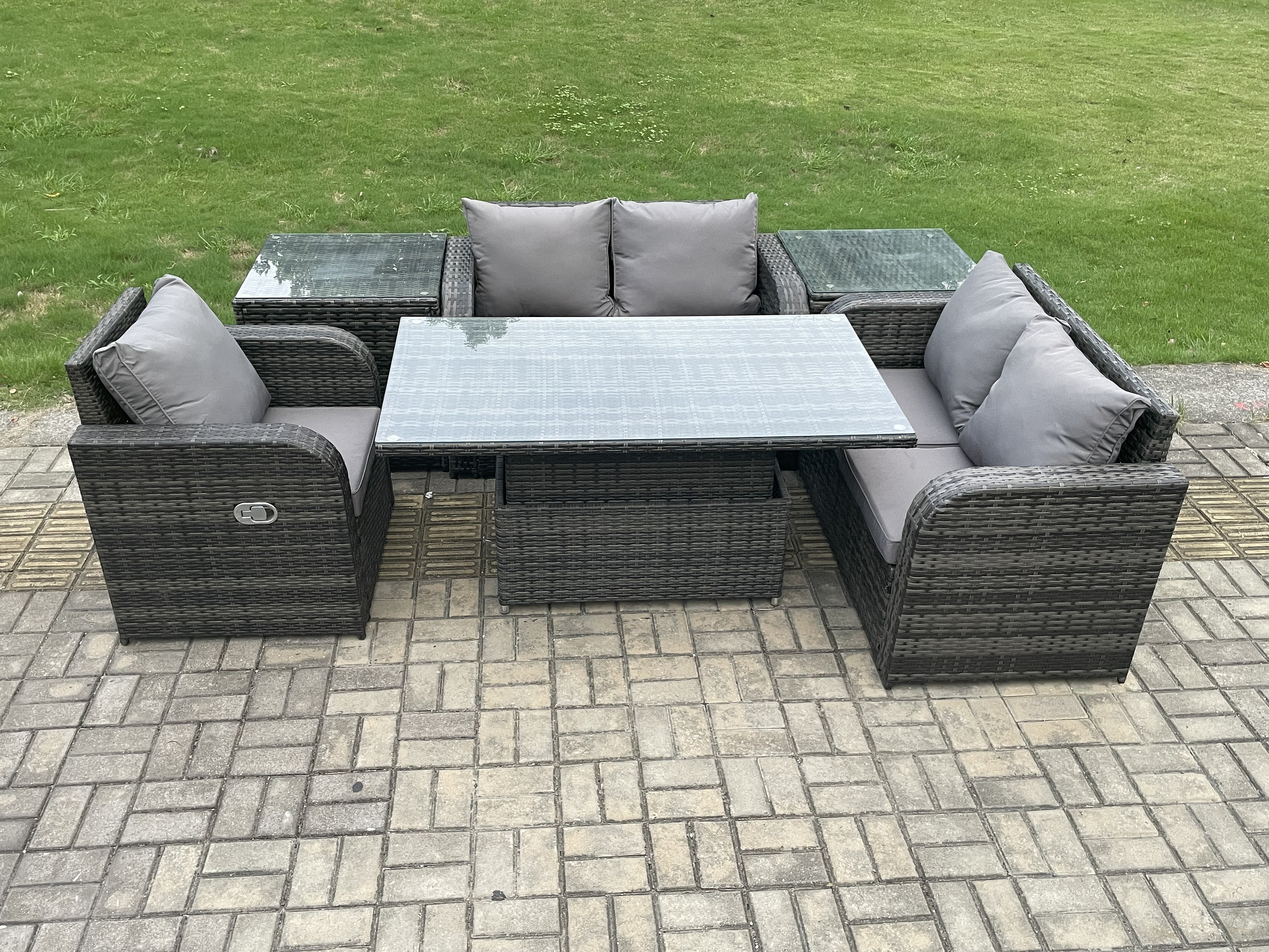 Polyrattan Gartenmöbel Set mit Esstisch 5-Sitzer Dunkelgrau