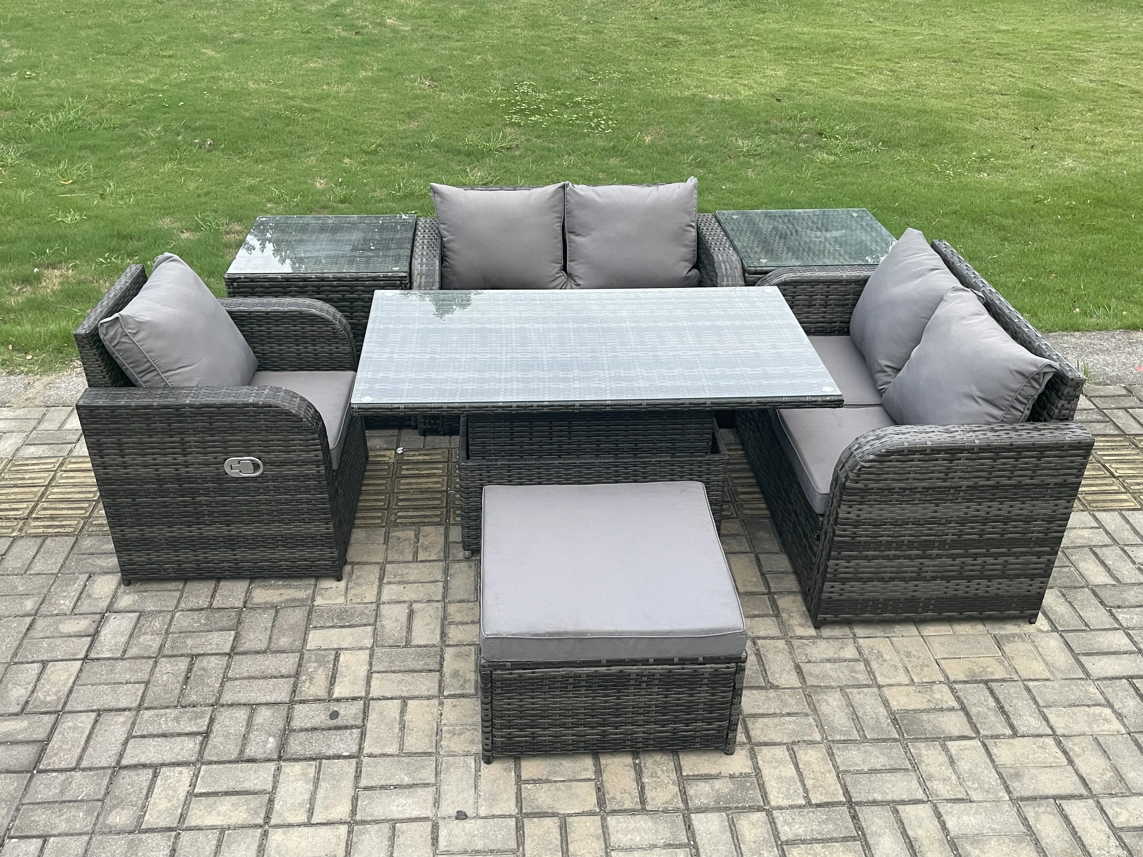 Polyrattan Gartenmöbel Set mit Esstisch 6-Sitzer Dunkelgrau