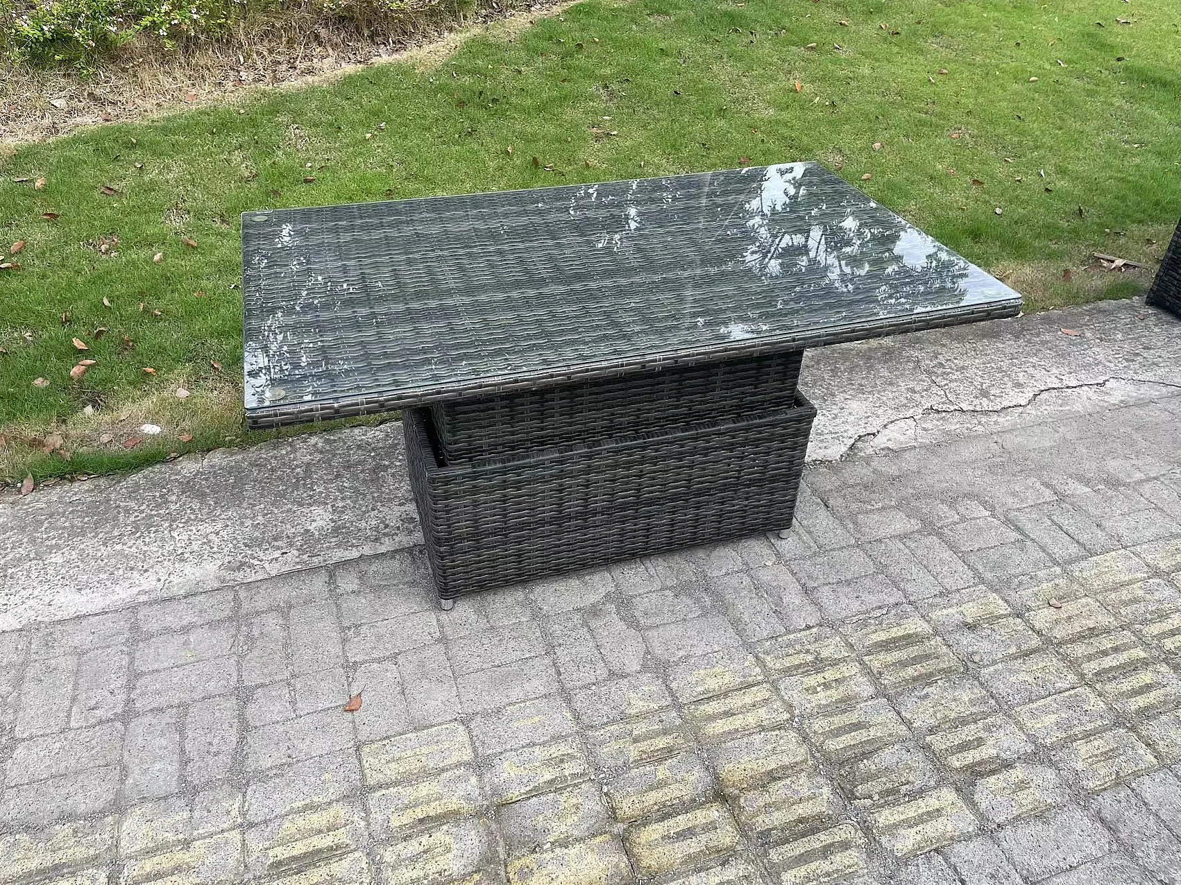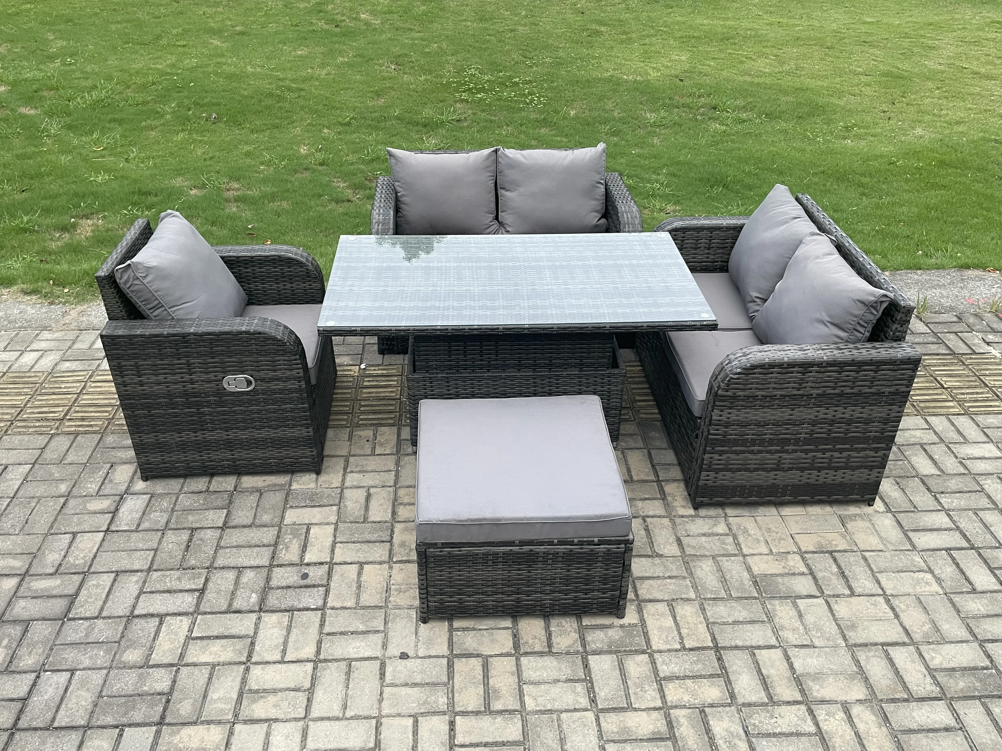 Polyrattan Gartenmöbel Set mit Esstisch Hocker 6-Sitzer