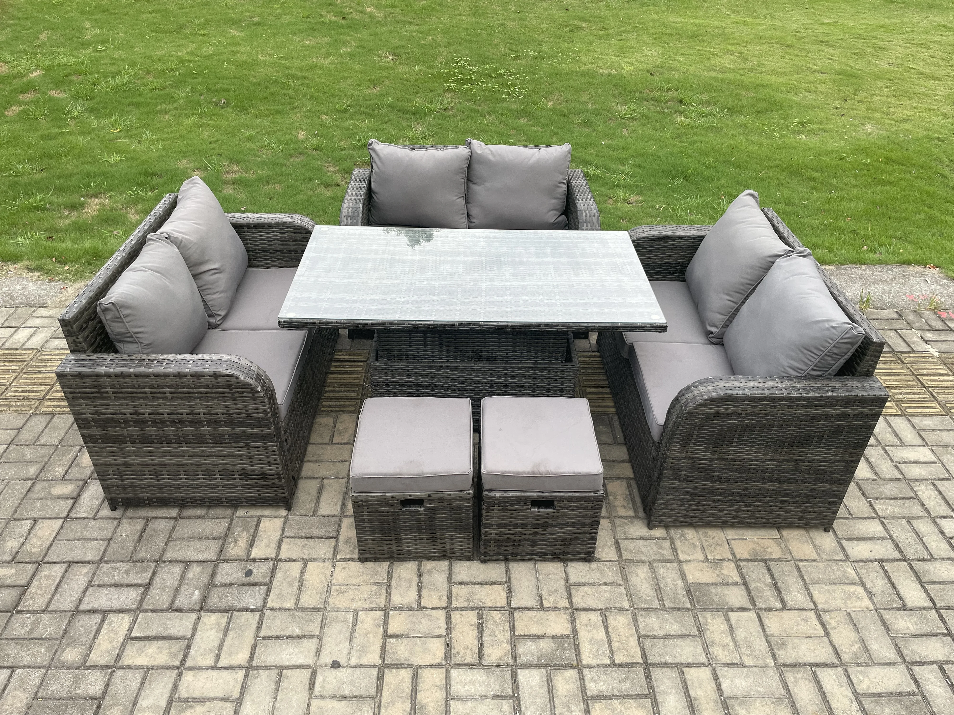 Polyrattan Gartenmöbel Set mit Esstisch Hocker 8-Sitzer