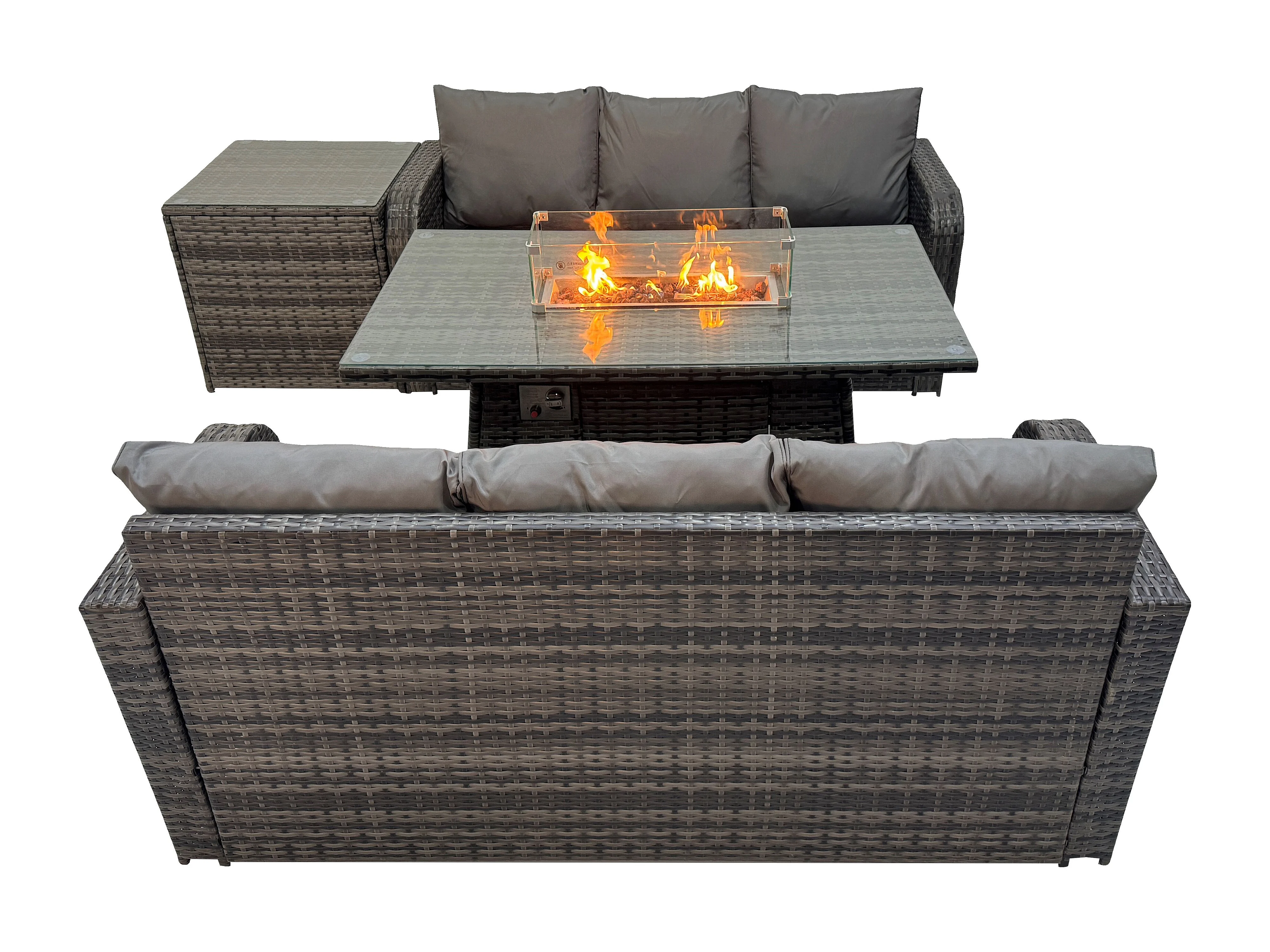 Polyrattan Gartenmöbel Set mit Gasfeuerstelle Esstisch 4 Stücke Dunkelgrau Gemischt