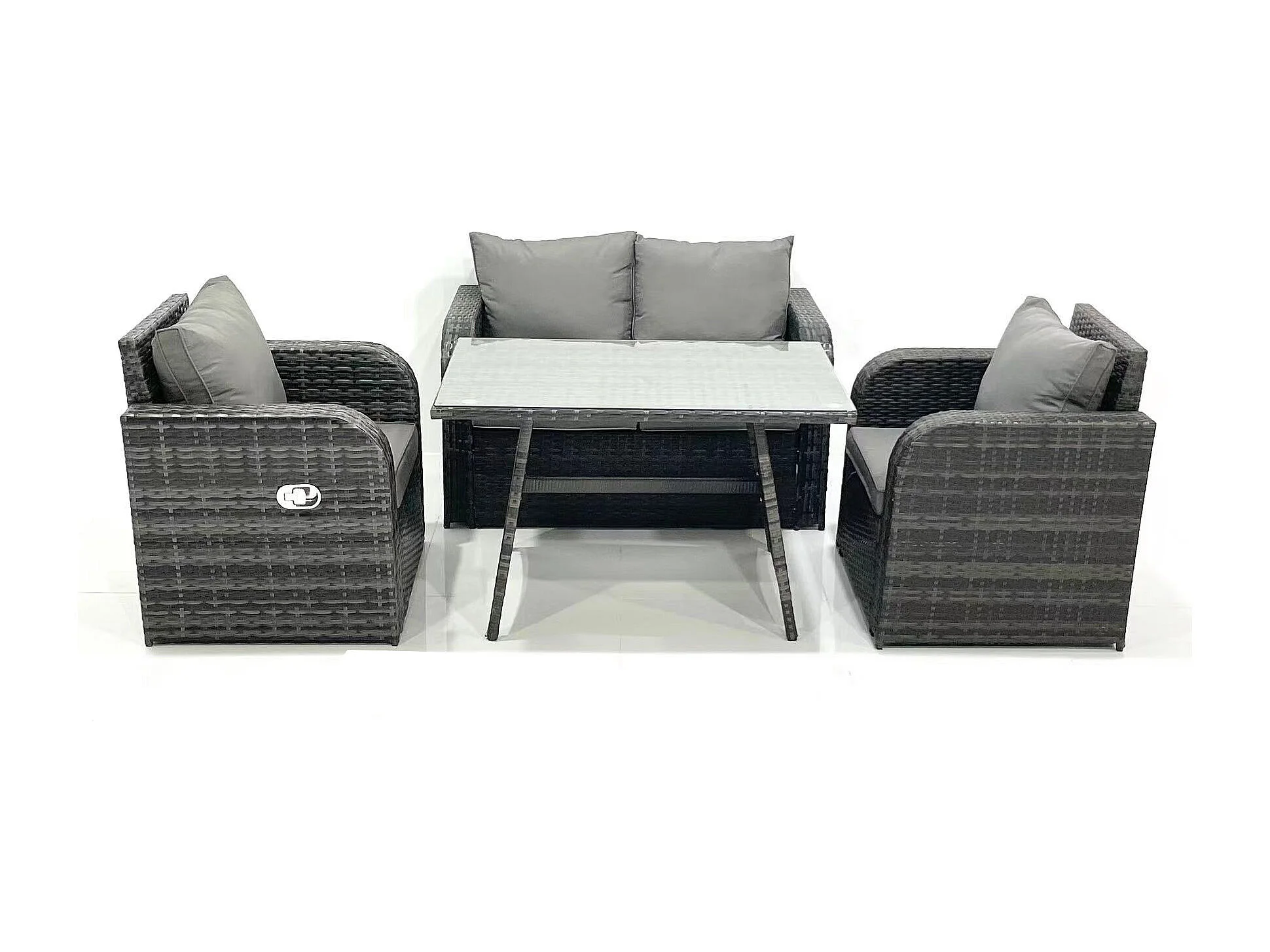Polyrattan Gartenmöbel Set mit Liegestühle 2-Sitzer Sofa Rechteckiger Esstisch