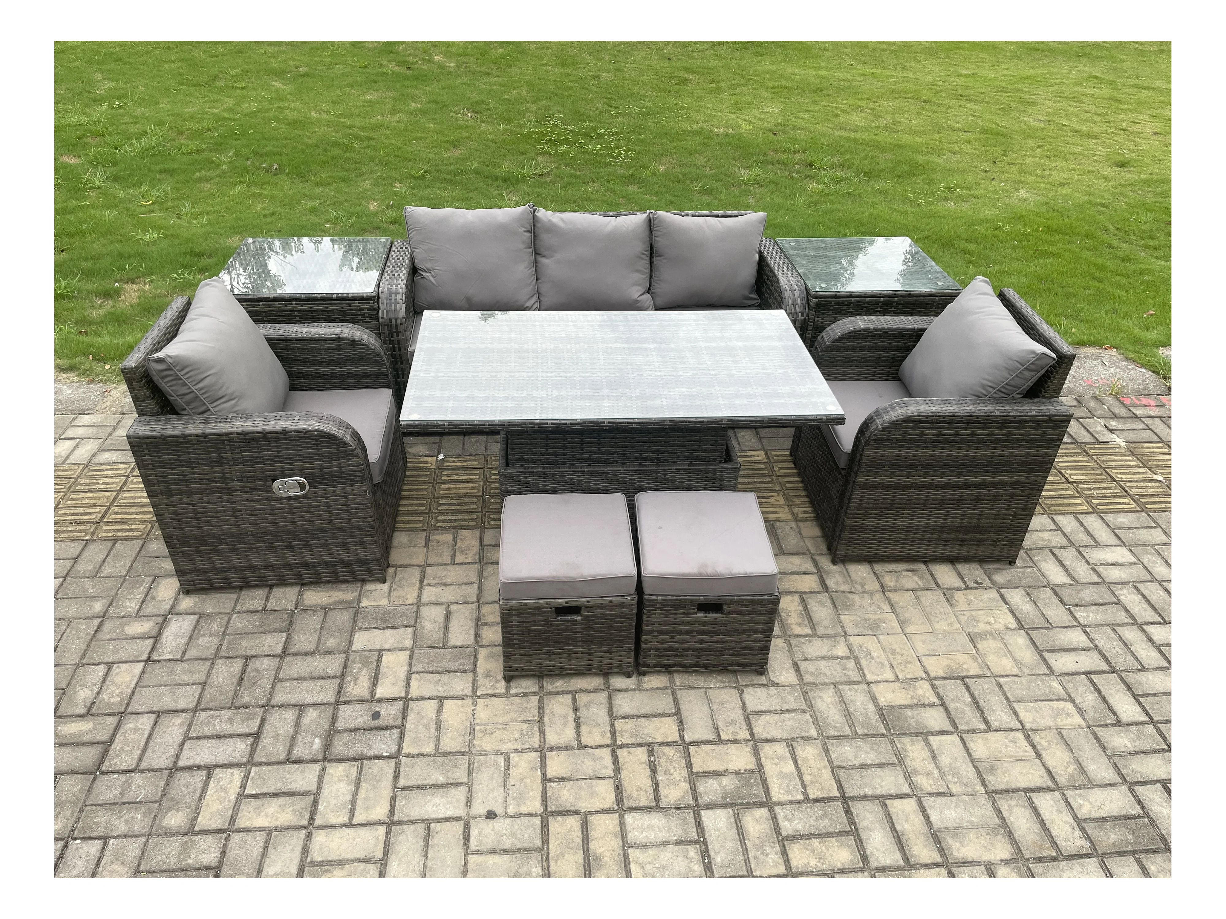 Polyrattan Gartenmöbel Set mit sofa Einstellbare Höhe Esstisch 2 Hocker Liegestuhl Dunkelgrau gemischt