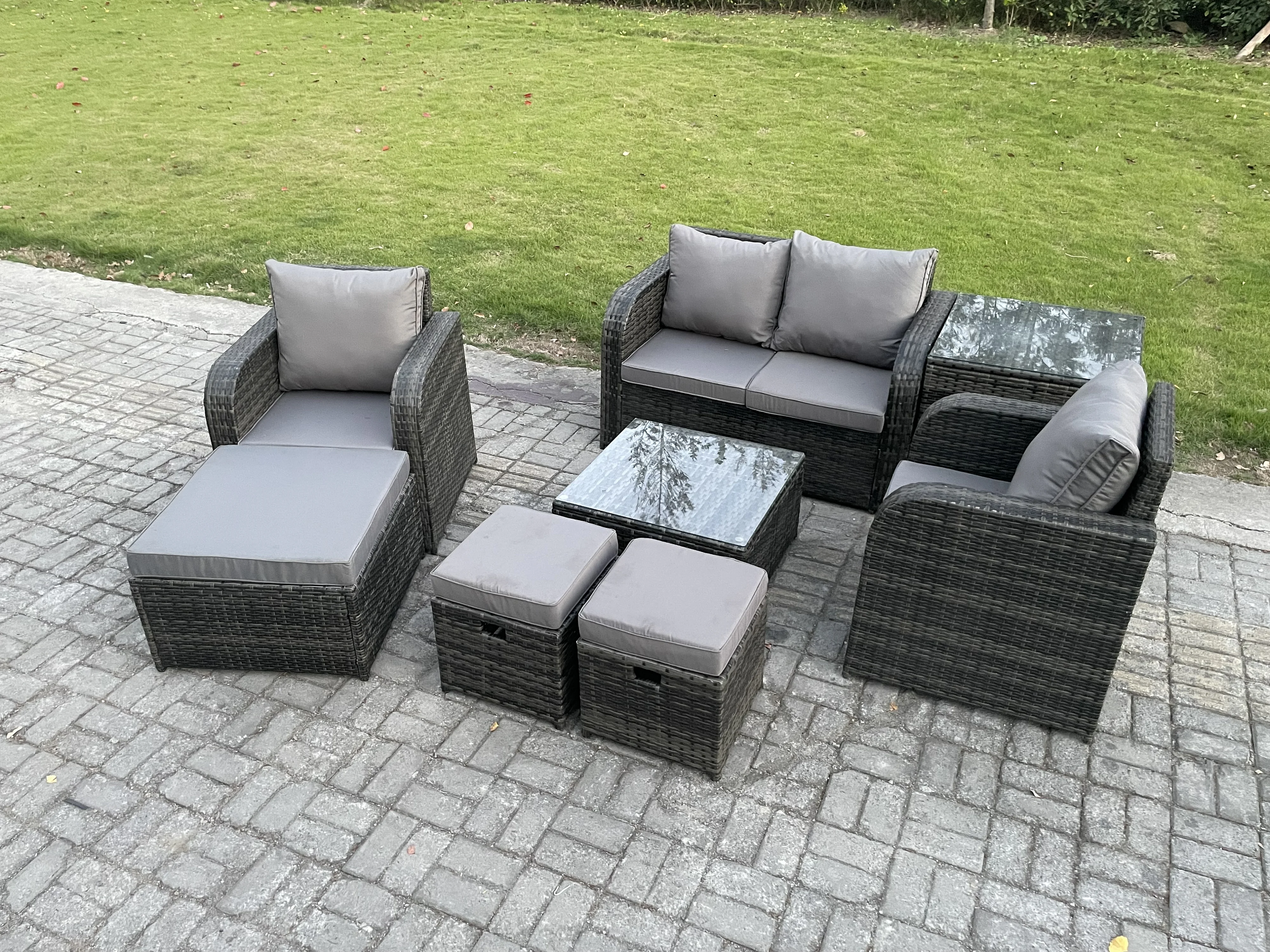 Polyrattan Gartenmöbel Set Sitzgruppe Terrasse 7-Sitzer Dunkelgrau