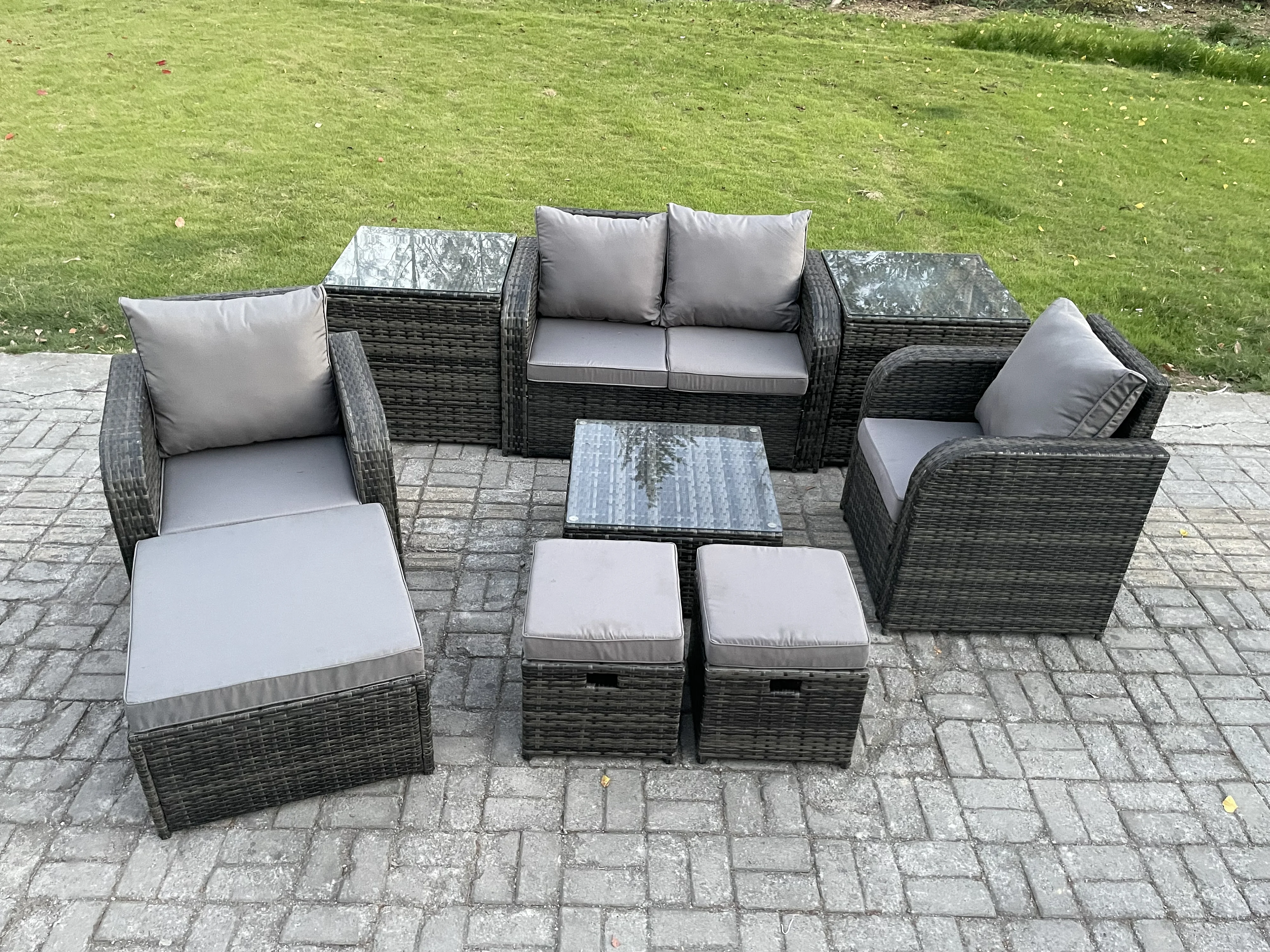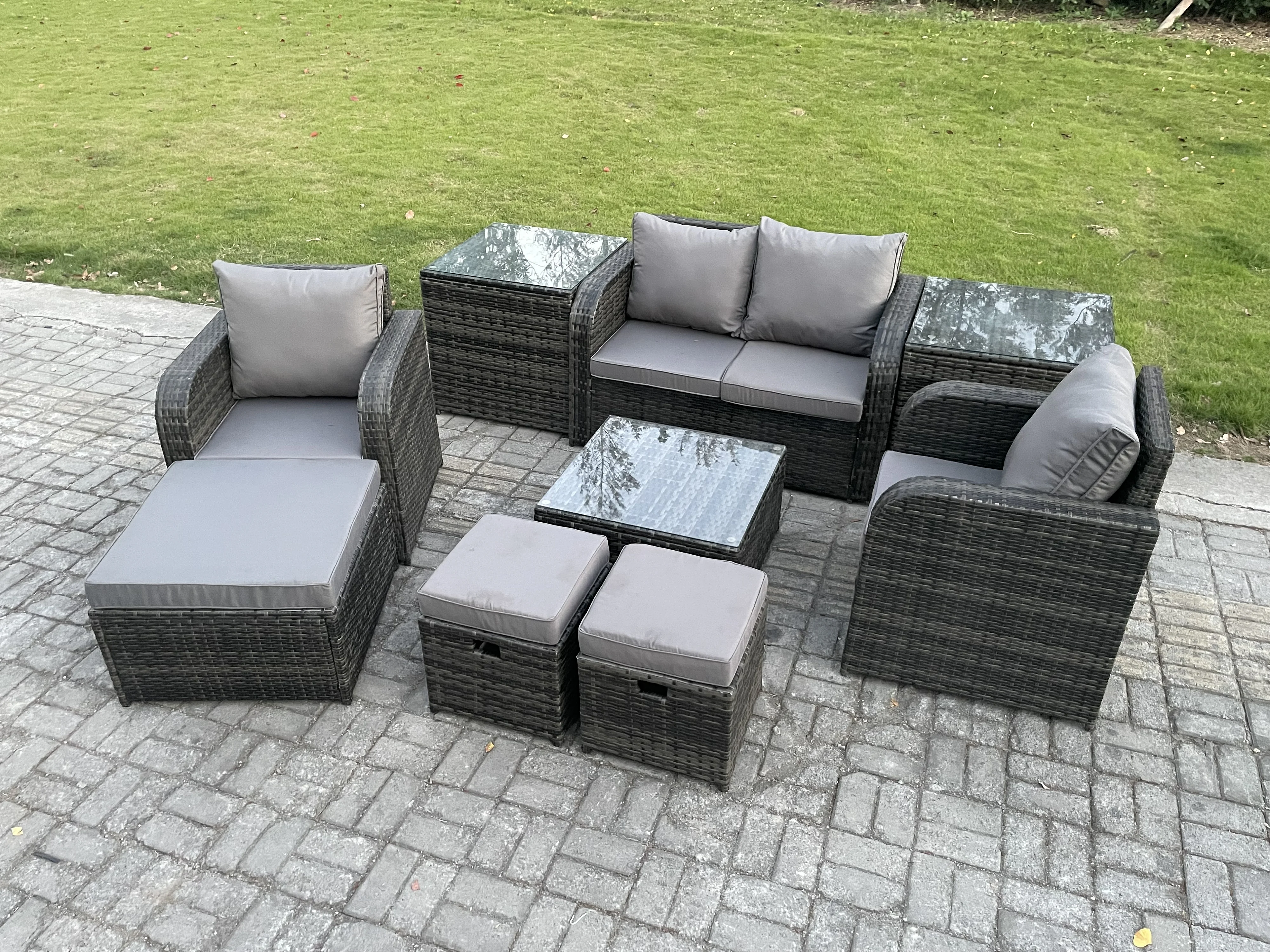 Polyrattan Gartenmöbel Set Sitzgruppe Terrasse Dunkelgrau 7-Sitzer