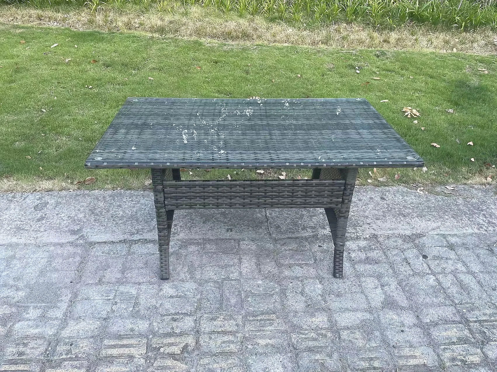 Polyrattan Gartenmöbel Set Terrassen Rattan Rechteckiger Esstisch Lounge Sofa mit Großer Fußhocker 7 Sitzer Dunkelgrau gemischt