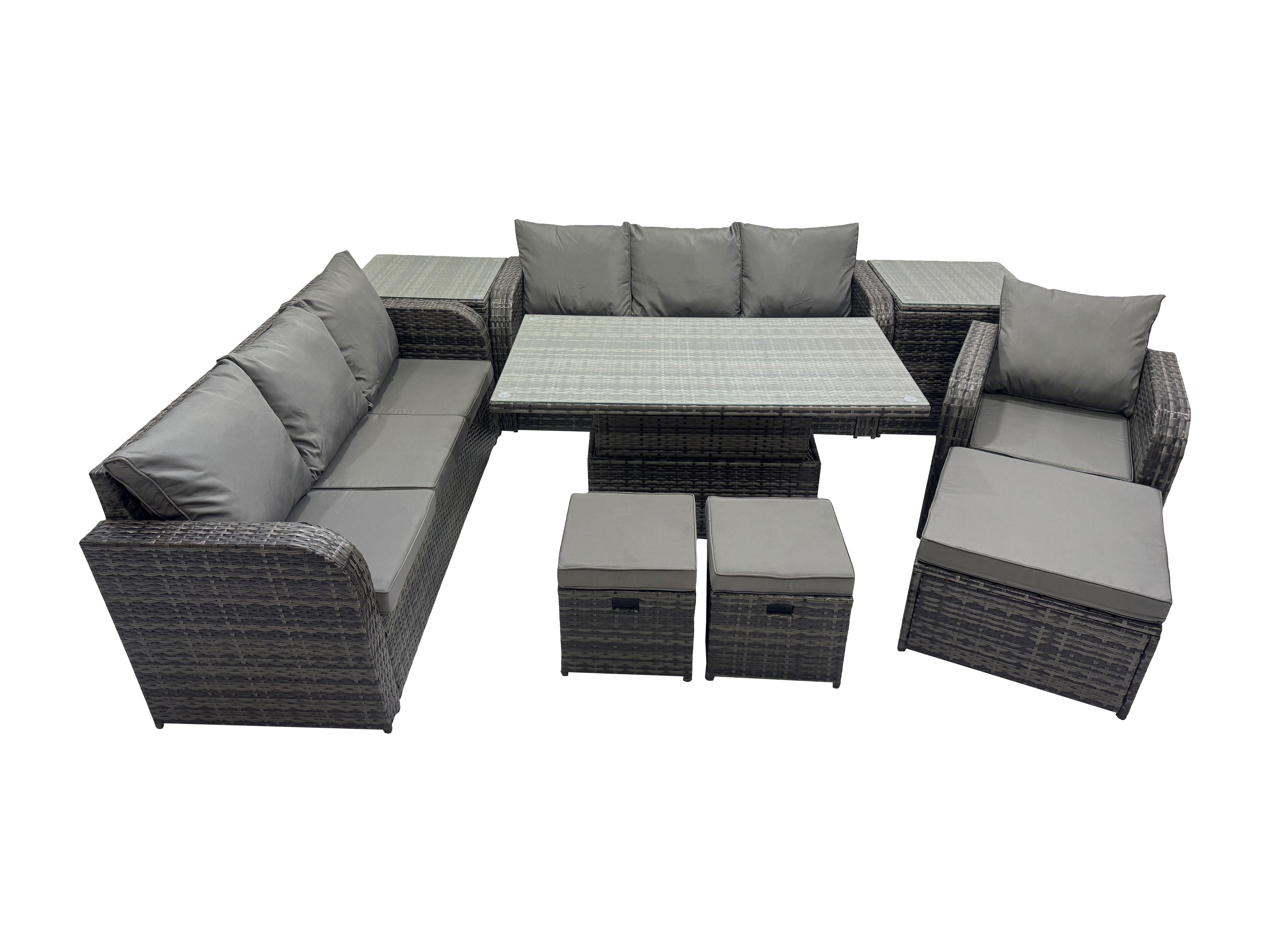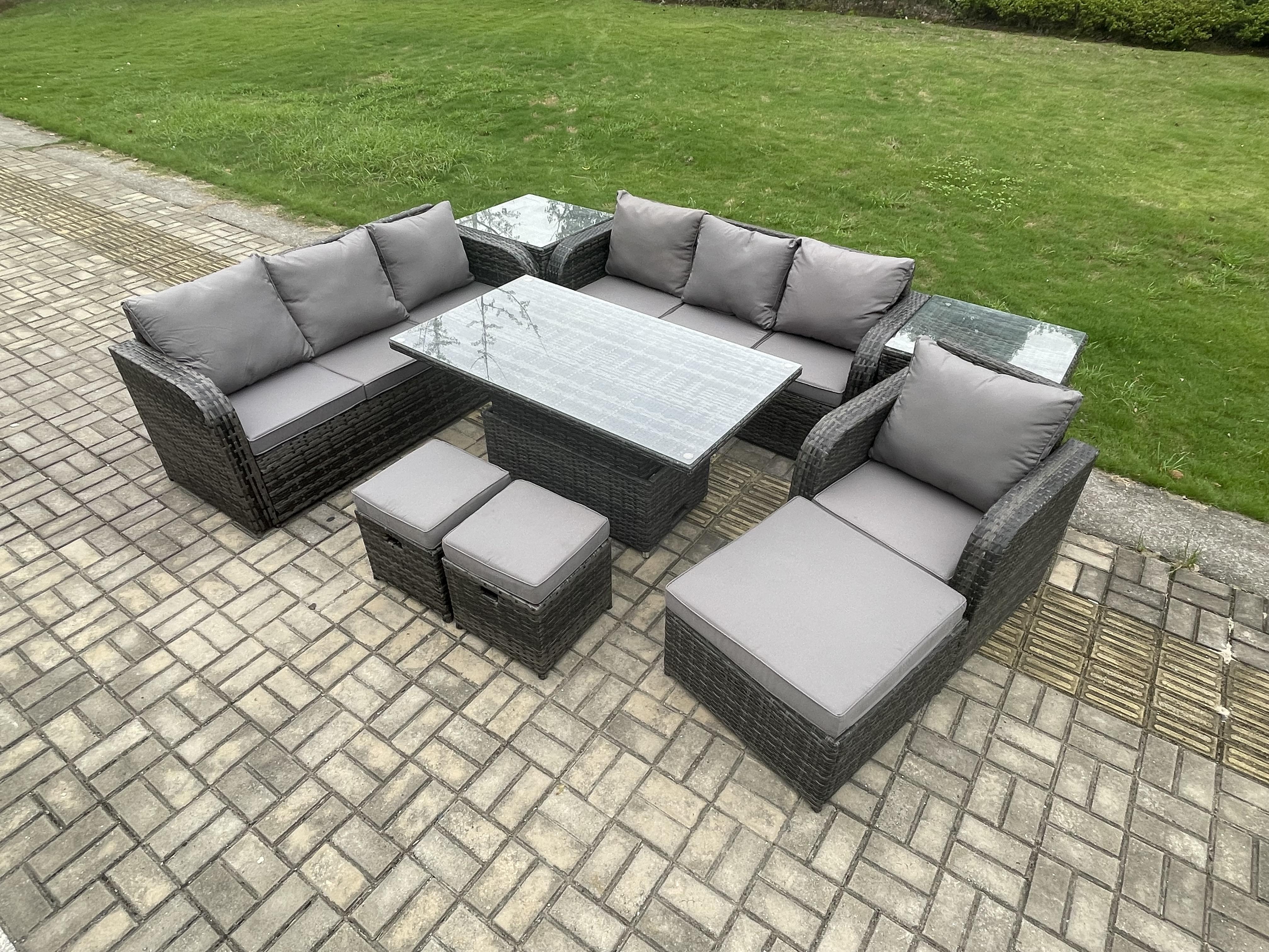 Polyrattan Gartenmöbel-Sets höhenverstellbarer Tisch Sofa Set mit 2 Beistelltischen Liegestühle 3 Hockern