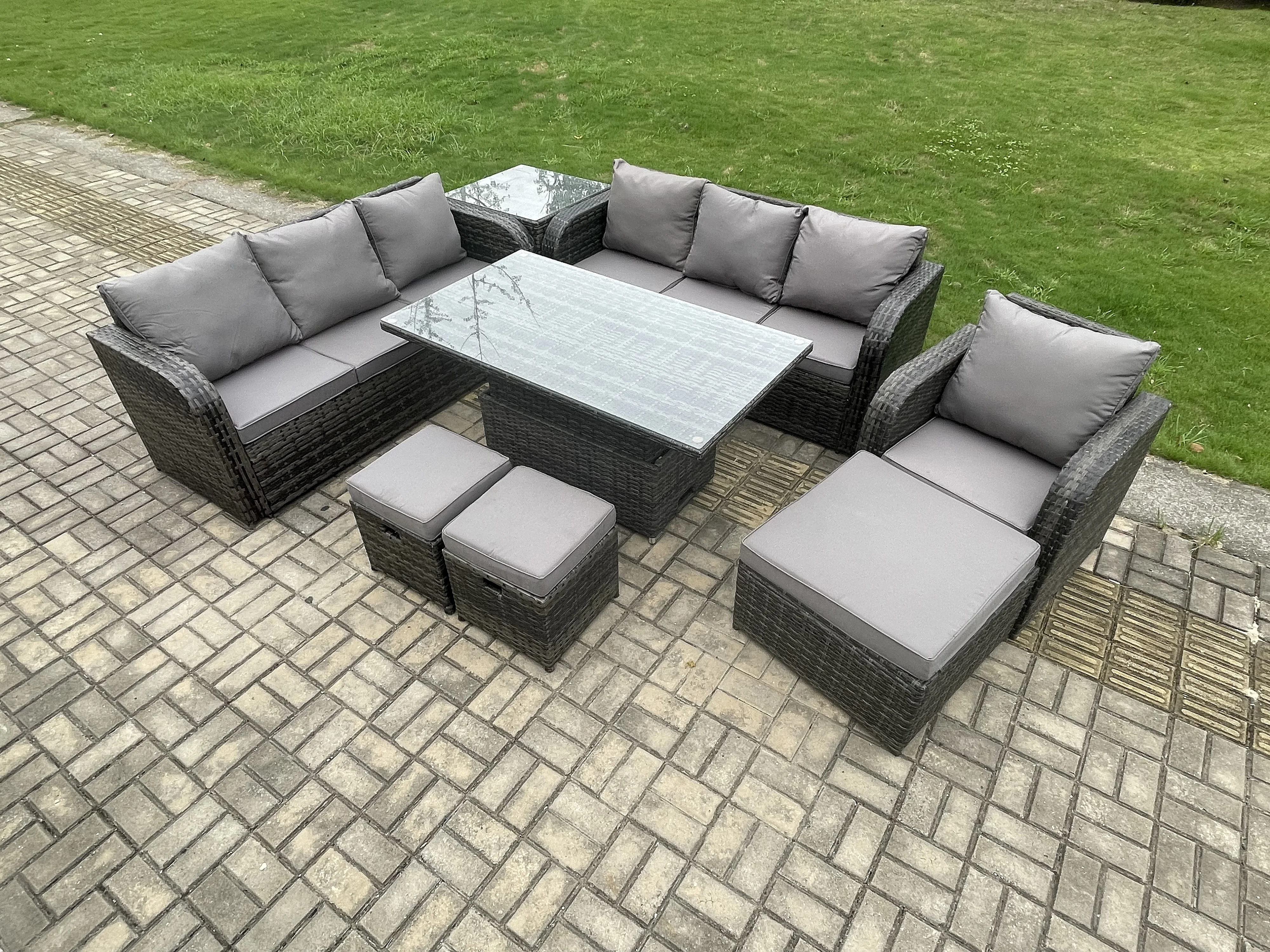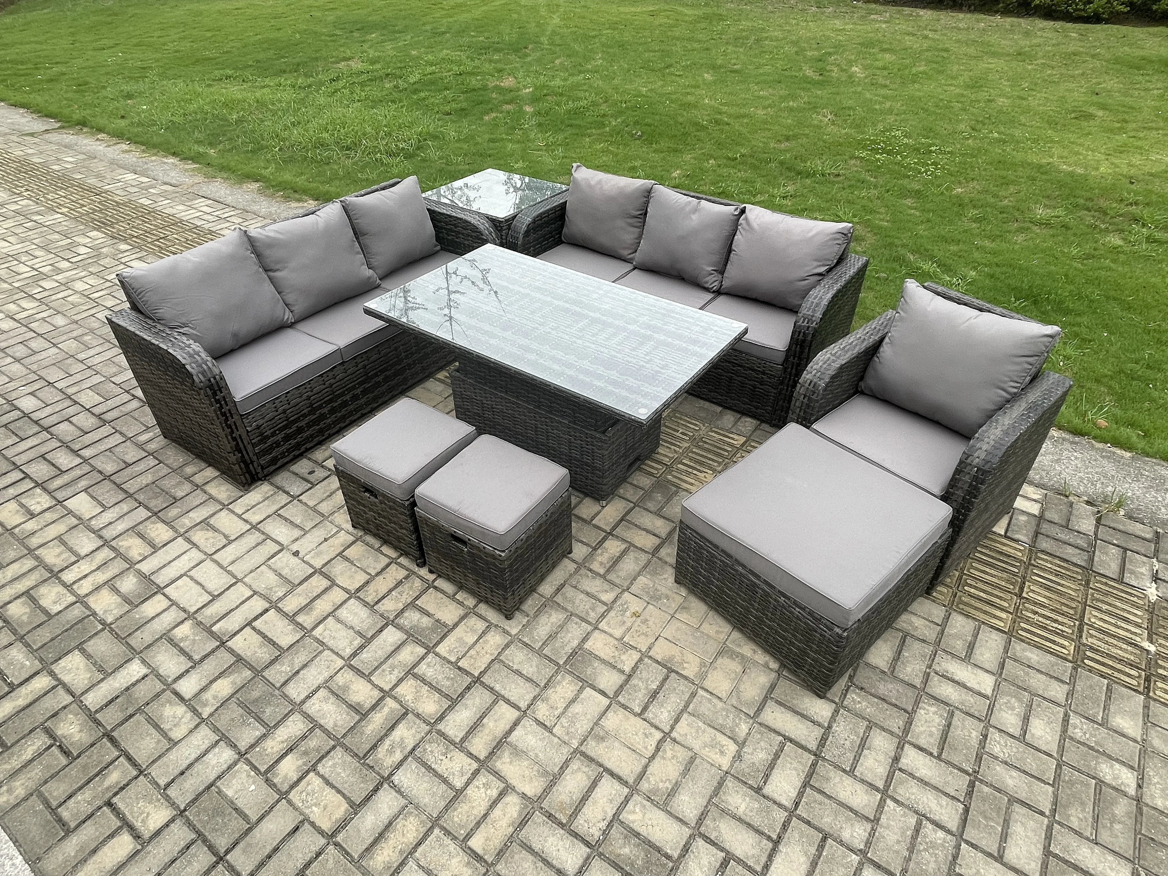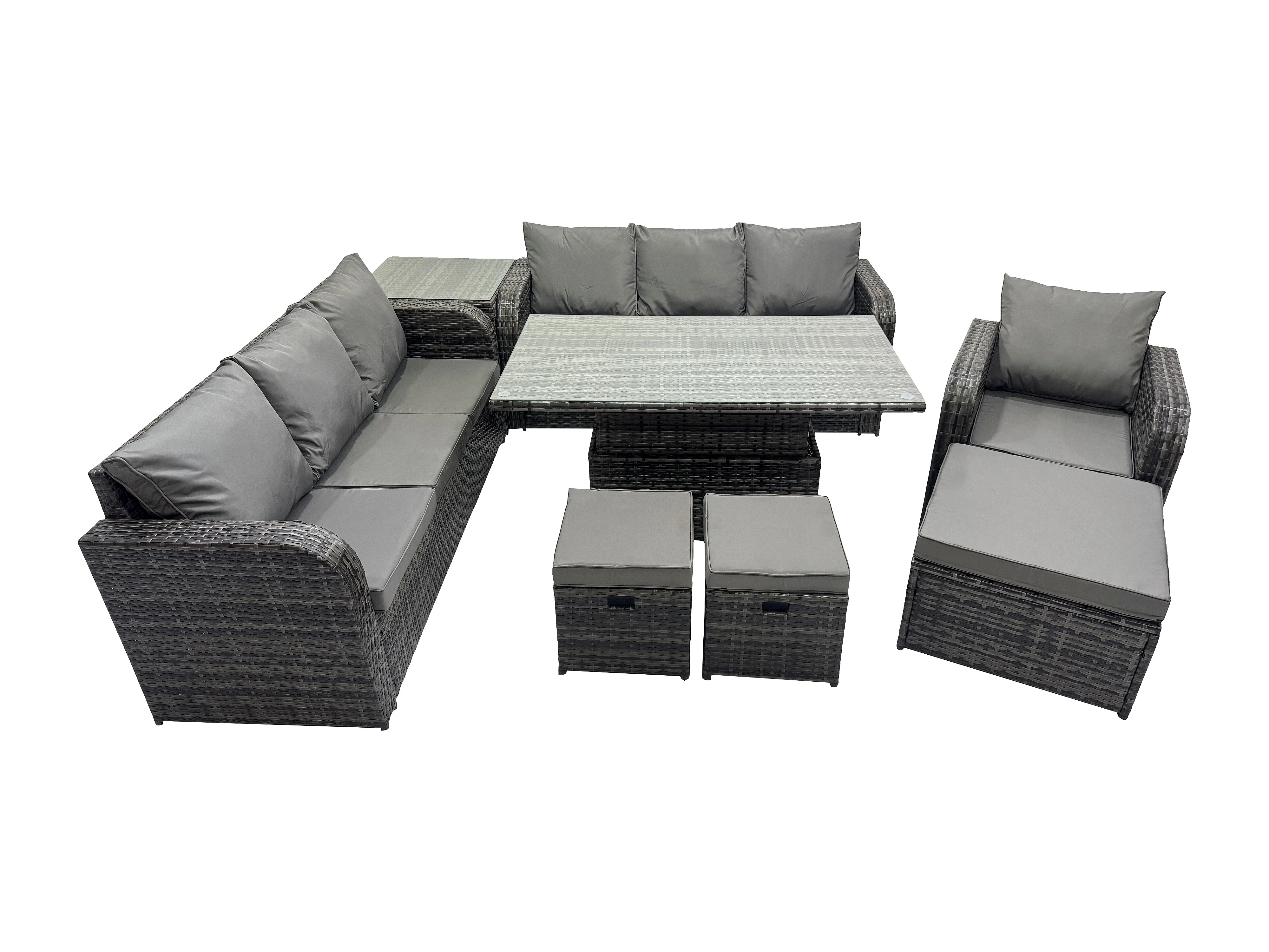 Polyrattan Gartenmöbel-Sets höhenverstellbarer Tisch Sofa Set mit Beistelltisch Liegestühle 3 Hockern Dunkelgrau Gemischt