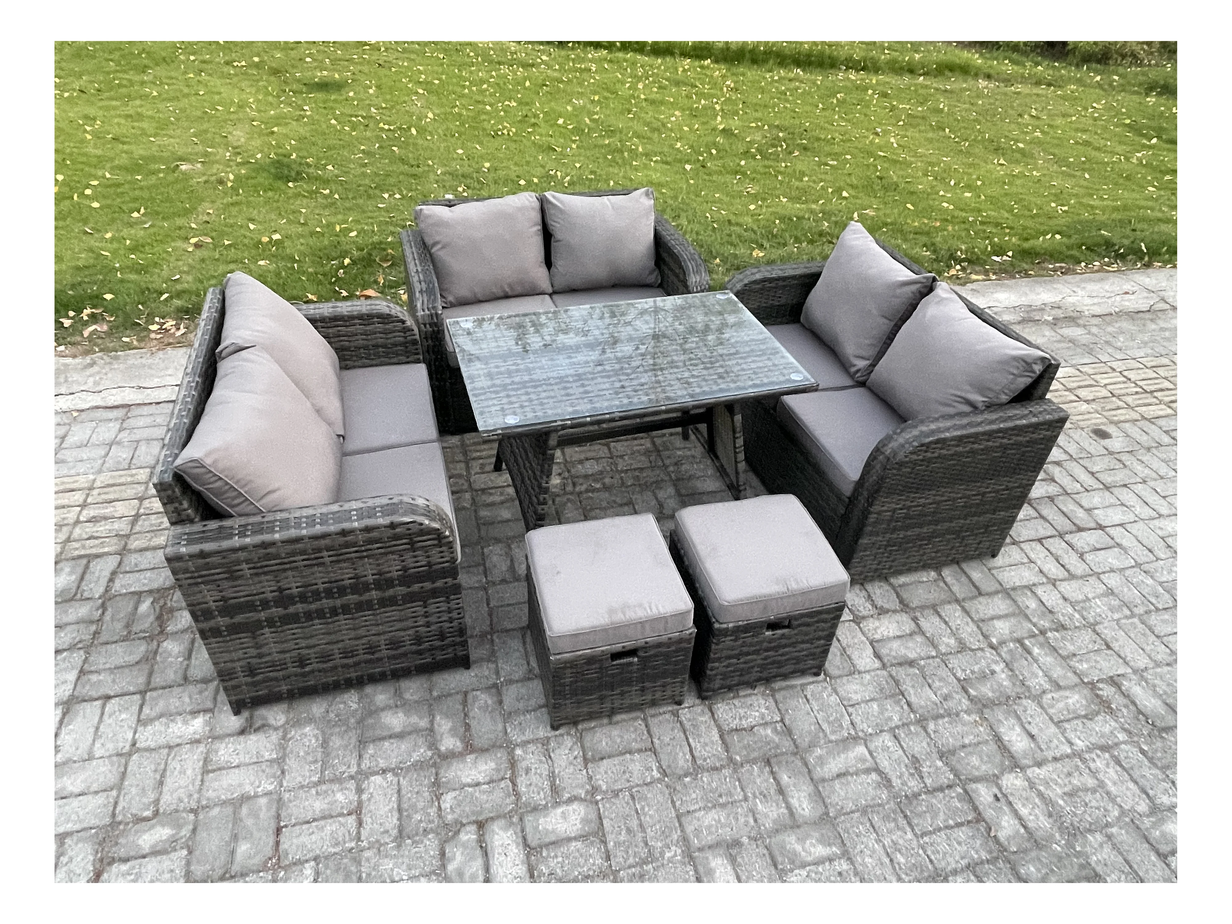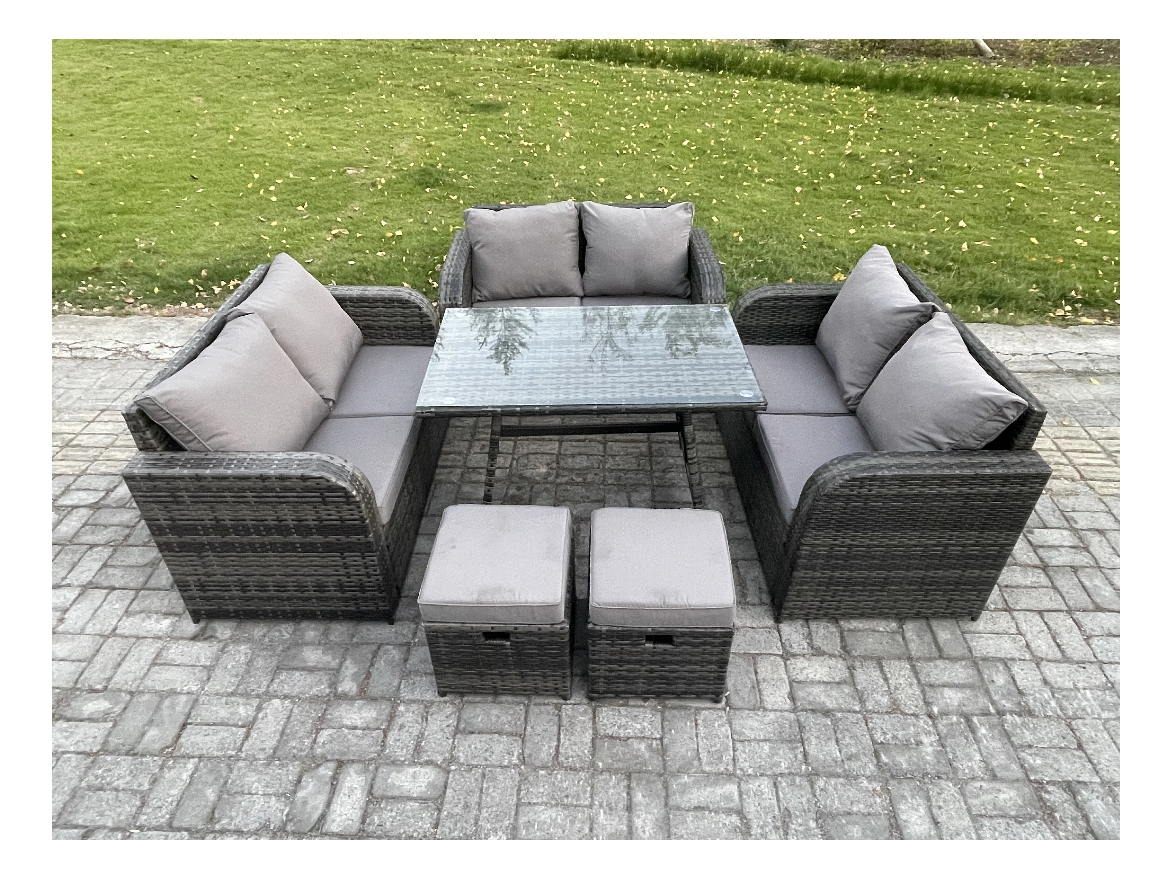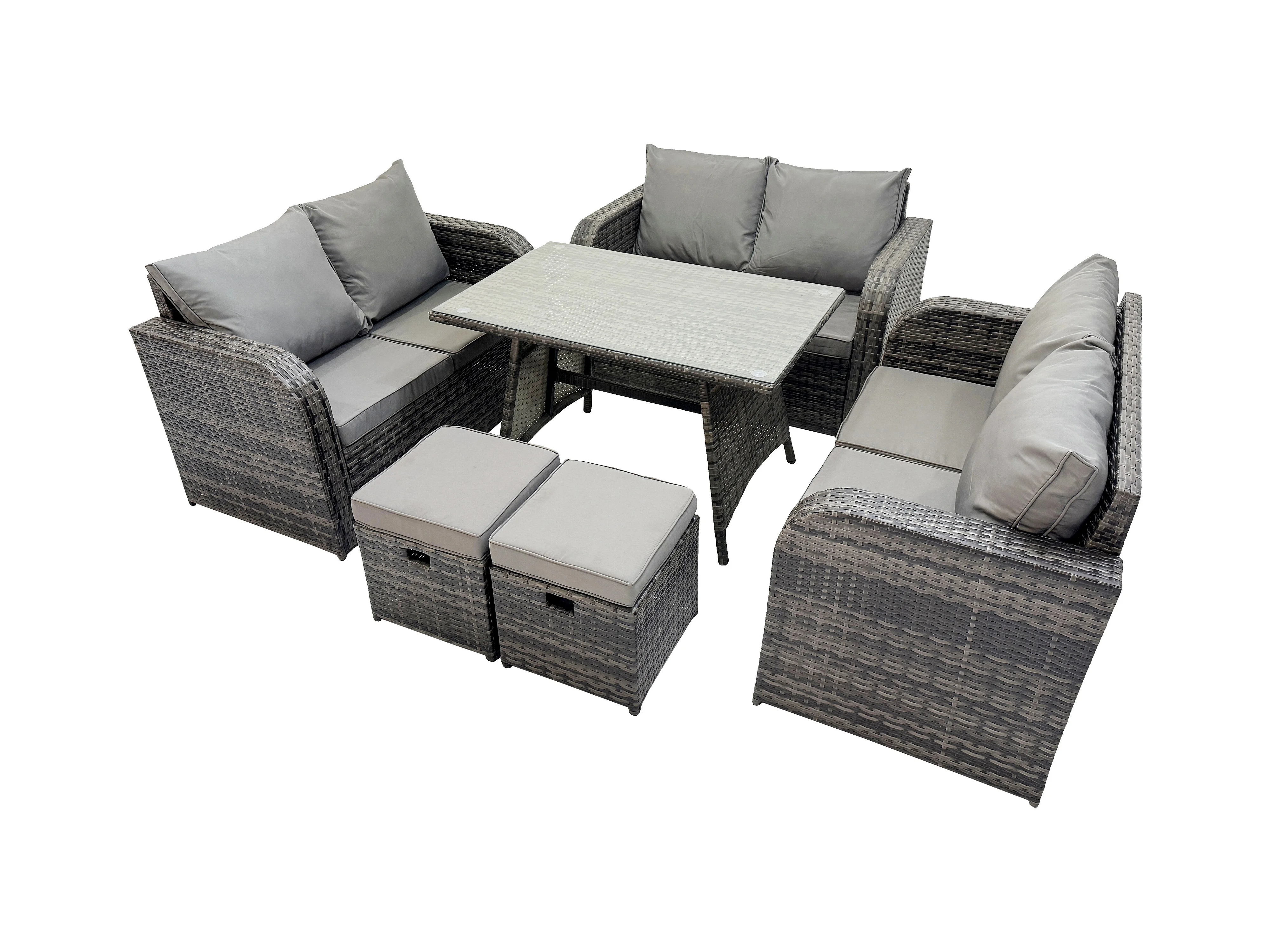 Polyrattan Gartenmöbelset 8-Sitzer Gartensofa Set Set mit Rechteckiger Esstisch 2 kleinen Hockern Dunkelgrau Gemischt