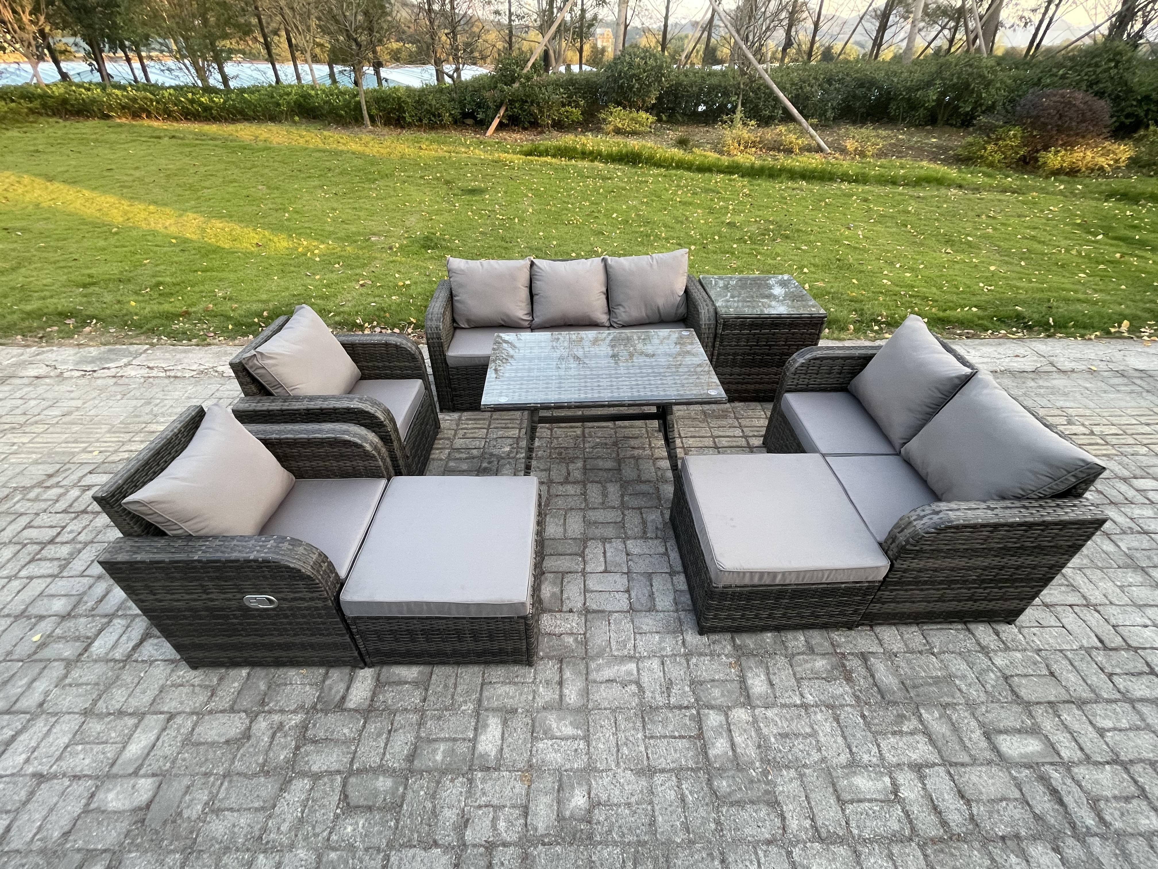 Polyrattan Gartenmöbelset 9-Sitzer Garten Lounge Set mit Esstisch 2 hohen Hockern Beistelltisch Dunkelgrau Gemischt